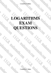 Created by T. Madas LOGARITHMS EXAM QUESTIONS Created by T. Madas Created by T. Madas Question 1 (**) Show clearly that log a 36 + 1 log a 256 − 2log a 48 = − log a 4 . 2 proof Question 2 (**) Simplify log 2 5 + log 2 1.6 , giving the final answer as an integer. 3 Question 3 (**+) Given that x = 2 p and y = 4q , show clearly that log 2 ( x3 y ) = 3 p + 2q . proof Created by T. Madas Created by T. Madas Question 4 (**+) Simplify each of the following expressions, giving the final answer as an integer. a) log 2 3 − log 2 24 . 1 b) log a a 2 − 4log a , a > 0 , a ≠ 1 . a Full workings, justifying every step, must support each answer. −3 , 6 Question 5 (**+) Given that y = log 2 x , write each of the following expressions in terms of y . a) log 2 x 2 ( ) b) log 2 8x 2 2y , 3+ 2y Created by T. Madas Created by T. Madas Question 6 (**+) Given that y = 4 × 102 x express x in terms of y , giving an exact simplified answer in terms of logarithms base 10. ( ) x = 1 log10 1 y 2 4 Question 7 (**+) An exponential curve has equation y = ab x , x ∈ , where a and b are non zero constants. Make x the subject of the above equation, giving the final answer in terms of logarithms base 10 . x= Created by T. Madas log y − log a log b Created by T. Madas Question 8 (**+) Solve the following logarithmic equation 2 log10 x + log10 3 = log10 75 . x = 5, x ≠ −5 Question 9 (**+) Solve the following logarithmic equation log a x + log a ( x − 3) = log a 10 . C2H , x = 5, x ≠ −2 Created by T. Madas Created by T. Madas Question 10 (***) An exponential curve C has equation y= 1 3x , x∈. a) Sketch the graph of C . b) Solve the equation y = 2 , giving the answer correct to 3 significant figures. 3 C2B , 0.369 Created by T. Madas Created by T. Madas Question 11 (***) Given that p = log a 4 and q = log a 5 , express each of the following logarithms in terms of p and q . a) log a 100 b) log a 0.4 The final answers may not contain any logarithms. C2G , p + 2q , 1 p − q 2 Question 12 (***) Solve the following logarithmic equation log 5 (4t + 7) − log 5 t = 2 . C2L , t = 1 3 Created by T. Madas Created by T. Madas Question 13 (***) Given that p = log 2 3 and q = log 2 5 , express each of the following logarithms in terms of p and q . a) log 2 45 b) log 2 0.3 The final answers may not contain any logarithms. MP1-N , 2 p + q , p − q − 1 Created by T. Madas Created by T. Madas Question 14 (***) Solve each of the following equations, giving the final answers correct to three significant figures, where appropriate. a) 7 x = 10 . b) log 2 y = 9 . log 2 y C2J , x ≈ 1.18 , y = 1 , 8 8 Question 15 (***) Solve the following logarithmic equation for x . log a ( x 2 − 10) − log a x = 2log a 3 . x = 10, x ≠ −1 Created by T. Madas Created by T. Madas Question 16 (***) Solve the following logarithmic equation for x . 2 log a x = log a 18 + log a ( x − 4) . C2C , x = 6, 12 Question 17 (***) Solve the following logarithmic equation log 2 (2 z + 1) = 2 + log 2 z . C2O , z = 1 2 Created by T. Madas Created by T. Madas Question 18 (***) Solve the following logarithmic equation for y . 2 log a y − log a (5 y − 24) = log a 4 . x = 8, 12 Question 19 (***) It is given that x satisfies the logarithmic equation log a x = 2(log a k − log a 2) , where k > 0 , a > 0 , a ≠ 1 . a) Find x in terms of k , giving the answer in a form not involving logarithms. Suppose instead that x satisfies log x ( 5 y + 1) = 4 + log x 3 where x > 0 , x ≠ 1 and y > 0 , y ≠ 1 . b) Solve the above equation expressing y in terms of x , giving the answer in a form not involving logarithms. x= Created by T. Madas k2 3x 4 − 1 , y= 4 5 Created by T. Madas Question 20 (***) Solve the following logarithmic equation log 5 (125 x) = 4 . x=5 Question 21 (***) Solve the following logarithmic equation 1 + 2log5 x = log5 (16 x − 3) . x = 3, x = 1 5 Created by T. Madas Created by T. Madas Question 22 (***) Every £1 invested in a saving scheme gains interest at the rate of 5% per annum so that the total value of this £1 investment after t years is £ y . This is modelled by the equation y = 1.05t , t ≥ 0 . Find after how many years the investment will double. t ≈ 14.2 Question 23 (***) Solve each of the following logarithmic equations. a) log x 16 = log x 9 + 2 . b) log y 27 = 3 + log y 8 . x = 4, x ≠ −4 , y = 3 3 3 2 Created by T. Madas Created by T. Madas Question 24 (***) Solve each of the following equations, giving the final answers correct to three significant figures, where appropriate. a) 2 × 3x = 900 . b) log 2 ( 7 y − 1) = 3 + log 2 ( y − 1) . C2P , x ≈ 5.56 , y = 7 Question 25 (***+) Simplify fully 1 + 2 log n 3 + log n 4 , giving the final answer as a single logarithm. log n (36n) Created by T. Madas Created by T. Madas Question 26 (***+) Solve each of the following exponential equations, giving the final answers correct to 3 significant figures. a) 52 x−1 = 4300 . b) 2 y +1 = 10 2y . C2M , x ≈ 130 , y ≈ 1.16 Question 27 (***+) Solve the following logarithmic equation log 2 ( w2 + 4 w + 3) = 4 + log 2 ( w2 + w) , w ≠ −1 . w= 1 5 Created by T. Madas Created by T. Madas Question 28 (***+) Solve the following exponential equation x 1 1 = , 6 2 giving the answer as single logarithm of base 2. x = log 2 6 = 1 + log 2 3 Question 29 (***+) Solve the following simultaneous logarithmic equations ( ) log 2 xy 2 = 0 ( ) log 2 x 2 y = 3 . C2U , x = 4, y = 1 2 Created by T. Madas Created by T. Madas Question 30 (***+) Solve the following logarithmic equation 2 log 3 t = 1 + log 3 7t . t = 21, t ≠ 0 Question 31 (***+) Solve the following logarithmic equation log 3 8 − 3log3 t = 3 . C2E , t = 2 3 Created by T. Madas Created by T. Madas Question 32 (***+) Solve the following logarithmic equation log 5 (4 − w) − 2log5 w = 1 . C2A , w = 4 , w ≠ −1 5 Question 33 (***+) Simplify fully the following logarithmic expression, showing clearly all the workings. ( ) ( ) ( ) log 10 + 3 10 + log 10 + 90 + 90 