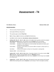 Assessment - 74 Time Allotted: 3 Hours Maximum Marks: 180 General Instructions: The test consists of total 54 questions. Each subject (PCM) has 18 questions. This question paper contains Three Parts. Part-I is Physics, Part-II is Chemistry and Part-III is Mathematics. Each Part is further divided into Two Sections: Section-A & Section-D. 1. Section-A (01– 06, 19 – 24, 37 - 42) contains 18 multiple choice questions which have one or more than one correct answer. Each question carries +4 marks for all correct answer. Partial Marks : +3 If all the four options are correct but ONLY three options are chosen. Partial Marks : +2 If three or more options are correct but ONLY two options are chosen, both of which are correct options. Partial Marks : +1 If two or more options are correct but ONLY one option is chosen and it is a correct option. Zero Marks : 0 If none of the options is chosen (i.e. the question is unanswered). Negative Marks : –2 In all other cases. Section-A (07 – 10, 25 – 28, 43 - 46) contains 12 questions. Based on this section contains TWO (02) paragraphs. Based on each paragraph, there are TWO (02) questions. Each question has only one correct answer and carries +3 marks for correct answer and –1 mark for wrong answer. 2. Section-D (11 – 18, 29 – 36, 47 – 54) contains 24 Numerical answer type questions with answer XXXXX.XX and each question carries +3 marks for correct answer. There is no negative marking. Physics PART – I SECTION – A (One or More than one correct type) This section contains 6 questions. Each question has FOUR options (A), (B), (C) and (D). ONE OR MORE THAN ONE of these four options is(are) correct. 1. If min is minimum wavelength produced in X ray tube and K is the wavelength of K line. As the operating voltage is increased (A) K increases (B) K decreases (C) (K min ) increases (D) (K min ) decreases 2. A non-conducting cylindrical shell of radius R is placed in uniform magnetic field. The axis of the cylinder is parallel to the direction of magnetic field. A hole is drilled in cylinder and a particle having charge q and mass m is projected with velocity v 0 perpendicular to magnetic field and directed towards the axis of cylinder as shown in diagram. The particle collides elastically with inner wall of the cylinder and rebounds. X X X X X X X X X X X X X X X X X X X X X X X X X X X X X X X X X X X X X X X X X X X X X X X X X X X X X X X X X X X X X X X X X X X X X X X X X X X V0 X X X X X X X X X X X X X X X (q, m) (A) The minimum no. of collisions after which it will emerge is two. qBR (B) The maximum speed v 0 for which it can come out is v 0 3. m m (C) The minimum time in which it can come out will be qB qBR (D) If the particle is projected with a velocity v 0 / 3 where v 0 3 it will come out m after five collisions. Space for Rough work 3. 4. A massless spring of spring constant k has two ends P and Q as shown in the figure. End Q is being pulled by person B with constant speed u towards right. End P is being pushed by person A with constant acceleration a towards right starting from rest. Both starts simultaneously. Choose the correct option at the instant when B appears to be at rest with respect to A (A) work done by B ku4 / 3a2 (B) work done by A 5ku4 / 24a2 (C) work done by A 5ku4 / 24a2 (D) elastic potential energy stored in spring ku4 / 8a2 k A B Q P a u Two objects are connected by a light string passing over a light frictionless pulley as shown. The object of mass 6 kg is released 2 from rest. (g = 10 m/s ) (A) Time taken by object of mass 6 kg to strike the surface is 2sec. (B) Maximum height attained by block of mass 4 kg is 4.8 m. (C) Duration after which 6 kg block will leave the surface for the first time is 2.8 sec. (D) None of the above 6 kg m1 4m m2 5. An idealized diesel engine operates in a cycle known as air standard diesel cycle as shown. Fuel is sprayed into the cylinder at the point of maximum compression, B. Combustion occurs during expansion BC. (A) Heat is absorbed during process BC (B) Heat is released during process DA (C) Heat is absorbed during process CD 1 T TA (D) Efficiency of the cycle is 1 D TC TB Space for Rough work 4kg P B C Adiabatic Process D A V 6. A wire of mass M and length L is placed along x-axis with end A at origin. The linear mass density (of the rod) varies as 0 x, where x is distance from end A, 0 is a constant. 2M L2 (B) Moment of Inertia of the rod about an axis passing through A 1 and parallel to y-axis is ML2 2 (C) Moment of inertia of the rod about an axis passing through ML2 COM of the rod and parallel to y-axis is . 18 (D) Moment of inertia of the rod about an axis passing through B 1 and parallel to y-axis is ML2 . 6 (A) The value of 0 is Y A B X (Paragraph Type) This section contains TWO paragraphs. Based on the paragraph, there are TWO questions. Each question has FOUR options (A), (B), (C) and (D). ONLY ONE of these four options is correct. Paragraph for Question Nos. 7 and 8 A ring of radius R is made of a thin wire of material of density p, having cross-section area a and Young’s Modulus y. The ring rotates about an axis perpendicular to its plane and through its centre. Angular frequency of rotation is . 7. The tension in the ring will be apR2 2 (A) 2 (C) 2apR2 2 8. (B) apR 2 2 (D) apR2 2 4 The ratio of kinetic energy to potential energy is y 2y (A) (B) pR2 2 pR2 2 (C) y 2pR2 2 (D) y 4pR2 2 Space for Rough work Paragraph for Question Nos. 9 and 10 The capacitor C1 in the figure shown initially carries a charge q0. When the switches S1 and S2 are closed, capacitor C1 is connected in series to a resistor C1C2 R and a second capacitor C2, which is initially uncharged. Where C . C1 C2 S1 R C1 + q0 C2 S2 9. The charge flown through wire as a function of time t is qC C (A) q0 e t/RC q0 (B) 0 1 e t /RC C2 C1 (C) q0 10. C t /CR e C1 (D) q0 e t /CR The total heat dissipated in the circuit during the discharging process of C1 is q2 q2 (A) 0 2 C (B) 0 2C1 2C (C) q02C2 2C12 (D) q