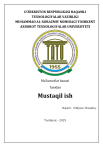 O’ZBEKISTON RESPUBLIKASI RAQAMLI TEXNOLOGIYALAR VAZIRLIGI MUHAMMAD AL-XORAZMIY NOMIDAGI TOSHKENT AXBOROT TEXNOLOGIYALAR UNIVERSITETI Ma’lumotlar bazasi fanidan Mustaqil ish Bajardi : Odiljonov Husanboy Toshkent – 2025 Mavzu: М7 Ma‘lumotlar bazasini normallashtirish va 1NF, 2NF, 3NF va Kodd normal formalari Reja: I. Kirish Ma'lumotlar bazasini normallashtirish tushunchasi II. Asosiy qism 1. Ma'lumotlar bazasini normallashtirishning umumiy tamoyillari 2. Birlamchi normal forma (1NF) 3. Ikkinchi normal forma (2NF), Uchinchi normal forma (3NF)3NF ning ta'rifi, erishish shartlari, misollari III.Xulosa IV.Foydalanilgan adabiyotlar Kirish Ma'lumotlar bazasini normallashtirish tushunchasi Ma'lumotlar bazasini normallashtirish — bu ma'lumotlar bazasining strukturasi yoki dizaynini ma'lum bir qoida va prinsiplar asosida tartibga solish jarayonidir. Bu jarayon ma'lumotlar bazasidagi takrorlanuvchi ma'lumotlarni yo‘qotishga, ma'lumotlar o‘rtasidagi bog‘lanishlarni to‘g‘ri tashkil etishga, ortiqcha ma'lumotlarni minimallashtirishga yordam beradi. Normallashtirishning asosiy maqsadi — ma'lumotlar bazasining samarali ishlashini ta'minlash, ma'lumotlarni saqlash va ishlatishda xatolarni kamaytirish, va axborot tizimining tezligini oshirishdir. Normallashtirishning maqsadi ma'lumotlar bazasidagi takroriylikni va keraksiz bog‘lanishlarni kamaytirishdan iborat. Bu esa tizimning integritetini yaxshilashga va ma'lumotlar o‘zgarganida biror bir inconsistency (mos kelmaslik)ni oldini olishga yordam beradi. Normallashtirishni amalga oshirish orqali, ma'lumotlar bazasida o‘zgartirishlar kiritish, o‘chirib tashlash va yangilash amallarini ancha osonlashtiradi. Bu jarayon orqali ma'lumotlar bazasidagi ma'lumotlar yuqori darajada yagona va to‘liq bo‘lishi ta'minlanadi, bu esa ma'lumotlarni qayta ishlash va analiz qilishda katta afzalliklarga ega bo‘ladi. Normallashtirish jarayoni bir nechta bosqichlarga bo‘linadi va har bir bosqichda ma'lumotlar bazasining strukturasini yanada mukammalroq qilishga qaratilgan normativ talablar joriy etiladi. Har bir normallaşdırish bosqichi yangi talablar qo‘yadi va ma'lumotlar bazasining dizaynini optimallashtirishga yordam beradi. Normallashtirish jarayonida qo‘llaniladigan asosiy normal formalari quyidagilar: Birlamchi normal forma (1NF): Bu forma ma'lumotlar bazasidagi har bir atributni indivudual qiymatga ajratish va takrorlanmas qiymatlarni o‘chirishni talab qiladi. 1NFda har bir yozuvda faqat bitta qiymat bo‘lishi kerak va har bir atribut yagona bo‘lishi lozim. Bu holat ma'lumotlar bazasida normalizatsiya jarayonining boshlanishini bildiradi. Ikkinchi normal forma (2NF): 2NFga erishish uchun ma'lumotlar bazasida birlamchi kalit bo‘lmagan atributlar, birlamchi kalitning barcha qismlariga bog‘lanmagan bo‘lishi kerak. 2NFda atributlar faqat to‘liq bog‘lanishi lozim va barcha bog‘lanishlar birlamchi kalitga nisbatan to‘liq bo‘lishi kerak. Bu talab ma'lumotlar bazasida ortiqcha takrorlanuvchi ma'lumotlarning oldini olishga yordam beradi. Uchinchi normal forma (3NF): 3NFda barcha atributlar birlamchi kalitga to‘g‘ridanto‘g‘ri bog‘lanishi kerak va ma'lumotlar bazasida transitiv bog‘lanishlar bo‘lmasligi kerak. 3NF ma'lumotlar bazasida axborotning yaxlitligini ta'minlaydi va o‘zgartirishlar jarayonida ortiqcha xatoliklarni kamaytiradi. Kod normal formasi (BCNF): Bu norma 3NFdan yanada kuchliroq bo‘lib, har bir bog‘lanish (agar bo‘lsa) faqat birlamchi kalitga nisbatan bo‘lishini ta'minlaydi. BCNFda ma'lumotlar bazasida har bir non-primar atribut faqat birlamchi kalitga bog‘lanishi lozim. Normallashtirishning asosiy foydasi — ma'lumotlar bazasining samaradorligini oshirish va redundans (ortiqcha) ma'lumotlarni kamaytirishdir. Takroriy ma'lumotlarning mavjudligi nafaqat ma'lumotlarni saqlashni qiyinlashtiradi, balki ularning o‘zgarishini, o‘chirilishini va yangilanishini ham qiyinlashtiradi. Ma'lumotlar bazasini normallashtirish orqali ma'lumotlar orasidagi bog‘lanishlar tartibga solinadi va har bir ma'lumotni alohida jadvalga joylashtirish orqali takrorlanishlar yo‘q qilinadi.Shu bilan birga, normallashtirish jarayoni ba'zan de-normalizatsiya jarayonini ham talab qilishi mumkin. Bu holatda, ma'lum bir maqsadga erishish uchun ba'zi normal forma talablari yengillashiriladi, masalan, tizimni tezlashtirish yoki ma'lumotlarni tezda olish. Biroq, de-normalizatsiya jarayoni ma'lumotlar bazasida redundant (takroriy) ma'lumotlarning ko‘payishiga olib kelishi mumkin, bu esa ma'lumotlar integrity (butunligi)ni buzishi mumkin. Shuning uchun de-normalizatsiya qarori ehtiyotkorlik bilan qabul qilinishi kerak. Normallashtirish jarayonining eng muhim afzalliklaridan biri — bu axborotlarning yaxlitligini ta'minlash va ma'lumotlar bazasida o‘zgartirishlar kiritishda yuzaga kelishi mumkin bo‘lgan xatoliklarni minimallashtirishdir. Bu, o‘z navbatida, ma'lumotlar bazasining samarali va ishonchli ishlashini ta'minlaydi. Bundan tashqari, normallashtirish orqali ma'lumotlarni saqlashda joyni tejash mumkin, chunki takroriy ma'lumotlar yo‘q qilinadi va faqat zarur bo‘lgan ma'lumotlar saqlanadi. Ma'lumotlar bazasini normallashtirish nafaqat ma'lumotlarni saqlashni optimallashtiradi, balki tizimning ishlash tezligini oshirish, ma'lumotlar o‘zgartirishlari jarayonida xatoliklarni kamaytirish, va umumiy tizim samaradorligini yaxshilashga yordam beradi. Shu bilan birga, normallashtirish jarayoni davomida tizimni hamma uchun tushunarli va soddaligi yuqori bo‘lishini ta'minlash ham muhim hisoblanadi. Ma'lumotlar bazasini normallashtirishning umumiy tamoyillari Ma'lumotlar bazasini normallashtirish — bu axborot tizimlarida ma'lumotlar o‘rtasidagi o‘zaro bog‘lanishlarni to‘g‘ri tashkil etish va redundant (takrorlanuvchi) ma'lumotlarni kamaytirish jarayonidir. Bu jarayon ma'lumotlarni samarali va ishonchli saqlash, qayta ishlash va tahlil qilish imkonini yaratadi. Normallashtirish jarayoni 