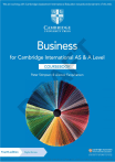 Fourt edition Dig'ita I Access Business for Cambridge International AS & A Level COURSEBOOK Peter Stimpson & Alastair Farquharson University Printing House, Cambridge CB2 8BS, United Kingdom One Liberty Plaza, 20th Floor, New York, NY 10006, USA 477 Williamstown Road, Port Melbourne, VIC 3207, Australia 314–321, 3rd Floor, Plot 3, Splendor Forum, Jasola District Centre, New Delhi – 110025, India 79 Anson Road, #06–04/06, Singapore 079906 Cambridge University Press is part of the University of Cambridge. It furthers the University’s mission by disseminating knowledge in the pursuit of education, learning and research at the highest international levels of excellence. www.cambridge.org Information on this title: www.cambridge.org/9781108921220 © Cambridge University Press 2021 This publication is in copyright. Subject to statutory exception and to the provisions of relevant collective licensing agreements, no reproduction of any part may take place without the written permission of Cambridge University Press. First published 2002 Second edition 2010 Third edition 2014 Fourth edition 2021 20 19 18 17 16 15 14 13 12 11 10 9 8 7 6 5 4 3 2 1 A catalogue record for this publication is available from the British Library ISBN 978-1-108-92122-0 Coursebook with Digital Access (2 years) ISBN 978-1-108-92599-0 Digital Coursebook (2 years) ISBN 978-1-108-92598-3 eBook Additional resources for this publication at www.cambridge.org/9781108921220 Cambridge University Press has no responsibility for the persistence or accuracy of URLs for external or third-party internet websites referred to in this publication, and does not guarantee that any content on such websites is, or will remain, accurate or appropriate. Information regarding prices, travel timetables, and other factual information given in this work is correct at the time of first printing but Cambridge University Press does not guarantee the accuracy of such information thereafter. NOTICE TO TEACHERS IN THE UK It is illegal to reproduce any part of this work in material form (including photocopying and electronic storage) except under the following circumstances: (i) where you are abiding by a licence granted to your school or institution by the Copyright Licensing Agency; (ii) where no such licence exists, or where you wish to exceed the terms of a licence, and you have gained the written permission of Cambridge University Press; (iii) where you are allowed to reproduce without permission under the provisions of Chapter 3 of the Copyright, Designs and Patents Act 1988, which covers, for example, the reproduction of short passages within certain types of educational anthology and reproduction for the purposes of setting examination questions. Cambridge International copyright material in this publication is reproduced under licence and remains the intellectual property of Cambridge Assessment International Education. Exam-style questions [and sample answers] have been written by the authors. In examinations, the way marks are awarded may be different. References to assessment and/or assessment preparation are the publisher’s interpretation of the syllabus requirements and may not fully reflect the approach of Cambridge Assessment International Education. Cambridge International recommends that teachers consider using a range of teaching and learning resources in preparing learners for assessment, based on their own professional judgement of their students’ needs. Contents How to use this series How to use this book Introduction Introduction to command words Getting started with Cambridge International AS & A Level Business 1 Business and its environment 1 Enterprise (AS Level) 2 Business structure (AS Level) 3 Size of business (AS Level) 4 Business objectives (AS Level) 5 Stakeholders in a business (AS Level) 6 External influences on business activity (A Level) 7 External economic influences on business activity (A Level) 8 Business strategy (A Level) 9 Corporate planning and implementation (A Level) End-of-unit exam-style questions 2 Human resource management 10 Human resource management (AS Level) 11 Motivation (AS Level) 12 Management (AS Level) 13 Organisational structure (A Level) 14 Business communication (A Level) 15 Leadership (A Level) 16 Human resource management strategy (A Level) End-of-unit exam-style questions 3 Marketing 17 The nature of marketing (AS Level) 18 Market research (AS Level) 19 The marketing mix – product and price (AS Level) 20 The marketing mix – promotion and place (AS Level) 21 Marketing analysis (A Level) 22 Marketing strategy (A Level) End-of-unit exam-style questions 4 Operations management 23 The nature of operations (AS Level) 24 Inventory management (AS Level) 25 Capacity utilisation and outsourcing (AS Level) 26 Location and scale (A Level) 27 Quality management (A Level) 28 Operations strategy (A Level) End-of-unit exam-style questions 5 Finance and accounting 29 Business finance (AS Level) 30 Forecasting and managing cash flows (AS Level) 31 Costs (AS Level) 32 Budgets (AS Level) 33 Financial statements (A Level) 34 Analysis of published accounts (A Level) 35 Investment appraisal (A Level) 36 Finance and accounting strategy (A Level) End-of-unit exam-style questions 37 Preparing for assessment Appendix: Key formulae Acknowledgements Copyright How to use this series How to use this book Throughout this coursebook, you will notice recurring features that are designed to help your learning. Here is a brief overview of what you will find. LEARNING intentions Learning intentions open each chapter. These help you with navigation through the coursebook and indicate the important concepts in each topic. Business in context Business in context introduces you to the content in a chapter. These place some of the key ideas contained in the chapter into a real-world business context. They raise important issues for discussion, with questions that allow you to look in more detail at the topic. TIPS Tip