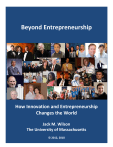 Beyond Entrepreneurship How Innovation and Entrepreneurship Changes the World Jack M. Wilson The University of Massachusetts © 2012, 2018 2 Beyond Entrepreneurship – J. M. Wilson Beyond Entrepreneurship Table of Contents Beyond Entrepreneurship: How Innovation and Entrepreneurship Changes the World © 2012, 2018 Jack M. Wilson -used by permission Table of Contents BEYOND ENTREPRENEURSHIP: HOW INNOVATION AND ENTREPRENEURSHIP CHANGES THE WORLD © 2012, 2018 JACK M. WILSON -USED BY PERMISSION ............................................................................................... I FORWARD ....................................................................................................................................................... V CHAPTER 1 INTRODUCTION TO INNOVATION AND ENTREPRENEURSHIP: WHAT IS ENTREPRENEURSHIP AND WHO ARE THE ENTREPRENEURS? .......................................................................... 1 MEETING A FEW ENTREPRENEURS ..............................................................................................................................2 WHO ARE THESE PEOPLE? .....................................................................................................................................14 CHAPTER 2 WHY DO ENTREPRENEURSHIP AND INNOVATION MATTER? .................................................... 17 TWO KEY CONCEPTS IN INNOVATION AND ENTREPRENEURSHIP: CREATIVE DESTRUCTION AND DISRUPTIVE INNOVATION .........17 WHAT IS ENTREPRENEURSHIP? ................................................................................................................................19 TYPES OF NEW VENTURES ......................................................................................................................................20 GROWTH AND EXIT STRATEGY .................................................................................................................................21 BUSINESS MODEL INNOVATION ................................................................................................................................22 INVENTION IS NOT NECESSARILY INNOVATION. ............................................................................................................22 OPENNESS AND THE “NOT INVENTED HERE” (NIH) SYNDROME. ....................................................................................23 MAKING AN ORGANIZATION SUSTAINABLE. ................................................................................................................23 INTENSITY OF INNOVATION .....................................................................................................................................25 POTENTIAL MODELS OF ENTREPRENEURSHIP TRADITIONAL, EFFECTUAL, LEAN LAUNCHPAD ................................................26 CHARACTERISTICS OF SUCCESSFUL ENTREPRENEURS ....................................................................................................27 CHAPTER 3 ILINC: AN EXAMPLE OF TECHNOLOGICAL ENTREPRENEURSHIP ................................................ 31 ILINC ..................................................................................................................................................................31 THE RESEARCH: ....................................................................................................................................................31 THE OPPORTUNITY:...............................................................................................................................................32 THE TEAM: ..........................................................................................................................................................33 THE EXIT AGREEMENT: ..........................................................................................................................................34 THE PROTOTYPE: ..................................................................................................................................................34 START-UP FUNDING –A BOOTSTRAPPING PROCESS:....................................................................................................35 THE BUSINESS MODEL CANVAS ...............................................................................................................................36 BUILDING THE PRODUCT: .......................................................................................................................................36 FIRST ROUND OF VENTURE CAPITAL: ........................................................................................................................36 THE NEXT TWO ROUNDS OF VENTURE FUNDING: .......................................................................................................37 THE PLOT THICKENS: .............................................................................................................................................40 GOING PUBLIC: ....................................................................................................................................................40 THE TRIPLE MERGER - LEARNLINC BECOMES MENTERGY: .............................................................................................41 QUESTIONS: ........................................................................................................................................................42 CHAPTER 4 RECOGNIZING OPPORTUNITIES TO CHANGE THE WORLD ........................................................ 45 RECOGNIZING GOOD IDEAS AND MAKING THEM HAPPEN. .............................................................................................47 A NEW RABIES VACCINE FROM UMASS.....................................................................................................................49 FROM TRENDS AND FORCES TO OPPORTUNITY ..............................................