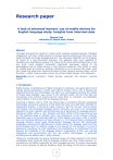 The EUROCALL Review, Volume 25, No. 2, September 2017 Research paper A look at advanced learners’ use of mobile devices for English language study: Insights from interview data Mariusz Kruk University of Zielona Gora, Poland ______________________________________________________________ mkruk @ uz.zgora.pl Abstract The paper discusses the results of a study which explored advanced learners of English engagement with their mobile devices to develop learning experiences that meet their needs and goals as foreign language learners. The data were collected from 20 students by means of a semi-structured interview. The gathered data were subjected to qualitative and quantitative analysis. The results of the study demonstrated that, on the one hand, some subjects manifested heightened awareness relating to the advantageous role of mobile devices in their learning endeavors, their ability to reach for suitable tools and retrieve necessary information so as to achieve their goals, meet their needs and adjust their learning of English to their personal learning styles, and on the other, a rather intuitive and/or ad hoc use of their mobile devices in the classroom. Keywords: Learner autonomy, mobile devices, advanced EFL learners, learning English. 1. Introduction Mobile devices, smartphones and tablet computers in particular, have generated a lot of interest among researchers in recent years (Byrne & Diem, 2014). This is because the opportunities these new technologies may offer (e.g. individualized learning, the variety of mobile apps available, easy access to the internet) and/or the fact that they are increasingly more common among learners make them an important and potentially useful addition to formal and informal language learning. According to Benson (2011), there has always been a connection between educational technologies and learner autonomy to the extent that they have often been intended for independent practice. It should be noted, however, that this link and “future enquiry and practice into technology-mediated learner autonomy will need to be increasingly aligned to the tools, settings, and activities that are of significance to language learners” (Reinders & White, 2016, p. 151). Reinders and White (2016) further argue that as long as “the potential range of settings, tools, and experiences is now virtually limitless, individuals need to be increasingly adept at critical adaptive learning in order to benefit from and contribute effectively to those settings” (p. 151). Beyond doubt, contemporary language teachers should equip foreign/second language learners with appropriate knowledge concerning the affordances of mobile devices for language study and they should prepare them for effective usage of such devices for this purpose. It is also of paramount importance, for both researchers and practitioners, to comprehend the link between the modalities of the language learners' organization of their own learning experiences and environments and the role mobile technologies, in particular smartphones and tablets, play in these contexts. Taking into consideration the above-mentioned issues, the study reported in this article investigated ways advanced English language students use their mobile devices (i.e. smartphones and tablet computers) for their language learning. The article commences with a short overview of relevant literature. Next, the design of the study is described, 18 The EUROCALL Review, Volume 25, No. 2, September 2017 namely a research question, description of participants, data collection tools and analysis. This is followed by the presentation of the results of the study. The article closes with discussion and conclusions. 2. Literature review 2.1. Autonomy in foreign/second language learning The concept of autonomy in second/foreign language learning and teaching has been the focus of attention for many researchers and practitioners for more than three decades. According to Benson (2001), the notion of autonomy was introduced and popularized in 1981 by Henri Holec in his seminal report for the Council of Europe entitled Autonomy in Foreign Language Learning in which the researcher defined autonomy in the context of language learning as “the ability to take charge of one’s own learning” (Holec, 1981, p. 3). Holec’s idea of autonomy encompasses some components and capacities on the part of language learners (e.g. self-directed learning). For some other authors autonomy also involves “a capacity – for detachment, critical reflection, decision-making, and independent action” (Little, 1991, p. 4) and “the capacity to take control of one’s own learning” (Benson, 2001, p. 46). As stated by Benson (2011, p. 16), “autonomy is multidimensional and takes many different forms according to the person, the setting, and multiple contextual and micro-contextual factors” and it is “a multi-faceted concept that consists of several layers” (Reinders, 2011, p. 48) whose roots are based in political, societal and educational developments. In addition to this, work on autonomy emphasizes social dimensions of learner autonomy in view of the fact that “autonomous learners always do things for themselves, but they may or may not do things on their own” (Little, 2009, p. 223) and that by means of social interactions language learners “develop a capacity to analyze, reflect upon and synthesize information to create new perspectives” (Lee, 2011, p. 88). It should also be noted that recent research shows that fostering autonomy is no longer predominantly a matter of individualizing learning through out-of-class initiatives since the dominance of classroom-based approaches (Benson, 2011). Finally, it has to be added that researchers, in general, seem to be in agreement with the following claims suggested by Benson (2011): “(a) language learners naturally tend to take control of their learning, (b) learners who lack autonomy are capable of developing