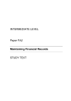INTERMEDIATE LEVEL Paper FA2 Maintaining Financial Records STUDY TEXT FA2 : MANTAINING FINANCIAL RECORDS British Library Cataloguing-in-Publication Data A catalogue record for this book is available from the British Library. Published by: Kaplan Publishing UK Unit 2 The Business Centre Molly Millars Lane Wokingham RG41 2QZ ISBN: 978-1-78740-046-7 © Kaplan Financial Limited, 2017 Printed and bound in Great Britain The text in this material and any others made available by any Kaplan Group company does not amount to advice on a particular matter and should not be taken as such. No reliance should be placed on the content as the basis for any investment or other decision or in connection with any advice given to third parties. Please consult your appropriate professional adviser as necessary. Kaplan Publishing Limited and all other Kaplan group companies expressly disclaim all liability to any person in respect of any losses or other claims, whether direct, indirect, incidental, consequential or otherwise arising in relation to the use of such materials. All rights reserved. No part of this publication may be reproduced, stored in a retrieval system, or transmitted, in any form or by any means, electronic, mechanical, photocopying, recording or otherwise, without the prior written permission of Kaplan Publishing. Acknowledgments This product contains material that is ©Financial Reporting Council Ltd (FRC). Adapted and reproduced with the kind permission of the Financial Reporting Council. All rights reserved. For further information, please visit www.frc.org.uk or call +44 (0)20 7492 2300. We are grateful to the Association of Chartered Certified Accountants for permission to reproduce past examination questions. The answers have been prepared by Kaplan Publishing. P.2 KAPLAN PUBLISHING CONTENTS Page Introduction P5 Syllabus and study guide P7 The examination P13 Study skills and revision guidance P15 Chapter 1 Recording transactions 1 2 The structure of accounting records 25 3 The trial balance and correction of errors 49 4 Introduction to final accounts 69 5 Basic framework of accounting 81 6 Current and non-current assets 95 7 Non-current assets 109 8 Payables’ and receivables’ ledger reconciliations 133 9 Bank reconciliation 149 10 Accruals and prepayments 165 11 Irrecoverable debts and the receivables allowance 181 12 Closing inventory 191 13 Provisions and liabilities 203 14 The extended trial balance 213 15 Sole trader accounts 229 16 Partnership accounts 255 17 Incomplete records 275 Answers to activities and end-of-chapter questions 299 Index 389 Quality and accuracy are of the utmost importance to us so if you spot an error in any of our products, please send an email to mykaplanreporting@kaplan.com with full details. Our Quality Co-ordinator will work with our technical team to verify the error and take action to ensure it is corrected in future editions KAPLAN PUBLISHING P.3 FA2 : MANTAINING FINANCIAL RECORDS P.4 KAPLAN PUBLISHING INTRODUCTION This is the new edition of the FIA study text for Paper FA 2 – Maintaining Financial Records reviewed and approved by the ACCA. Tailored to fully cover the syllabus, this textbook has been written specifically for FIA students. Clear and comprehensive style, numerous examples and highlighted key terms help you to acquire the information easily. Plenty of activities and self-test questions enable you to practise what you have learnt. At the end of most of the chapters you will find exam style and practice questions. These will give you a very good idea of the way you will be tested. KAPLAN PUBLISHING P.5 FA2 : MAINTAINING FINANCIAL RECORD P.6 KAPLAN PUBLISHING SYLLABUS AND STUDY GUIDE Position of the paper in the overall syllabus Within the Foundations in Accountancy syllabus there is an initial qualification of the Introductory Certificate in Financial and Management Accounting. Completion of paper FA 2 Maintaining Financial Records along with MA 2 Managing Costs and Finances and Foundations in Professionalism will achieve the Intermediate Certificate in Financial and Management Accounting. FA 2 Maintaining Financial Records introduces the fundamental principles of accounting and develops the knowledge and understanding required to maintain accounting records. You will learn to produce accounting records, extract a trial balance and make necessary adjustments to produce an extended trial balance and basic financial statements. The syllabus covers accounting for the business transactions of sole traders and partnerships. Detailed syllabus A B C D Generally accepted accounting principles and concepts Chapters 4, 5 1 The key accounting principles and characteristics 2 Maintaining Financial Records 3 The regulatory framework The principles and process of basic bookkeeping Chapters 1, 2, 3, 4 E 1 2 G The elements of financial statements The books of prime entry and flow of accounting information in the production of financial statements The preparation of journals and ledger accounts Chapters 1, 2 1 Preparation of journals from the books of prime entry 2 Preparation of ledger accounts Recording transactions and events Chapters 1, 2, 6, 7, 10, 11, 12, 13 1 Sales and purchases 2 Cash and bank 3 Inventory 4 Tangible non-current assets and depreciation 5 6 7 F H Preparing a trial balance and errors Chapter 3 1 Trial balance 2 Correction of errors Reconciliation Chapters 8, 9 1 Control account reconciliations 2 Bank reconciliation The trial balance and the extended trial balance Chapters 14, 15, 17 1 Preparation of the trial balance/ extended trial balance 2 Preparation of the final accounts including incomplete records. Partnerships Chapter 16 1 Partnership agreement 2 Partnership accounting records 3 Partnership financial statements and change in partnership Accruals and prepayments Receivables, payables and provisions Capital and finance costs KAPLAN PUBLISHING P.7 Study Guide A GENERALLY ACCEPTED ACCOUNTING PRINCIPLES AND CONCEPTS Chapte