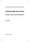FIXED INCOME SECURITIES Valuation, Risk and Risk Management Pietro Veronesi University of Chicago JOHN WILEY & SONS, INC. c Copyright 2011 by John Wiley & Sons, Inc. All rights reserved. Published by John Wiley & Sons, Inc., Hoboken, New Jersey. Published simultaneously in Canada. No part of this publication may be reproduced, stored in a retrieval system, or transmitted in any form or by any means, electronic, mechanical, photocopying, recording, scanning, or otherwise, except as permitted under Section 107 or 108 of the 1976 United States Copyright Act, without either the prior written permission of the Publisher, or authorization through payment of the appropriate per-copy fee to the Copyright Clearance Center, Inc., 222 Rosewood Drive, Danvers, MA 01923, (978) 750-8400, fax (978) 646-8600, or on the web at www.copyright.com. Requests to the Publisher for permission should be addressed to the Permissions Department, John Wiley & Sons, Inc., 111 River Street, Hoboken, NJ 07030, (201) 748-6011, fax (201) 748-6008. Limit of Liability/Disclaimer of Warranty: While the publisher and author have used their best efforts in preparing this book, they make no representations or warranties with respect to the accuracy or completeness of the contents of this book and specifically disclaim any implied warranties of merchantability or fitness for a particular purpose. No warranty may be created ore extended by sales representatives or written sales materials. The advice and strategies contained herin may not be suitable for your situation. You should consult with a professional where appropriate. Neither the publisher nor author shall be liable for any loss of profit or any other commercial damages, including but not limited to special, incidental, consequential, or other damages. For general information on our other products and services please contact our Customer Care Department with the U.S. at 877-762-2974, outside the U.S. at 317-572-3993 or fax 317-572-4002. Wiley also publishes its books in a variety of electronic formats. Some content that appears in print, however, may not be available in electronic format. Library of Congress Cataloging-in-Publication Data: Fixed Income Securities / Pietro Veronesi Printed in the United States of America. 10 9 8 7 6 5 4 3 2 1 To Tommaso Gabriele and Sofia CONTENTS Preface Acknowledgments xix xxxiii PART I BASICS 1 AN INTRODUCTION TO FIXED INCOME MARKETS 3 1.1 3 6 7 9 11 11 14 14 14 14 14 15 16 18 1.2 1.3 1.4 Introduction 1.1.1 The Complexity of Fixed Income Markets 1.1.2 No Arbitrage and the Law of One Price The Government Debt Markets 1.2.1 Zero Coupon Bonds 1.2.2 Floating Rate Coupon Bonds 1.2.3 The Municipal Debt Market The Money Market 1.3.1 Federal Funds Rate 1.3.2 Eurodollar Rate 1.3.3 LIBOR The Repo Market 1.4.1 General Collateral Rate and Special Repos 1.4.2 What if the T-bond Is Not Delivered? v vi CONTENTS 1.5 1.6 1.7 1.8 2 The Mortgage Backed Securities Market and Asset-Backed Securities Market The Derivatives Market 1.6.1 Swaps 1.6.2 Futures and Forwards 1.6.3 Options Roadmap of Future Chapters Summary 21 23 23 25 25 26 28 BASICS OF FIXED INCOME SECURITIES 29 2.1 29 30 31 32 2.2 2.3 2.4 2.5 2.6 2.7 2.8 2.9 Discount Factors 2.1.1 Discount Factors across Maturities 2.1.2 Discount Factors over Time Interest Rates 2.2.1 Discount Factors, Interest Rates, and Compounding Frequencies 2.2.2 The Relation between Discounts Factors and Interest Rates The Term Structure of Interest Rates 2.3.1 The Term Structure of Interest Rates over Time Coupon Bonds 2.4.1 From Zero Coupon Bonds to Coupon Bonds 2.4.2 From Coupon Bonds to Zero Coupon Bonds 2.4.3 Expected Return and the Yield to Maturity 2.4.4 Quoting Conventions Floating Rate Bonds 2.5.1 The Pricing of Floating Rate Bonds 2.5.2 Complications Summary Exercises Case Study: Orange County Inverse Floaters 2.8.1 Decomposing Inverse Floaters into a Portfolio of Basic Securities 2.8.2 Calculating the Term Structure of Interest Rates from Coupon Bonds 2.8.3 Calculating the Price of the Inverse Floater 2.8.4 Leveraged Inverse Floaters Appendix: Extracting the Discount Factors Z(0, T ) from Coupon Bonds 2.9.1 Bootstrap Again 2.9.2 Regressions 2.9.3 Curve Fitting 2.9.4 Curve Fitting with Splines 34 38 38 40 42 43 45 47 50 52 52 54 57 57 59 61 62 62 64 65 66 67 67 70 CONTENTS 3 BASICS OF INTEREST RATE RISK MANAGEMENT 3.1 3.2 3.3 3.4 3.5 3.6 3.7 3.8 3.9 4 vii 73 The Variation in Interest Rates 73 3.1.1 The Savings and Loan Debacle 75 3.1.2 The Bankruptcy of Orange County 75 Duration 75 3.2.1 Duration of a Zero Coupon Bond 77 3.2.2 Duration of a Portfolio 78 3.2.3 Duration of a Coupon Bond 79 3.2.4 Duration and Average Time of Cash Flow Payments 80 3.2.5 Properties of Duration 82 3.2.6 Traditional Definitions of Duration 83 3.2.7 The Duration of Zero Investment Portfolios: Dollar Duration 84 3.2.8 Duration and Value-at-Risk 86 3.2.9 Duration and Expected Shortfall 89 Interest Rate Risk Management 90 3.3.1 Cash Flow Matching and Immunization 91 3.3.2 Immunization versus Simpler Investment Strategies 93 3.3.3 Why Does the Immunization Strategy Work? 96 Asset-Liability Management 97 Summary 98 Exercises 99 Case Study: The 1994 Bankruptcy of Orange County 103 3.7.1 Benchmark: What if Orange County was Invested in Zero Coupon Bonds Only? 104 3.7.2 The Risk in Leverage 105 3.7.3 The Risk in Inverse Floaters 105 3.7.4 The Risk in Leveraged Inverse Floaters 106 3.7.5 What Can We Infer about the Orange County Portfolio? 107 3.7.6 Conclusion 108 Case Analysis: The Ex-Ante Risk in Orange County’s Portfolio 108 3.8.1 The Importance of the Sampling Period 109 3.8.2 Conclusion 110 Appendix: Expected Shortfall under the Normal Distribution 111 BASIC REFINEMENTS IN INTEREST RATE RISK MANAGEMENT 113 4.1 113 116 118 118 120 121 Convexity 4.1.1 The Convexity of Zero Coupon Bonds 4.1.2 The Convexity of a Portfolio of Securities 4.1.3 The Convexity of a Coupon Bond 4.1.4 Positive Convexity: Good News for Average Returns 4.1.5 A Common 