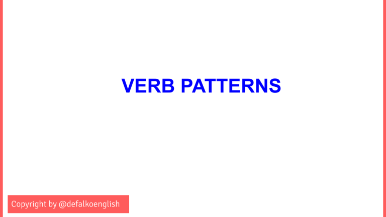 VERB PATTERNS Copyright by @defalkoenglish ESL Brains Copyright by @defalkoenglish ESL Brains Copyright by @defalkoenglish ESL Brains ESL Brains Copyright by @defalkoenglish ESL Brains Copyright by @defalkoenglish Copyright by @defalkoenglish ESL Brains