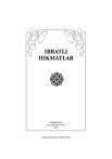 IBRATLI HIKMATLAR TOSHKENT «OZBEKISTON» 2007 www.ziyouz.com kutubxonasi 84 (5U) I 14 T u z u v c h i : Anvar Sobirjon M u h a r r i r : Karim Boronov Ibratli hikmatlar /Òuzuvchi A.Sobirjon. -Ò.: «Ozbekiston» nashriyot-matbaa ijodiy uyi, 2007. 64 b. Kitobda ibratli rivoyatlar, hikoyatlar, hikmatlar va latifalar jamlangan. Ulardagi purmano fikrlar bugungi kunimiz uchun ham oz qadrini yoqotmagan. Ushbu ibratli hikmatlar har birimizni doimo mehr-oqibatli, odob-axloqli bolishga undaydi. Ushbu majmua keng kitobxonlar ommasiga moljallangan. BBK 84(5U)I ISBN 978-9943-01-114-4 © «OZBEKISTON» NMIU, 2007-y. 2 www.ziyouz.com kutubxonasi YUSUF XOS HOJIB HIKMATLARIDAN (Nasriy bayoni) Olamga odamzod sara mavjudot sifatida keldi, u salohiyat, bilim va zakovatga ega boldi. Unga tabiat aql va ong ato qildi, sozlash qobiliyatini berdi, uni andisha, xushxulq va gozal fel bilan taminladi. Unga bilim hadya qildi, shu tufayli inson uluglikka erishdi, zakovatlar ato qildi, shu tufayli inson chigal jumboqlarni hal qildi. Tabiat kimga zakovat, aql-idrok, bilim bersa, u ezgu ishlar qilishga qol uradi. Bilimning buyukligini va zakovatning ulugligini anglagin, bu ikkalasiga ega bolgan sara kishilar uluglikka erishadilar. * * * Sen ozingning eson-omonligingni istasang, tilingdan zinhor yaramas sozlarni chiqarmagin. Yusuf Xos Hojib XI asrda yashab ijod etgan buyuk adib va shoir, mashhur «Qutadgu bilig» asarining muallifi. 3 www.ziyouz.com kutubxonasi Bilib-tushunib sozlangan soz donolikdan dalolatdir, nodon-johilning sozi oz boshini yeydi. Kop sozlashdan ortiqcha naf kormaganman, sozning kopidan foyda ham topmaganman. Sozni kop sozlamasdan biroz oz sozlagin, ming sozli chigalni bir soz bilan yechgin. Haddidan ortiq sozlaganlarni ezma deyiladi, shuningdek hech sozlamaganlarni gung deb ataladi. Modomiki shunday ekan, ortacha yoriqqa amal qil, ortacha yoriqqa amal qilgan odam yuksaklikka erishadi. * * * Odam muloyim, xushfel, ochiq chehrali, zakovatli, bilimli bolishi kerak. Bilimni saralab, saylab olish uchun zakovatli bolish kerak, ishlarni kongildagidek bitirish uchun esa bilimli bolish kerak. Odam yaroqli va yaroqsiz narsalarning farqini kora bilsa, kerakli va keraksiz narsalarni orin va joyiga qoya bilsa, Yaxshi va yomonni farqlay bilsa va ajrata olsa, qanday ishda bolmasin ozini tuta olsa, Shundagina barcha ishlari tugal va pishiq-puxta boladi¾ * * * Bilimsizning tili doim berk bolishi kerak, bilimlining tili sozga erkli bolishi kerak. 4 www.ziyouz.com kutubxonasi Bilimlining sozi yerga suv kabi zarurdir, suv oqib tursa, yerda turli nematlar unadi. Bilimli kishining ovozasi kamaymaydi, oqar va qaynar buloqning zilol suvi kamaymaydi. Donolar suvga serob yerga oxshaydilar, qayeriga oyoq bosilsa, suv chiqadi. Nodonlarning kongillari qum choli kabi boladi. Yemish, giyoh osishi u yoqda tursin, unga daryo oqib kirsa ham tolmaydi. * * * Andishasiz odamdan zinhor yiroq tur va qoch, uyat-andishaliklarga mendan ming-ming olqishlar bolsin. Jamiki ishda shoshilma, sabrli bol, ozingni bosib ol, sabrli odamlar orzu-istaklariga yetadilar. Ozgalarga ziyon soginma, ozing ham ziyon korma, faqat yaxshilik qil, orzu-havasni bosgin. * * * Tilingdan yolgon soz chiqarma, bu yolgon qadringni tushiradi. Qarindoshlarga, yaqinlarga yaqinlik bogla, katta va kichikka ochiq chehra bilan kulib boq. Non-tuzingni keng tut, odamlarga yedir. Davlating ziyoda bolsa, unga magrurlanmagin, qolingdan kelganicha yaxshilik qil, yomonlik qilmagin. Ichimlik ichma, janjalga aralashma, undan uzoq yur, zino qilma va fosiq, tuban degan nom olma. 5 www.ziyouz.com kutubxonasi * * * Odamlarga achchiq va dagal sozlamagin, dagallik misli olov, kuydiruvchi yolindir. Sokin, ogir, vazmin va muloyim bol, faqat yaxshilik qilgin. Gofil odam farzandi behisob mol-dunyo yigadi, lekin nima uchun terayotir, bu unga nasib etadimi, bu haqda sira oylamaydi. * * * Tabiatan aql-hushdan mahrum bolmay bunyodga kelgan bolada bilish qobiliyatining asosi yoshligidan mavjud boladi. Osib voyaga yetgani barobarida asta-sekin organib boradi, nimaga orgatilsa, oshani organib boradi va bilib oladi. Bilimni bir-bir ozlashtirib boradi va oqibatda dono boladi, song uning bilimlari elga manfaatlar keltiradi. Bolani bilimli qilmoqchi bolinsa, unga yoshligidanoq bilim orgatib borish kerak. Bola kichikligidan bilim organib boradi. Aqlidrok esa tugma boladi. Bilimni, sanat-hunarni, fazilatlarni, ezgu felxulqni, yol-yoriqlarni odam hayoti jarayonida organadi va shakllantiradi. Bilim, hunar, yol-yoriqlarni asta-sekin organadi, ulgaygach, shakllanib bilimli boladi. 6 www.ziyouz.com kutubxonasi * * * Shoshqaloqlik, kaltafahmlik, feli tezlik odatlari nodonlikning belgilaridir. Shoshilib qilingan ish kongilsizlikka olib keladi, shoshib yeb-ichganlar dardga mubtalo boladilar. Barcha ishda ham ogirlik va vazminlikka amal qil, faqat toat-ibodatgagina shoshilgin. * * * Andisha har turli nojoya ishlardan saqlaydi, turli yaxshi ishlarga yollaydi. Andisha juda yaxshi xislat, u kishi uchun chiroydir, barcha ezgu ishlar uchun boshbogdir. Tili chin, kongli togri bolish kerak, xalqqa manfaat keltirish hamda ozni baxtiyor qilish uchun bu xislatlar zarurdir. * * * Qaysi ishni qilmoqchi bolsang, eng avval oz kongling bilan kengashib korgin. Barcha gaplaringni aytib odamlardan maslahat ol, lekin kongil chopmasa, u ishdan ozingni chetga olgin. Boshqalardan kora ozingga ozing mehribonroqdirsan, kongling xohlamagan ishni qoygin. * * * Xizmat qilish uchun hammadan avval qonunqoida va tartib-nizomni bilish zarur, xizmat qilish 7 www.ziyouz.com kutubxonasi yol-yoriqlari, aytmish-demishlari togri bolishi kerak. Kirish-chiqish, oltirish-turish, odob qoidalarini bilish kerak boladi, xizmat qoidalarini bilmasa, odam behudaga mehnat chekadi. * * * Giybatchi kishiga aralashma, uzoqlash, giybatchi tilida ot yonadi, korgin. Dunyoning fisqu-fasodlari giybatdan chiqadi. Yana tamagir bilan yaqin bolma, shubhasiz u senga dushman boladi. Agar biror tamasi bolsa, bu tamagir seni ini yoki aka deb ataydi. Agar tamasi bolmasa, u yuz