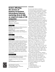Introduction Factors affecting In recent years business-to-business the success of international Internet marketing (B-to-B IIM) has received widespread attention. Avlonitis business-to-business and Karayanni (2000), Duffy and Dale (2002), international Internet Hamill and Gregory (1997), Hoffman et al. marketing (B-to-B IIM): (1999), Porter (2001) and Quelch and Klien (1996) conducted in-depth studies to an empirical study of UK understand those factors that are needed to enhance B-to-B IIM implementation. They companies conclude that organisations need to understand how to identify the critical factors that affect the implementation process and address them effectively to ensure that the promised benefits can be realised and failures can be avoided. However, research in business-to-business Internet marketing is still in its infancy. Most research on Internet marketing has been either descriptive or theoretical/speculative. There is a lack of solid research models to guide future research in this area. There have been a number of attempts to identify the CSFs for B-to-B international Internet marketing (Archer and Yuan, 2000; Avlonitis and Karayanni, 2000; Berthon et al., 1996a; Chan and Swatman, 2000; Duffy and Dale, 2002; Furnell and Karweni, 1999; Honeycutt et al., 1998; Lord, 2001; Lynn et al., 2002; Soh et al., 1997); however, few of them can provide strong theoretical or statistical support for the existence of these CSFs. This may be because of the exploratory nature of these studies. As such they deal more with the potential than the reality of the Internet's impact. Hence, fullscale research conducted in a highly scientific manner must be undertaken. To fill this gap various articles, empirical research, and secondary case studies on B-to-B, Internet, International marketing, and information technology were studied. The findings of these studies identified 21 factors that have a direct impact on successful implementation of the B-to-B IIM. These factors were classified into five categories: (1) marketing strategy; (2) Web site; (3) global dimension; (4) internal related factors; and (5) external related factors. Riyad Eid and Myfanwy Trueman The authors Riyad Eid is a Senior Lecturer in the Marketing Department, Wolverhampton University Business School, Wolverhampton, UK. Myfanwy Trueman is a Lecturer in Marketing and Innovation at Bradford University, School of Management, Bradford, UK. Keywords Critical success factors, Internet marketing, Business-to-business marketing, United Kingdom Abstract Business-to-business international Internet marketing is one of the key drivers in sustaining an organisation's competitive advantage. The challenge for organisations today is to understand the factors that play a critical role in utilising Internet capabilities and their implications on business strategic objectives to enable them to compete successfully in the electronic age. Proposes 33 critical factors classified into five categories and validated empirically through a sample of 123 UK companies. Discusses the significance, importance and implications for each category and makes recommendations. Electronic access The Emerald Research Register for this journal is available at www.emeraldinsight.com/researchregister The current issue and full text archive of this journal is available at www.emeraldinsight.com/0263-5577.htm Industrial Management & Data Systems Volume 104 . Number 1 . 2004 . pp. 16-30 # Emerald Group Publishing Limited . ISSN 0263-5577 DOI 10.1108/02635570410514061 16 Factors affecting the success of B-to-B international Internet marketing Industrial Management & Data Systems Volume 104 . Number 1 . 2004 . 16-30 Riyad Eid and Myfanwy Trueman Poon and Jevons (1997), Hoffman et al. (1999) and Zairi (2001a, b) all agreed that trust and confidence between vendor and potential customer is another critical factor. E-commerce is not a technology play! It is a relationship; partnership, organisational and communications play made possible by new technology. Definitions, techniques and discussion on these factors are described in the following sections. Further discussion on each category is also underpinned. Proposed factors A number of studies were carried out to identify those factors most critical to B-to-B IIM success. Avlonitis and Karayanni (2000) noted that sales force has a central role to play in the Internet marketing strategies implementation if the appropriate training is provided. However top management team's support is one of the keys to integrate the Internet effectively with the strategic marketing plan. Bremer (1996) agreed that correct planning for training sessions, management support and staff awareness programmes are important to B-to-B IIM implementation. Chan and Swatman (2000) pointed out other factors such as supplier and customer involvement, culture and the use of both the traditional and online marketing. Cronin (1996a) added the security factor to the marketing strategy and culture. Damanpour (2001) showed the importance of meeting client demand as necessary to fulfil obligations in Internet-based marketing. Being flexible when collaborating with the trading community, identifying potential valuable partners, thinking globally and doing business in the Internet time (speed) are critical factors for the successful implementation of B-to-B IIM. Duggan and Deveney (2000) indicated that the integration between off and on-line marketing efforts, as well as, customer acceptance and the language used were also critical success factors. Furnell and Karweni (1999) agreed that the development of successful inter-organisational relationships is another critical factor, which is based primarily on the quality and quantity of information exchanged over the Internet. Gogan (1997) cited that selecting the appropriate technologies infrastructure is a key factor for Internet marketing. Hamill and Gregory (1997) suggested that well designed Web sites provide an or