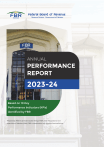 ANNUAL PERFORMANCE REPORT Based on 10 Key Performance Indicators (KPIs) identified by FBR Prepared by Reforms & Modernization Wing of FBR under the guidance and supervision of Member (R&M), FBR in coordination with relevant Sections/Wings FY 2023-24 FBR Annual Performance Report 2023-24 1 Contributors This Annual Performance Report has been prepared by Reforms & Modernization Wing of FBR under the guidance and supervision of Member (Reforms & Modernization), FBR in coordination with relevant Sections/Wings. The core team comprised as under: Team Leader Mr. Ardsher Saleem Tariq, Member (Reforms & Modernization), FBR Phone: 051-9207356, Email: memberr&m@fbr.gov.pk Team Members Mr. Muhammad Khalid Jamil, Director, Pakistan Raises Revenue Program, FBR Phone: 051-9219649, Email: muhammad.khalid@fbr.gov.pk Ms. Sadia Akmal, Additional Director (PRRP), Email: sadia.akmal@fbr.gov.pk Mr. Nasir Ali Kazmi, Monitoring & Evaluation Specialist, PRRP Email: m&e.specialist@fbr.gov.pk Support Staff FY 2023-24 FBR Annual Performance Report Ms. Zainab Mahmood, Second Secretary Customs (Reforms & Modernization), FBR Phone: 051-9204463, Email: aczainab@gmail.com 2 1. Mr. Muhammad Shehzad, PS (Reforms & Modernization, Wing) 2. Ms. Noureen Shahzadi, Data Entry Operator (Reforms & Modernization, Wing) 3. Mr. Shoaib Mushtaq, LDC (Reforms & Modernization, Wing) 4. Mr. Arslan Safeer , LDC (Reforms & Modernization, Wing) 5. Mr. Tufail Jaffri, Content Designer (Public Relations, Wing) Foreword by Chairman FBR The annual performance report of FY 2023-24 is intended to serve as a public account of FBR’s performance against established key performance indicators, aiming to enhance awareness of FBR’s achievements over the f inancial year. It enables FBR to assess its set targets and evaluate its effectiveness in the short, medium, and long term. Through detailed data analysis, this report offers valuable insights into the various components of federal taxation and the reform initiatives aimed at transforming FBR into a modern, eff icient, and vigilant tax administration. Rashid Mahmood Chairman FBR Secretary Revenue Division The f iscal year 2023-24 presented signif icant challenges for FBR as we remained dedicated to our reform agenda, striving for improvements in tax administration. FBR plays a pivotal role in implementing policy measures aimed at broadening the tax base, end-to-end digitalization of tax collection, improving eff iciency of taxation system leading to a more cohesive national tax strategy. FBR is also leading the reforms for harmonization of the sales tax return across jurisdictions through Single Portal for all sectors. In line with our vision, we are unwavering in our commitment to reforms and modernization. We prioritize trade facilitation, recognizing that the success of any organization hinges on building trust and conf idence among its stakeholders. Lately we have focused on fostering trust through taxpayer-f riendly systems and promoting open and heralding a new era of collaboration between us and those we serve. I extend my appreciation to the Reforms and Modernization Wing for producing the Annual Performance Report for the f iscal year 2023-24. FY 2023-24 FBR Annual Performance Report dialogue with stakeholders. This approach is crucial for dismantling decades of mistrust 3 FY 2023-24 FBR Annual Performance Report List of Tables 4 Table No. Caption Page no. Table-1 Actual Revenue Performance against Target FY 2023-24 14 Table-2 Revenue Performance against Targets FY 2023-24 15 Table-3 Breakdown of Tax Receipts by Segments during FY 2023-24 17 Table-4 Tax Office-Wise Collection of Income Tax, Sales Tax and Federal Excise Duty by Regional Tax Offices (Net) during FY 2023-24 18 Table-5 Collectorate Wise Collection of Customs Duty during FY 2023-24 20 Table-6 Number of New Taxpayers Registered 21 Table-7 Number of New Sales Taxpayers Registered 23 Table-8 Active Taxpayers during FY 2023-24 25 Table-9 Percentage of Processes (Inland Revenue) that are Completely Automated During FY 2023-24. 27 Table-10 Percentage of Processes (Pakistan Custom) that are Completely Automated durin FY 2023-24. 29 Table-11 Percentage of processes redesigned for efficiency During FY 2023-24 30 Table-12 Process that are redesigned for efficiency during FY 2023-24 32 Table-13 Initiated tasks and their progress During FY 2023-24 32 Table-14 Online facilities/mobile applications that were introduced during FY 2023-24 33 Table-15 Online facilities/mobile applications that were introduced during FY 2023-24 34 Table-16 Online facilities/mobile applications that were introduced during FY 2023-24 34 Table-17 Initiatives taken for reducing dwell time at ports during FY 2023-24 35 Table-18 Awareness Campaigns during FY 2023-24 by FBR 37 Table-19 IT Refunds Processed Through IRIS 41 Table-20 ST Refunds Processed Through FASTER 41 Table-21 ATL Status 42 Table-22 PCA (Central Region), Lahore 43 Table-23 PCA (South Region), Karachi 44 Table-24 PCA (North Region), Islamabad 44 Table-25 PCA (Central/South/North Regions) Consolidated (TOTAL) 44 Table-26 FBR External Bridges During FY 2023-24 47 Table-27 POS System Integration (Province Wise) 49 Table-28 Percentage of Designated Imports And Exports 50 Table-29 Number of tariff lines rationalized during FY 2023-24 51 FBR Annual Performance Report FY 2023-24 5 Table-30 Exchange of Information (EOI) 59 Table-31 Country-by-Country Reports 59 Table-32 Automatic Exchange of Information 59 Table-33 List of Mutual Assistance Agreements/MoUs between Pakistan Customs and other Customs Administrations during FY 2023-24 60 Table-34 Details of Field Projects Completed During the FY 2023-24 61 Table-35 Number of Officers who received trainings during FY 2023-24 62 Table-36 Disciplinary action during FY 2023-24 (M/HR/IR) 62 Table-37 Disciplinary action during FY 2023-24 (M/HR/Customs) 63 Table-38 Disciplinary action during FY 2023-24 (ADMN/FBR) 63 Table-39 Basic Pay(s) Rewarded during FY 2023-24 64 T