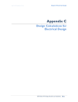 AppC_Ch9-DesignClac_8.9.10 Chapter 9 Electrical Design Appendix C Design Calculations for Electrical Design 2010 Edition SPU Design Standards and Guidelines 9C-i Appendix C Design Calculations 9C-ii 2010 Edition SPU Design Standards and Guidelines AppC_Ch9-DesignClac_8.9.10 Chapter 9 Electrical Design Contents Appendix C Design Calculations for Electrical Design .................................................................... 1 1.1 Introduction ..................................................................................................................... 1 1.2 Software .......................................................................................................................... 1 1.3 Calculation Matrix ........................................................................................................... 2 1.4 Basic Requirements for Electrical Calculations ............................................................... 4 1.5 Basic Electrical Engineering Formulas ............................................................................. 4 1.5.1 List of Symbols ......................................................................................................... 4 1.5.2 Direct Current (DC) Formulas .................................................................................. 5 1.5.3 Alternating Current (AC) Single Phase ..................................................................... 5 1.5.4 Alternating Current (AC), Three-Phase .................................................................... 5 1.5.5 Motors ..................................................................................................................... 6 1.5.6 Power Factor Correction ......................................................................................... 6 1.6 Sample Calculations......................................................................................................... 7 1.6.1 Load ......................................................................................................................... 7 1.6.2 Generator Sizing ...................................................................................................... 7 1.6.3 Conductor Size, General .......................................................................................... 9 1.6.4 Conduit Size and Fill............................................................................................... 13 1.6.5 Motor Branch Circuit ............................................................................................. 14 1.6.6 Power Factor Correction Capacitors...................................................................... 16 1.6.7 Transformer Primary and Secondary Conductors ................................................. 18 1.6.8 Voltage Drop.......................................................................................................... 20 1.6.9 Short Circuit ........................................................................................................... 22 1.6.10 Lighting .................................................................................................................. 23 1.6.11 Grounding .............................................................................................................. 29 1.6.12 Cable Pulling Tension............................................................................................. 29 1.6.13 Equipment Heat Loads .......................................................................................... 30 List of Tables Table C-1 Calculations for Electrical Design .................................................................................... 2 Table C-2 NEC References for Conductor Sizing .............................................................................. 9 Table C-3 Coefficient of Utilization Zonal Cavity Method ............................................................. 25 Table C-4 Candlepower Distribution Curve ................................................................................... 27 Table C-5 Losses in Electrical Equipment ...................................................................................... 30 List of Examples Example 1 Motors ........................................................................................................................... 6 Example 2 Conductor Size No. 1.................................................................................................... 11 Example 3 Conductor Size No. 2.................................................................................................... 12 Example 4 Conductor Size No. 3.................................................................................................... 12 Example 5 Conductor Size No. 3.................................................................................................... 13 Example 6 Conduit Size and Fill No. 1 ........................................................................................... 13 Example 7 Conduit Size and Fill No. 2 ........................................................................................... 14 Example 8 Motor Branch Circuit No. 1 .......................................................................................... 15 Example 9 Motor Branch Circuit No. 2 .......................................................................................... 16 Example 10 Power Factor No. 1 .................................................................................................... 17 Example 11 Power Factor Correction Capacitor No. 2 .................................................................. 18 Example 12 Transformer Primary and Secondary Conductors No. 1 ............................................ 18 2010 Edition SPU Design Standards and Guidelines 9C-iii Appendix C Design Calculations Example 13 Transformer Primary and Secondary Conductors No. 2 ................................