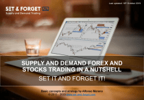 Last updated: 18th October 2019 SUPPLY AND DEMAND FOREX AND STOCKS TRADING IN A NUTSHELL SET IT AND FORGET IT! Basic concepts and strategy by Alfonso Moreno © 2013 - 2020 www.set-and-forget.com Copyright © 2013-2020 by Alfonso Moreno, Set and Forget S.L All rights reserved. No part of this publication may be reproduced, distributed, or transmitted in any form or by any means, including photocopying, recording, or other electronic or mechanical methods, without the prior written permission from the author, except in the case of brief quotations embodied in critical reviews and certain other noncommercial uses permitted by copyright law. For permission requests, write to the publisher at the address below. The information provided within this eBook is for general informational purposes only. While we try to keep the information up-to-date and correct, there are no representations or warranties, express or implied, about the completeness, accuracy, reliability, suitability or availability with respect to the information, products, services, or related graphics contained in this eBook for any purpose. Any use of this information is at your own risk. The methods describe within this eBook are the author’s personal thoughts. They are not intended to be a definitive set of instructions for this project. You may discover there are other methods and materials to accomplish the same end result.The methods describe within this eBook are the author’s personal thoughts. They are not intended to be a definitive set of instructions for this project. You may discover there are other methods and materials to accomplish the same end result. This is a free eBook. You are free to give it away (in unmodified form) to whomever you wish. Disclaimer: Any Advice or information on this eBook is General Advice Only - It does not take into account your personal circumstances, please do not trade or invest based solely on this information. By viewing any material or using the information within this eBook and www.set-and-forget.com you agree that this is general education material and you will not hold any person or entity responsible for loss or damages resulting from the content or general advice provided here by Set and Forget, its employees, or fellow members. Futures, options, and spot currency and stocks trading have large potential rewards, but also large potential risk. You must be aware of the risks and be willing to accept them in order to invest in the Forex and futures markets. Don't trade with money you can't afford to lose. This website is neither a solicitation nor an offer to Buy/Sell spot Forex, cfd's, stocks or other financial products. No representation is being made that any account will or is likely to achieve profits or losses similar to those discussed in any material on this website. The past performance of any trading system or methodology is not necessarily indicative of future results. High Risk Warning: Forex, Futures, and Options trading has large potential rewards, but also large potential risks. The high degree of leverage can work against you as well as for you. You must be aware of the risks of investing in Forex, futures, and options and be willing to accept them in order to trade in these markets. Forex trading involves substantial risk of loss and is not suitable for all investors. Please do not trade with borrowed money or money you cannot afford to lose. Any opinions, news, research, analysis, prices, or other information contained on this website is provided as general market commentary and does not constitute investment advice. We will not accept liability for any loss or damage, including without limitation to, any loss of profit, which may arise directly or indirectly from the use of or reliance on such information. Please remember that the past performance of any trading system or methodology is not necessarily indicative of future results. Alfonso Moreno info@set-and-forget.com Basic concepts and strategy by Alfonso Moreno © 2013-2020 www.set-and-forget.com Alfonso Moreno My name is Alfonso Moreno. I’m a full time trader, expert technical analyst and founder of www.set-and-forget.com supply and demand online trading community in October 2013. I have been trading the financial markets using exclusively supply and demand imbalances, a proprietary strategy developed by myself over the years which helps locate in any market turning points where professional and institutional traders are planning their trades. I was introduced to trading by my best friend before a full month trip to India. I didn’t know what a pip or tick was at the time. I was first introduced into options, luckily I didn’t have any capital to trade options or I would have blown up my account. I learnt about Forex and Stocks later and have been trading mostly Forex, Indexes and commodities ever since, while testing for years a series of methodical and strict rules set that have allowed me to become consistent in my trading. Lately my focus has been mostly on Stocks. I am at trader, photographer and adventurer that loves live and all creatures sharing our home at Planet Earth. Basic concepts and strategy by Alfonso Moreno © 2013-2020 www.set-and-forget.com The rules laid out in this eBook are based strictly on supply and demand. Nothing else is needed. • No lagging colorful indicators or studies • No volume analysis • No lagging overbought/oversold indicators or studies • No news events taken into account • No earnings announcements The concepts in this eBook can be applied to any market, asset and timeframe. LEARN MORE ABOUT THE COURSE HERE Basic concepts and strategy by Alfonso Moreno © 2013-2020 www.set-and-forget.com IMPORTANT NOTICE: This short eBook alone is useless. You need to watch the free material available on my YouTube channel, read and learn from my daily analysis blog, Instagram and Twitter, and test the rules over a long period of time. Knowledge and confidence will not 