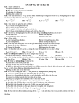 ÔN TẬP VẬT LÝ 11 HỌC KÌ 1 Câu 1: Điện tích điểm là: A. vật có kích thước rất nhỏ. B. điện tích coi như tập trung tại một điểm. C. vật chứa rất ít điện tích. D. điểm phát ra điện tích. Câu 2: Hai điện tích điểm q1 và q2 đặt cách nhau một khoảng r trong chân không thì lực tương tác giữa hai điện tích được xác định bởi biểu thức nào sau đây? qq qq qq qq A. F = 1 22 B. F = k 1 2 2 C. F = r 2 1 2 D. F = 1 2 2 k kr r r Câu 3: Lực tương tác giữa hai điện tích điểm A. tỉ lệ thuận với tổng hai điện tích B. tỉ lệ thuận với tích hai điện tích C. tỉ lệ nghịch với khoảng cách giữa hai điện tích D. tỉ lệ thuận với bình phương khoảng cách giữa hai điện tích Câu 4: Độ lớn lực tương tác giữa hai điện tích điểm đứng yên không phụ thuộc yếu tố nào? A. Dấu điện tích. B. Bản chất điện môi. C. Khoảng cách giữa 2 điện tích D. Độ lớn điện tích. Câu 5: Điện môi là A. môi trường không dẫn điện. B. môi trường không cách điện. C. môi trường bất kì. D. môi trường dẫn điện tốt. Câu 6: Hai chất điểm mang điện tích khi đặt gần nhau chúng đẩy nhau thì có thể kết luận: A. chúng đều là điện tích dương B. chúng đều là điện tích âm C. chúng trái dấu nhau D. chúng cùng dấu nhau Câu 7: Có hai điện tích điểm q1 và q2, chúng đẩy nhau. Khẳng định nào sau đây là đúng? A. q1< 0 và q2 > 0. B. q1> 0 và q2 < 0. C. q1.q2 < 0. D. q1.q2 > 0. Câu 8: Sẽ không có ý nghĩa khi ta nói về hằng số điện môi của A. hắc ín (nhựa đường). B. nhựa trong. C. thủy tinh. D. nhôm. Câu 9: Khi khoảng cách giữa hai điện tích điểm trong chân không giảm xuống 2 lần thì độ lớn lực Cu – lông A. tăng 4 lần. B. tăng 2 lần. C. giảm 2 lần. D. giảm 4 lần. Câu 10: Nhận xét không đúng về điện môi là: A. Điện môi là môi trường cách điện. B. Hằng số điện môi của chân không bằng 1. C. Hằng số điện môi của một môi trường cho biết lực tương tác giữa các điện tích trong môi trường đó nhỏ hơn so với khi chúng đặt trong chân không bao nhiêu lần. D. Hằng số điện môi có thể nhỏ hơn 1. Câu 11: Có thể áp dụng định luật Cu – lông để tính lực tương tác trong trường hợp A. tương tác giữa hai thanh thủy tinh nhiễm điện đặt gần nhau. B. tương tác giữa một thanh thủy tinh và một thanh nhựa nhiễm điện đặt gần nhau. C. tương tác giữa hai quả cầu nhỏ tích điện đặt xa nhau. D. tương tác điện giữa một thanh thủy tinh và một quả cầu lớn. Câu 12: Có thể áp dụng định luật Cu – lông cho tương tác nào sau đây? A. Hai điện tích điểm dao động quanh hai vị trí cố định trong một môi trường. B. Hai điện tích điểm nằm tại hai vị trí cố định trong một môi trường. C. Hai điện tích điểm nằm cố định gần nhau, một trong dầu, một trong nước. D. Hai điện tích điểm chuyển động tự do trong cùng môi trường. 10−4 Câu 13: Hai điện tích điểm trái dấu có cùng độ lớn C đặt cách nhau 1 m trong parafin có điện môi bằng 2 3 thì chúng 1 A. hút nhau một lực 0,5 N. B. hút nhau một lực 5 N. C. đẩy nhau một lực 5N. D. đẩy nhau một lực 0,5 N. Câu 14: Hai điện tích điểm cùng độ lớn 10-4 C đặt trong chân không, để tương tác nhau bằng lực có độ lớn 10-3 N thì chúng phải đặt cách nhau A. 30000 m. B. 300 m. C. 90000 m. D. 900 m. Câu 15: Có bốn vật A, B, C, D kích thước nhỏ, nhiễm điện. Biết rằng vật A hút vật B nhưng lại đẩy C. Vật C hút vật D. Khẳng định nào sau đây là không đúng? A. Điện tích của vật A và D trái dấu. B. Điện tích của vật A và D cùng dấu. C. Điện tích của vật B và D cùng dấu. D. Điện tích của vật A và C cùng dấu. Câu 16: Cách biểu diễn lực tương tác giữa hai điện tích đứng yên nào sau đây là sai? A. B. C. D. Câu 17: Trong các chất sau đây: I. Thủy tinh; II: Kim Cương; Những chất điện môi là: A. I và II B. III và IV III. Dung dịch bazơ; IV. Nước mưa. C. I và IV D. II và III Câu 18: Trong các cách nhiễm điện: I. do cọ xát; II. Do tiếp xúc; III. Do hưởng ứng. Ở cách nào thì tổng đại số điện tích trên vật không thay đổi? A. I B. II C. III D. I, II, III Câu 19: Trong các chất nhiễm điện : I. Do cọ sát; II. Do tiếp xúc; II. Do hưởng ứng. Những cách nhiễm điện có thể chuyển dời electron từ vật này sang vật khác là: A. I và II B. III và II C. I và III D. chỉ có III Câu 20: Phát biểu nào sau đây là không đúng? A. Hạt êlectron là hạt có mang điện tích âm, có độ lớn 1,6.10-19 (C). B. Hạt êlectron là hạt có khối lượng m = 9,1.10-31 (kg). C. Nguyên tử có thể mất hoặc nhận thêm êlectron để trở thành ion. D. êlectron không thể chuyển động từ vật này sang vật khác. Câu 21: Phát biểu nào sau đây là không đúng? Theo thuyết electron A. một vật nhiễm điện dương là vật thiếu êlectron. B. một vật nhiễm điện âm là vật thừa êlectron. C. một vật nhiễm điện dương là vật đã nhận thêm các ion dương. D. một vật nhiễm điện âm là vật đã nhận thêm êlectron. Câu 22: Đặt một điện tích âm, khối lượng không đáng kể vào một điện trường đều r