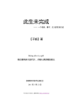此生未完成 —— 一个母亲、妻子、女儿的生命日记 【于娟】著 Being alive is a gift 我们要用多大的代价,才能认清活着的意义 【湖南科学技术出版社】 2011 年 5 月 23 日 This Ebook is Made by 龙的华尔兹 (weibo.com/alanturing) 此生未完成 于娟,女,32 岁,祖籍山东济宁,海归,博士,复旦大学优秀青年教师,一个两岁孩子的母亲, 乳腺癌晚期患者。 2009 年 12 月于娟确诊患乳腺癌后,写下一年多病中日记,在日记中反思生活细节,并发出“买 车买房买不来健康”的感叹,引起网友关注和众多媒体热议。于娟于 2011 年 4 月 19 日凌晨去世, 众多网友在网上进行追悼。一个年轻生命,在生死的边缘,用生命写下病中日记。在生命的最后日 子里,于娟完全放下了生死,放下了名利权情,赤裸裸的去反思和写作。所有的浮躁沉淀了,所有 的伪装剥离了,所有的喧嚣远去了,所有的执着放下了。只有一个普通的女子,普通的女儿、妻子、 母亲对生命最单纯的感悟。在这个故事里,很多读者看到的不是于娟,而是自己。 与命运抗争,积极乐观的人生态度。 -2- 此生未完成 于娟语录:“我相信,我会成为奇迹。”、“无所谓病痛,人没有不能承受的痛苦,还活着,我就 已经很知足了。”、“活着就是王道”。 健康、幸福的生活观念,于娟通过反省自己的不良生活习惯,告诫读者特别是年轻人不要任意 挥霍健康,任意挥霍幸福,要感恩生活,善待生命。 于娟语录:“买车买房买不来健康”、“长期熬夜等于慢性自杀”。 正确的生命教育(死亡教育)观。死亡教育在西方许多国家非常重视,一些大学开设有专门的 死亡教育课程,国内对这一话题较为敏感。于娟呼吁要理性看待死亡,然后珍惜生命,珍惜感情, 珍惜生活。 2011 年 4 月 19 日凌晨 3 时, “复旦大学抗癌教师”于娟去世,留下 70 多篇“癌症日记”。她的 “癌症日记”将出版成书。按照于娟的遗愿,于娟骨灰下周将送回老家山东安葬于公益能源林。于 娟追悼会定于 4 月 23 日上午十点在宝山殡仪馆举行。 ********************************************************************** 记录黑暗是残酷的,尤其在感到属于自己的那盏生命油灯一点点黯淡之时。但于娟决定完 完整整写下这段生命中最黑暗最苦痛的日子,也是她认为过去 32 年最有意义的日子。 ——《三联生活周刊》 “我想给儿子土豆留下些什么”。正是带着这样的信念,于娟在病中也坚持辅导孩子。而在 生命日记中展现她的喜忧,写下她的感悟,不是矫揉造作、不是宣传作势,而是一个母亲要给她的 孩子留给一份礼物。 ——《人民日报》 其(于娟)病痛的苦楚、人性的感悟,读来令人泪下,其实是一本最好的人生教材,教会 我们如何去热爱生命,如何去抵挡困难。 ——《中国日报》 这位风华正茂的女博士,在博客上残酷、冷静而理性地记录下自己对人生的理解,对健康、 财富、亲情等人生追求的感悟。这些提前到来的参悟,也许会对那些仍在苦苦追求的人们带来一种 别样的启迪。 ——《齐鲁晚报》 复旦大学“抗癌教师”于娟在癌症抗争的一年半时间,留下 79 篇抗癌日记和“复旦教师抗 癌记录”微博,这些在生死交叉点上对生命的反思,对年轻人莫透支青春的警诫感动了无数人。 ——《新民晚报》 -3- 此生未完成 目录 序一............................................................................................................................................................ - 6 序二............................................................................................................................................................ - 8 第一部分 无畏施.................................................................................................................................... - 10 1 我的坚强与柔软.......................................................................................................................... - 10 2 义气和义乳.................................................................................................................................. - 12 3 走钢丝的孩子.............................................................................................................................. - 13 4 小瑞.............................................................................................................................................. - 15 5 孔雀爷爷...................................................................................................................................... - 17 6 土豆的圣诞节.............................................................................................................................. - 19 7 黑色幽默话自杀.......................................................................................................................... - 20 8 我可爱的朋友们.......................................................................................................................... - 23 9 无畏施反被无畏施...................................................................................................................... - 27 10 病中病........................................................................................................................................ - 28 11 谁是我的下一任........................................................................................................................ - 31 12 病中之最散记............................................................................................................................ - 33 13 “为啥是我得癌症”的非学术