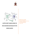 LIPID METABOLISM IN NEURODEGENERATIVE DISEASES SUBMITTED BY: ALI ABBAS Roll no.: 0011-BS-BIO-T-22 Submitted to: Sir Mehmood Ul Hassan Course Title: Metabolism II Class: BS Biotech Morning Semester: 6th Contents Abstract .......................................................................................................................... 3 1. Introduction ................................................................................................................ 4 2. Lipid Metabolism in the Nervous System ................................................................. 4 2.1 Phospholipids ....................................................................................................... 4 2.2 Sphingolipids ....................................................................................................... 4 2.3 Cholesterol ........................................................................................................... 4 2.4 Lipid Transport and Storage................................................................................. 5 3. Dysregulation of Lipid Metabolism ........................................................................... 5 3.1 Lipid Peroxidation and Oxidative Stress ............................................................. 5 3.2 Disruption of Membrane Structure and Lipid Rafts ............................................ 5 3.3 Lipid Droplets and Neuronal Dysfunction ........................................................... 5 3.4 Aberrant Lipid Signaling...................................................................................... 5 4. Lipid Metabolism in Specific Neurodegenerative Diseases ...................................... 6 4.1 Alzheimer's Disease ............................................................................................. 6 4.1.1 Cholesterol and Amyloid Precursor Protein Processing ............................... 6 4.2 Parkinson's Disease .............................................................................................. 7 4.2.1 Mitochondrial Dysfunction and Lipid Peroxidation ..................................... 7 4.2.2 Sphingolipids and α-Synuclein ..................................................................... 7 4.2.3 Cholesterol and Synaptic Dysfunction.......................................................... 7 4.2.4 Therapeutic Implications .............................................................................. 8 4.3 Huntington's Disease............................................................................................ 8 4.3.1 Mitochondrial Dysfunction and Lipid Peroxidation ..................................... 8 4.3.2 Altered Sphingolipid Metabolism ................................................................. 8 4.3.3 Cholesterol and Lipid Rafts .......................................................................... 9 4.3.4 Therapeutic Implications .............................................................................. 9 4.4 Amyotrophic Lateral Sclerosis (ALS) ................................................................. 9 4.4.1 Lipid Rafts and Motor Neuron Degeneration ............................................... 9 4.4.2 Mitochondrial Dysfunction and Lipid Peroxidation ..................................... 9 4.4.3 Altered Sphingolipid Metabolism ............................................................... 10 4.4.4 Cholesterol Metabolism and Synaptic Dysfunction ................................... 10 4.4.5 Therapeutic Implications ............................................................................ 10 5. Emerging Concepts: Lipidomics and Neurodegeneration ....................................... 10 5.1 The Role of Lipidomic Profiling in Neurodegenerative Diseases ..................... 10 5.2 Lipidomic Signatures as Biomarkers ................................................................. 11 5.3 Therapeutic Implications of Lipidomics in Neurodegeneration ........................ 11 6. Therapeutic Implications ......................................................................................... 11 6.1 Cholesterol and Lipid-Lowering Strategies ....................................................... 11 6.1.1 Statins and Other Cholesterol-Lowering Agents ........................................ 12 6.1.2 Non-Statin Cholesterol-Lowering Strategies .............................................. 12 6.2 Sphingolipid Modulation ................................................................................... 12 6.2.1 Ceramide Inhibition .................................................................................... 12 6.2.2 Sphingosine-1-Phosphate Modulation ........................................................ 12 6.3 Fatty Acid Supplementation ............................................................................... 12 6.3.1 Omega-3 Fatty Acids in Neurodegeneration............................................... 13 6.3.2 Omega-6 Fatty Acids and Inflammation ..................................................... 13 6.4 Lipid-Based Nanomedicine ............................................................................... 13 6.5 Targeting Mitochondrial Lipids ......................................................................... 13 6.5.1 Mitochondrial Lipid Modulation ................................................................ 13 7. Conclusion ............................................................................................................... 13 Bibliography ................................................................................................................ 15 No table of figures entries found. Abstract Lipid metabolism is a critical factor in the pathogenesis of neurodegenerative diseases, with alterations in lipid homeostasis contributing significantly to disease progression. Neurodegenerative disorders, including Alzheimer’s disease (AD), Parkinson’s disease (PD), and Huntington’s