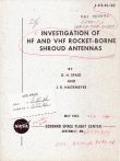 --- ~~.~---,.--- X-615-63-102) // N 64 . ~7?e-/ ~ ;<~ j/ 10 10 9'1 #l?S# //7/1'~ 5/c:25;7} i / / " INVESTIGATI N 'OF HF AND VHF ROCKET-BORN SHROUD ANTENNAS ' BY ~ '" G. H. SPAID AND J. R. HAGEMEYER - _- - - - --- --- ~~.. MAY 1963 - . -----'-~- GODDARD SPACE -FLIGH T CENTER/ -------,GREENBELT, MD. '::? d ~/ 5 () 7 r on: 't 2.. & rrJ t fJ. q L -f 0 ;- INVESTIGATION OF HF AND VHF ROCKET-BORNE SHROUD ANTENNAS by G. H. Spaid and J. R. Hagemeyer NASA-Goddard Space Flight Center Space Sciences Division Greenbelt, Maryland MAY 196 3 INVESTIGATION OF HF AND VHF ROCKET-BORNE SHROUD ANTENNAS by G. H. Spaid and J. R. Hagemeyer NASA-Goddard Space Flight Center Space Sciences Division Greenbelt, Maryland ABSTRACT ((j(or The shroud antenna system originally developed by the Ballistic Research Laboratory for their 38 Mc/76 Mc DOVAP tracking system, has been modified at GSFC to meet the requirements of ionospheric experiments in which 24.5 and 73.6 Mc CW signals are transmitted from a rocket to the ground. These modifications were accompanied by significant improvements in matching and in pre-flight antenna adjustment techniques. In addition, it was found that shroud antennas could be used quite satisfactorily at frequencies lower than those used in the DOVAP system. Experimental results from two rocket flights showed that the antenna performance was in good agreement with theoretical predictions. INVESTIGATION OF HF AND VHF ROCKET-BORNE SHROUD ANTENNAS by G. H. Spaid and J. R. Hagemeyer NASA-Goddard Space Flight Center Space Scipnces Division Greenbelt, Maryland I. INTRODUCTION The antennas to be discussed are currently a part of the instrumentation used by GSFC for the measurement of electron densities in the ionosphere. The rocket-borne propagation technique l used for this purpose is baspd upon the measurement of the dispersive Doppler effect of two harmonically related frequencies. The antenna used to radiate the lower of the two frequencies presents the more difficult problem . Experiments conducted in the past using various choices of the lower frequency (4.27 Mc., 7.75 Mc. and 12.27 Mc.) have indicated that the quality of the ionospheric measurements does not deteriorate when the low frequency was raised from 4.27 Mc to 12.27 Mc. Furthermore, rais- ing the low frequency leads to significant simplifications in both the antenna design and the data analysis. Various types of extendable antennas 2 ,3 have previously been used successfully in the program. Although these antennas were electrically very satisfactory, the required extension introduced mechanical complications which resulted in reduced reliability. Another serious drawback in small payloads was the storage space required for these antennas. In view of the changes in operating frequencies for the CW propagation experiment to 24.53 Mc and 73.6 Mc, it appeared feasible to use modified versions of the DOVAP shroud antennas which require no extension and no payload storage space. The investigation of this problem led to improvements in the basic design of the antenna networks and the entire system was successfully tested in two rocket flights. The present report discusses in detail the modified antenna design and the results of the rocket tests. The modification included the use of a switched attenuator to prevent antenna breakdown 2 in the 60 to 100 km altitude range. II. DISCUSSION OF THE STANDARD 76 Me. DOVAP SHROUD ANTENNA Mechanical Design The 76 Mc shroud antennas 4 were designed and developed by the Ballistic Research Laboratories at the Aberdeen Proving Ground, Md., as a part of their DOVAP instrumentation for determining rocket trajectories during the IGY launchings at Fort Churchill, Canada. These antennas are normally mounted and phased to approximate a one turn rectangular loop with the rocket axis in the plane of the loop and parallel to two sides of the loop. The loop is made of two shrouds clamped on opposite sides of the rocket. A flat copper foil conductor that has been formed into a semicircular shape is molded between two layers of a heat resistant fiberglasplastic laminate. I I I L These shrouds are illustrated by Figures 1 and 2. - 2 - i. FIGURE 1 73.6 Me. Shroud Mounted On A Ground Plane BAKELITE COMPO NE NT MOUNTING BLO CK FIBERGLAS \ SHELL \ \ ALUMINUM ~ TERMINATION AND MOUNTING FOOT COPPPER COAXIAL CABLE FIGURE 2 Side View of Sh roud (Cutaway) - 3 - The 76 Mc. shroud is about 38 inches long, the width is l~ inches and it extends 1\ inches from the rocket. The copper foil con- ductor is broken in the middle of the shroud to form two terminals. The ends are electrically connected to the rocket at each end of the shroud when the antennas are mounted on the rocket. A small solid copper shielded coaxial cable is mounted near and connected in several places to the inner surface of the copper foil from one end to the center of the shroud. Thus, in operation the cable shield is excited to the same potential as the conductor to which it is attached. A schematic of a shroud is shown in Figure 3. A block of bakelite is provided at the center of the shroud to serve as a mounting for the components used to match the shroud terminal impedance to the coaxial cable. FIGURE 3 Schematic of Shroud Theory of Operation For loop antennas in which the dimensions are small compared with a wavelength, the current is usually assumed to be constant - 4 - ,~- throughout the loop and the radiation pattern is practically independent of the shape of the loop. E wh ere 120n 2 -d~--N(A/ A 2 The field strength is given byS ) I cos e E = field strength, volts per meter d distance, meters N number of loop turns A area of loop, square meters A = wavelength, meters area of loop, wavelengths squared I loop current, amperes 8 angle with respect to the plan e of the loop. The s h rouds on opposite sides of the rocket are opposit e ly phased so t h at t h e current flows in the same direction around the loop. For purposes of calculating field strength the eff