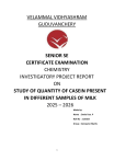 Project on the topic “STUDY OF QUANTITY OF CASEIN