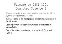 Welcome to CSCI 1301
