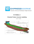 TUTORIAL 1 Chemical Tanker structure modeling Version 4 – June 2021 1 ExpressMarine 138.4 m Tanker Tutorial To begin this tutorial, please download the Tutorial_Practice_Files.zip available at https://www.expressmarine3d.com/learn. Basic knowledge of Rhino is required. 1. Creating a new project Open Rhino to create a regular Rhino project. Use the Rhino command Save and give a suggestive name, TankerTutorial_EM1.2.1.3dm. Select ExpressMarine and New Project from the top menu. Or type ExpressMarineCreateProject in the Rhino Command bar and hit Enter. The Main Parameters window will pop-up and fill in the ship data as following: 2 like Press and the ExpressMarine project will be initiated. Note: Notice the Throw Point pre-defined at X= Lpp/2, Y=0 m, and Z=0.05 m. This will determine the side of the plate onto which the stiffeners will be generated and the orientation of the stiffeners’ flange. 3 2. Importing and Preparing the GA In the Project node, Main Parameters tab, Imports: click Browse button. The ImportGA window will appear: 4 Change the file type from All compatible file types(*.*) to (AutoCAD Drawing Exchange (*.dxf): Click Options… 5 This will open DWG/DXF Import Options window. Make sure Model units is set to Meters and Layout units is set to Millimeters, and then press OK. Select Tanker_General_Arrangement_V1.2.1.dxf file and then click Open: 6 The general arrangement drawing will be imported into the project. In Rhino window, right click on ZoomExtents all viewports icon Because the units of the drawing is mm and the 3D model’s is meter, the size of the drawing is 1000 times larger. Scale down the drawing : selecting all the new objects by typing SelLast command: Press Enter. The entire drawing will glow yellow: 7 While the entire drawing is selected (yellow), type Scale command and press Enter. For the Origin point, type 0,0,0 and press Enter. For the Scale factor or first reference point, type 0.001 and press Enter. Right Click on ZoomExtents all viewports icon scaled down by 1000: 8 to view the drawing which is now Press Esc (Escape) from the keyboard to deselect all objects: In Rhino main window, switch to Top viewport, by double clicking on upper-left corner of the graphic window: Select all the drawings by typing SelAll command and then Enter. The result is: 9 , in the While all drawings are selected (highlighted in yellow), type Move Rhino command: and then press Enter. You will be asked to give the Point to move from, just click anywhere in the graphic. Then you must click a second point, the Point to move to, so that the drawings are moved to the side of the rectangles, like below: Point to move from Point to move to 10 Press Esc (escape) keyboard to deselect all. Make sure that the Osnap and Ortho are activated (they must be Bold) and that the End, Near, Point, Mid, Cen, Int, Perp, and Quad are checked: Select each deck section, and Move them from their origin point (intersection between frame number 0 and the Centerline): 11 to the point inside the appropriate selection rectangle: Continue for all the sections, including for profile and midship section, to obtain as following: Remember to save regularly 12 3. Framing System tab Check the frame scale in the Profile view, and you will notice that the frame spacing changes at Frame #10 and Frame #173, from 600 mm to 700 mm and then back to 600 mm. Go to tab in Project node and set this, fill in the data as in the picture below, press Set frame string for Longitudinal, Transverse and Vertical Framing System Press to confirm and create the frame scales in all selection boxes. For more details and information please see ExpressMarine2017_1.2.1_UserManual.pdf /2.3 Framing System tab chapter or check the info button and Vertical Framing System. 13 in front of Longitudinal, Transverse 4. The Shell Click on the Shell node in the tree view to confirm that Symmetric is checked. Go to ShellPS_part1 node and click Import Hull button: The Import Parent surface window will appear: 14 Change the file type from All compatible file types(*.*) to (IGES (.igs;*.iges): Select Hull_PS_Tanker file and then click Open: 15 Hull_PS parent surface will be imported in the graphics: Click on ShellPS and then PickOnGA button to start generating the bulwark profile: and select from the profile drawing, the upper border curve of the shell, highlighted in yellow under: 16 Notice that the Bulwark profile is a single curve (or polycurve) and the ends were already extended outside the hull’s aft and fore ends to ensure a successful trim. The trace name will be automatically filled in, then press “Generate Bulwark Profile PS” button to create the cutting surface: Inspect it visually: 17 Make sure the limits are filled as bellow: Fill in the seams definition like following, (press the button to add the second seam row; Z=5 will create horizontal seam at the height of 5 meters) : Go to ShellPS_part1 and press button to start creating the Shell. It may take few seconds; the result should be like below: 18 From the Profile drawing we notice there are some openings on the Shell surface. To generate the openings, go to ShellPS node, Cutouts and Openings and follow the next steps: The Cutouts and Opening Methods array will open, and select the Side Cutout by Trace: 19 The trace selector will open which allow you to give a name: now press Pick button (see the Rhino Command bar for message) and select the opening curves from the profile drawing (before selecting the curves make sure that opening traces are closed curves, otherwise, the open curves will be ignored) 20 press Enter; the openings names have automatically been added to the Trace list textbox Press Confirm to close picking dialog. The first cutout definition will be added in the Cutout and Opening field: now press button to regenerate ShellPS and obtain: Remember to Save periodically! 21 Setting custom shell plates thickness: Select the first plate, “ShellPS_part1_Plate1” and change 