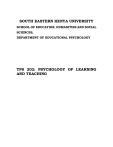 SOUTH EASTERN KENYA UNIVERSITY SCHOOL OF EDUCATION, HUMANITIES AND SOCIAL SCIENCES, DEPARTMENT OF EDUCATIONAL PSYCHOLOGY TPS 202: PSYCHOLOGY OF LEARNING AND TEACHING TABLE OF CONTENTS LESSON ONE..................................................................................... 1 MEANING AND RELEVANCE OF EDUCATIONAL PSYCHOLOGY ..........1 1.0 INTRODUCTION .................................................................................1 1.1 OBJECTIVES .....................................................................................1 1.2 DEFINITION OF EDUCATION.............................................................1 1.3 THE CONCERNS OF EDUCATIONAL PSYCHOLOGY..........................2 1.4 AREAS OF EDUCATIONAL PSYCHOLOGY .........................................3 1.5 RELEVANCE OF EDUCATION PSYCHOLOGY ....................................5 1.6 FOCUS AREAS OF EDUCATIONAL PSYCHOLOGY ............................9 1.7 SUMMARY .......................................................................................11 1.8 KEY TERMS .....................................................................................12 1.9 Review Questions .............................................................................14 LESSON TWO .................................................................................. 14 LEARNING .............................................................................................14 2.0 INTRODUCTION ...............................................................................14 2.1 OBJECTIVES ...................................................................................14 2.2 THE RELEVANCE OF LEARNING .....................................................14 2.3 DEFINITION OF THE TERM LEARNING ...........................................15 2.4 TYPES OF LEARNING ......................................................................15 2.5 OPERANT CONDITIONING ...............................................................19 2.6 SOCIAL LEARNING THEORY ...........................................................22 2.7. INSIGHTFUL LEARNING .................................................................23 2.8 INFORMATION PROCESS SYSTEM ..................................................25 2.9 SUMMARY .......................................................................................27 2.10 KEY TERMS ...................................................................................29 2.11 REVIEW QUESTIONS .....................................................................29 LESSON THREE .............................................................................. 30 REMEMBERING AND FORGETTING ....................................................30 3.0 INTRODUCTION ...............................................................................30 3.1 OBJECTIVES ...................................................................................30 3.2 WHY STUDENTS FORGET THE CONTENT THEY LEARN ................30 3.3 THE BEHAVIORISTIC THEORY ........................................................30 3.4 COGNITIVE EXPLANATION ..............................................................34 3.5 IMPROVING MEMORY .....................................................................36 3.6 SUMMARY .......................................................................................40 3.7 KEYWORDS .....................................................................................41 3.8 REVIEW/DISCUSSION QUESTIONS ................................................41 LESSON FOUR ................................................................................ 42 FACTORS THAT INFLUENCE LEARNING ............................................42 ii 4.0 INTRODUCTION ...............................................................................42 4.1 OBJECTIVES ...................................................................................42 4.2 THE FACTORS THAT INFLUENCE LEARNING .................................42 4.3 THE LEARNING ENVIRONMENT ......................................................44 4.4 The Learner Characteristics .............................................................46 4.5 The Subject Matter ...........................................................................49 4.6 SUMMARY .......................................................................................53 4.7 KEY WORDS ....................................................................................53 4.8 REVIEW/DISCUSSION QUESTIONS ................................................54 LESSON FIVE .................................................................................. 54 TRANSFER OF LEARNING ...................................................................54 5.0 INTRODUCTION ...............................................................................54 5.1 OBJECTIVES ...................................................................................55 5.2 DEFINITION OF TRANSFER OF LEARNING .....................................55 5.3 ASPECTS OF TRANSFER .................................................................55 5.4 TYPES OF TRANSFER ......................................................................57 5.5 TEACHING FOR TRANSFER.............................................................59 5.6 NOTE ...............................................................................................62 5.7 SUMMARY .......................................................................................62 5.8 KEY WORDS ....................................................................................63 5.9 REVIEW/DISCUSSION QUESTIONS ................................................63 LESSON SIX .................................................................................... 64 INDIVIDUAL DIFFERENCES IN LEARNING .........................................64 6.0 INTRODUCTION ...............................................................................64 6.1 OBJ