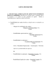 LISTA DE RÁCIOS A - RÁCIOS PARA APRECIAÇÃO DE ASPECTOS ECONÓMICOS [Rácios de rendibilidade Indicadores da relação entre o resultado (lucro ou prejuízo) e as vendas ou uma grandeza de capital – Medem a capacidade para a empresa realizar proveitos] • Rendibilidade das vendas (Analisa a relação entre os resultados e as vendas) - Margem de contribuição das vendas = =Margem Contribuição Bruta (%) Vendas - Rendibilidade operacional das vendas = = Resultado operacional (%) Vendas - Rendibilidade de exploração = = Excedente Bruto de Exploração (%) Vendas E.B.E. =Resultados Operacionais + Amortizações + Provisões (Aprecia a produtividade da empresa) ou - Rendibilidade de exploração = Resultados Correntes (%) Vendas - Rendibilidade líquida das vendas = Resultado Líquido (%) Vendas • Rendibilidade do Capital Próprio = Resultado Líquido (%) Capital Próprio (Permite ao accionista e ao gestor verificar se a rendibilidade do capital próprio está a um nível aceitável, comparativamente às taxas de rendibilidade do mercado de capitais e ao custo do financiamento) • Rendibilidade do Activo = Resultados Operacionais (%) Activo Líquido (Avalia o desempenho dos capitais totais investidos na empresa, independentemente da sua origem – próprios ou alheios) ou • Rendibilidade do Activo (após impostos)= = Resultados Operacionais x (1- taxa imposto) (%) Activo Líquido (É um melhor indicador para comparação entre empresas. Pode ser comparado com o custo do capital alheio, podendo verificar-se se o endividamento pesa favorável ou desfavoravelmente na rendibilidade dos capitais próprios) B - RÁCIOS PARA APRECIAÇÃO DE ASPECTOS FINANCEIROS (Rácios de estrutura - Apreciam o estado da estrutura financeira da empresa num dado momento, possibilitando a respectiva caracterização e evolução ao longo do período de tempo considerado) B1 - Rácios de liquidez (Analisam a capacidade de reembolso das dívidas de curto prazo) • Liquidez Geral = Activo Circulante . Passivo Circulante (Débitos a curto prazo) [ Exprime em que medida o Activo Circulante é financiado por recursos de curto prazo. O valor deste rácio deve ser > 1(FM >0) para que a empresa se apresente equilibrada financeiramente.] • Liquidez Reduzida = Activo Circulante – Existências . Passivo Circulante (Débitos a curto prazo) (Este rácio considera que as existências não poderão ser transformadas de imediato em dinheiro) • Liquidez Imediata = D. Bancários + Caixa + Títulos Neg. . Passivo Circulante (Débitos a curto prazo) (Dá o grau de cobertura do Passivo Circulante por disponibilidades. O valor do numerador é muito variável no muito curto prazo, sem que as suas variações dêem, normalmente, indicações válidas sobre a evolução da situação de tesouraria. Aliás, uma gestão financeira adequada deverá ter como objectivo a redução das disponibilidades, diminuindo dessa forma as necessidades de financiamento.) B2 - Rácios de autonomia financeira e solvabilidade (Visam apreciar o grau de independência financeira da empresa. Rácios utilizados para análise de crédito, identificando as dívidas que a empresa contraiu e as implicações que as mesmas têm na exploração.) • Cobertura do Imobilizado por Capitais Permanentes = = Capitais Permanentes Imobilizações Líquidas (Revela em que medida os activos imobilizados são financiados por capitais permanentes) • Cobertura do Imobilizado por Capitais Próprios = = Capitais próprios Imobilizações Líquidas (Revela em que medida os activos imobilizados são financiados apenas por Capitais Próprios) Com o objectivo de obter informações sobre a política de financiamentos prosseguida em determinado exercício poderão ser calculados os dois seguintes rácios: • Variações dos Capitais Permanentes Variações do Imobilizado Bruto [Determina até que ponto os aumentos líquidos do imobilizado (investimentos, desinvestimentos, abates) estão a ser financiados com recurso a Capitais Permanentes] • Investimento em Imobilizado Amortizações do Exercício (Permite avaliar em que medida os investimentos estão a ser financiados pelas próprias amortizações e indicia a política de investimento que a empresa tem prosseguido) • Autonomia financeira = Capital Próprio Activo (Um valor baixo indica grande dependência em relação aos credores, situação que ao aumentar o risco financeiro da empresa, tem implicações na negociação de novos financiamentos e nas eventuais renegociações de financiamentos em curso. Quando o valor do rácio é elevado a empresa tem garantida a sua independência, o seu risco é mais reduzido.) • Solvabilidade = Capital Próprio Passivo (Este rácio permite as mesmas leituras que o anterior, sendo um bom indicador para os credores avaliarem o risco de eventuais operações com a empresa.) • Capacidade de endividamento a MLP = Capitais Próprios Dívidas MLP (Este rácio surge na sequência do anterior e permite avaliar a importância do Capital Próprio relativamente às Dívidas a MLP) Em complemento dos três rácios anteriores, podem ainda calcular-se os seguintes, que permitem a análise do endividamento e da solvabilidade da empresa: • Endividamento = Passivo . Capital Próprio + Passivo (Indica em que medida a empresa utiliza capital alheio no financiamento das suas actividades.) ou • Debt to Equity Ratio = Passivo . Capital Próprio Os seguintes rácios permitem determinar a capacidade da empresa em garantir o cumprimento do serviço da dívida: • Cobertura do serviço da dívida = EBE . Serviço da dívida EBE = Resultados Operacionais + Amortizações + Provisões Serviço da dívida = Encargos financeiros + Reembolsos da dívida (Mede o grau com que a exploração assegura a cobertura financeira das obrigações derivadas dos financiamentos contraídos.) • Cobertura dos encargos financeiros = Resultados Operacionais Encargos financeiros (Mede o grau com que a explora