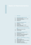 I Basics of Thermodynamics 1 Introduction . . . . . . . . . . . . . . . . . . . . . . . . . . 9 2 The zeroth law of Thermodynamics . . . 11 2.1 2.2 2.3 2.4 2.5 Thermodynamical systems Thermodynamical (macro) versus micro states Thermodynamical equilibrium Equation of state The zeroth law 3 The first law of Thermodynamics . . . . . . 17 3.1 3.2 3.3 3.4 3.5 3.6 Thermodynamical change The first law Internal energy Functions of state vs functions of path Definition of work & heat Constructing new thermodynamical quantities 4 Thermodynamical processes & Carnot engine . . . . . . . . . . . . . . . . . . . . . . . . . . . . . . . . 23 4.1 4.2 4.3 Quasi-static & reversible processes The Carnot cycle The Carnot engine 5 The second law of Thermodynamics . . 31 5.1 5.2 5.3 5.4 5.5 5.6 Statements of the second law Carnot’s theorem Equivalence of Clausius’ & Kelvin’s statements Engine driven backwards & real engines Clausius’ theorem and entropy Calculating entropy changes 6 “Practical” Thermodynamics & free energy . . . . . . . . . . . . . . . . . . . . . . . . . . . . . . . . 47 6.1 6.2 6.3 6.4 6.5 6.6 6.7 The first law revisited Thermodynamical potentials General conditions for thermodynamic equilibrium Maxwell’s relations Thermodynamical coefficients Generalisation to open systems Thermodynamics beyond expansion work 1. Introduction Thermodynamics is the study of how heat moves around in ‘macroscopic’ objects. Throughout these lectures, we will talk a lot about laws and models. Models are a simplified, empirical description of a real system which generally develops overtime as our knowledge progresses. In contrast, laws derive from fundamental principles of Physics and thus apply⇤ universally. Examples of laws are: the energy conservation law, Newton’s laws of motion, but also quantum mechanics, special and general relativity, etc ... Examples of models include: the ideal gas, the Bohr atom etc ... One important thing to remember is that what looks obvious to the modern physicist, was not so in the 18th and early 19th century, when Thermodynamics was developed! For instance, the description of matter as made of atoms and molecules — although an old philosophical idea — in terms of statistical mechanics was yet to be invented. Quantum mechanics and special relativity did not exist. In short, there was no microscopic underpinning of Thermodynamics. Even the concept of energy was blurry, with the French chemist, Lavoisier, proposing the existence of a weightless conserved fluid called ‘caloric’ (a.k.a. ‘heat’ in modern language). Rumford had observed that cannons were heated by friction during boring, which showed that mechanical work could be turned into heat, but it was Joule who was the first to perform a careful experiment which determined the mechanical equivalent of heat, using a paddle wheel apparatus. ⇤ with caution ... 2. The zeroth law of Thermodynamics 2.1 Thermodynamical systems Before we embark on deriving the laws of thermodynamics, it is necessary to define the main vocabulary we will be using throughout these lectures. Definition 2.1.1 — ‘Thermodynamical system’ (or ‘system’). Whatever “macroscopic” part of the Universe we select for study. “Macroscopic” here means made of a large number of particles, N , i.e. N NA ' 6.02⇥1023 , with NA the Avogadro number. This is very important as some properties (eg. temperature) do not apply for single particles. As an isolated system is not a very realistic concept (apart if one studies the Universe as a whole!), one is led to define the Definition 2.1.2 — ‘Surroundings of a system’ (or ‘surroundings’). This is simply the vicinity of a system. Generally the surroundings will be much larger than the system itself, so will not be treated in the same way. The system and its surroundings are separated from one another by a boundary. Together, system and surroundings form what is called the Definition 2.1.3 — ‘Total system’. This is a thermodynamical system which can be con- sidered as isolated to a good approximation. Graphically, one can summarise this definitions as follows: Chapter 2. The zeroth law of Thermodynamics 12 system ⇠⇠ ⇠⇠⇠ ⇠ ⇠ ⇠ ⇠⇠⇠ ⇠⇠ surroundings : ⇠ ⇠⇠⇠ - boundary total system (isolated) Figure 2.1: Schematic diagram of a thermodynamical system. R 2.2 There will exist multiple possible choices to define system and surroundings in any given thermodynamical problem: choose wisely! Thermodynamical (macro) versus micro states When a theory or a measurement provides a complete description of a system, one says that the system’s state is determined. For a thermodynamical (or macroscopic) system, all there is to know about it can be summarised by four thermodynamical variables. Two of these, the pressure, p, and the temperature, T , are called intensive variables as they do not depend on the amount of material in the system. The other two, the volume, V , and the number of particles, N , are extensive variables and depend on the amount of material in the system. Obviously, the micro states (positions and momenta of all the particles that compose the system) are not determined by these four variables. However, any micro state which gives rise to the same values for these four variables cannot be differentiated in terms of thermodynamics (see example in Fig. 2.2). ⇢⇢ ⇢ ⇢ ⇢ ⇢ ⇢⇢ ⇢ ⇢ ⇢ ⇢ ⇢ ⇢ ⇢ ⇢ ⇢ ⇢ ⇢ ⇢ ⇢ ⇢ ⇢ ⇢ ⇢ ⇢ ⇢ ⇢ ⇢ macrostate: ⇢ ⇢ ⇢ ⇢ ⇢ ⇢ ⇢ ⇢ ⇢ ⇢XX ⇢ ⇢ ⇢ ⇢ ⇢ ⇢ X ⇢ ⇢ ⇢ ⇢ ⇢ ⇢ # of particles: N ' NA ⇢ ⇢ ⇢ ⇢ ⇢ ⇢ XXX ⇢ ⇢ ⇢ ⇢ ⇢ ⇢ ⇢ ⇢ ⇢ ⇢ ⇢ X ⇢XX pressure: p ⇢ ⇢ ⇢ ⇢ X temperature: T ⇢ ⇢ X ⇢ r XXX X volume: V p pH j H p KAp p p⇥⇥ r p6 p microstate: N particles positions: ~xi momenta: p~i Figure 2.2: Example of macrostates and microstates: inflatable balloon. We will start these lectures