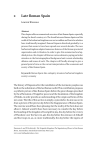 2 Late Roman Spain Laurent Brassous Abstract This chapter offers a summarized overview of late Roman Spain, especially during the fourth century ad. The break between Roman Spain and the world of the barbarian kingdoms was not as sudden and brutal as scholars have traditionally imagined. Roman Hispania dissolved gradually, in a process that seems to have been spread over several decades. The new barbarian kingdom adopted numerous features of the Roman provincial organization and civilization. In order to give this summarized and updated picture, this chapter will discuss various elements, paying particular attention to the historiographical background and current scholarship debates and issues of each. The chapter will f inally attempt to give a general point of view on the current interpretation of the economics and society of late Roman Spain. Keywords: Roman Spain; late antiquity; invasion; barbarian kingdom; society; economy The history of Hispania after the installation of the Germanic peoples was built on the substratum of the last Roman world. This contribution proposes a synthetic picture of late Roman Spain before the great changes provoked by the affirmation of Visigothic power and the foundation of the kingdom of Toledo, in order provide an understanding of the origin and forms of this new state. The title of this section is simply a synecdoche. Its aim was not to draw a picture of the precise day before the disappearance of Roman Spain. The exercise would have been pleasing, but the reality of the facts does not allow it. Indeed, would it have been necessary to consider the day before the founding of the kingdom of Liuvigild in 569, the day before the victory of Theodoric over the Suevi in 456, the day before the entrance of Athaulf and his troops in 411, or, more traditionally, the day before the ingress of Panzram, S. and P. Pachá (eds.). The Visigothic Kingdom: The Negotiation of Power in Post-Roman Iberia. Amsterdam: Amsterdam University Press 2020 doi: 10.5117/9789463720632_ch02 40 L aurent Br assous Alans, Suevi, and Vandals into Hispania in 409? Is it nevertheless relevant to produce a picture of such a precise date? This process would inevitably lead to setting a historical periodization whose defects are well known. It has been demonstrated for some years that the break between Roman Spain and the world of barbarian kingdoms was not as sudden and brutal as such a precise date might suggest. Roman Spain indeed gradually dissolved, a process that seems to extend over several decades. It is possible to discuss the duration of this process according to the markers used to gauge this transition period. According to Arce, the fifth century is a long century of transition, marked in many areas by important processes of continuity in the administrative, economic, or cultural domains.1 He lends to the barbarians a role in the conservation of the Roman way of life. Others consider a rapid transition with more changes: for Le Roux, the apparent conservation of structures, such as the provincial frameworks, can’t disguise the evolution of power relations or regional balances.2 These different points of view partly reflect a more general debate about the end of the Roman Empire, on the brutality of its disappearance, or its long decomposition.3 Rather than enter into this debate, we will propose, more modestly, a synthetic picture of Roman Spain in the fourth century before its dissolution into the barbarian kingdoms. Arce’s book El último siglo de la España romana, written almost four decades ago, provided an enduring new vision of late Roman Spain. Since its publication, many studies have been done on this period. It would be difficult to give an inventory here, but let us consider two useful syntheses, one of Teja and the other of Bowes and Kulikowski.4 The difficulty in making a history of late Roman Spain is not due to the scarcity of sources, but to their changing nature. Archaeological data, more numerous each day, are diverse and more precise,5 but remain raw material open to interpretation. On the other hand, in the historian’s workshop, codes of law or Christian texts surpass epigraphic documentation, but reflect a different state. While the epigraphic documentation celebrates local and civic successes, the codes of law testify globally to a world dominated by the state, which appears more constraining and repressive. So, the set of data does not provide an exhaustive or always coherent picture. The interpretation of these sources differs according to the authors, their own 1 2 3 4 5 Arce 2005. Le Roux 2010. Ward-Perkins 2006 vs. Brown 1971. Teja 2002; Bowes and Kulikowski 2005. Rodríguez Gutiérrez 2011. L ate Roman Spain 41 history, and academic traditions. Given these limitations, what picture is it possible to draw of late Roman Spain? At the end of the fourth century, praising the Spanish emperor Theodosius, the rhetorician Pacatus celebrates the wealth of Hispania, terra omnibus terra felicior (‘a land more fortunate than all the others’).6 The depiction, however, seems too laudatory to be faithful. More measured, although marked by topoi, is the image left at the beginning of the second half of the fourth century by the Expositio totius mundi et gentium, which recalls the base of Hispanic economic exportation: oil, fish sauce, clothing, lard, and horses.7 Extensive archaeological data studied by P. Reynolds confirm the importance in the fourth century of agricultural and artisanal production on the peninsula, and the trade to which it gave rise.8 In the fourth century, economic activity undoubtedly benefited by the absence of major conflict. Nevertheless, the relative contribution of Hispania to the economy of the late empire remains difficult if not impossible to quantify. The land and its exploitation remained the base of economic activity with a large portion of the production destined for local consumption, if not regional. Any surpluses availab