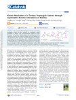 pubs.acs.org/acscatalysis Letter Kinetic Resolution of α‑Tertiary Propargylic Amines through Asymmetric Remote Aminations of Anilines Yongkai Pan,¶ Donglei Wang,¶ Yunrong Chen, DeKun Zhang, Wei Liu, and Xiaoyu Yang* Cite This: ACS Catal. 2021, 11, 8443−8448 Downloaded via INDIAN INST OF TECH KANPUR on January 16, 2025 at 06:51:52 (UTC). See https://pubs.acs.org/sharingguidelines for options on how to legitimately share published articles. ACCESS Metrics & More Read Online Article Recommendations sı Supporting Information * ABSTRACT: A practical method for kinetic resolution of α-tertiary propargylic amines has been achieved via asymmetric remote aminations of anilines with azodicarboxylates enabled by chiral phosphoric acid catalysis. A broad range of aryl and alkyl groups at the α-position, as well as the substituted alkynyl and N-aryl groups were well tolerated in these reactions, providing high kinetic resolution performances (with an s-factor up to 111). In addition, the α-tertiary amines bearing an α-CN group (the Strecker reaction product) could be kinetically resolved with excellent stereoselectivity as well under the same reaction conditions. Fruitful transformations of the chiral amination products and the recovered propargylic amines demonstrated the power of this method in asymmetric synthesis of α-tertiary amines and their derivatives. KEYWORDS: kinetic resolution, propargylic amines, α-tertiary amines, asymmetric remote amination, chiral phosphoric acids E elegant KR methods for amines and their derivatives have been developed via asymmetric acylations,13 hydrogen-transfer reactions,14 and others,15 almost none of them have been successfully applied in KR of α-tertiary amines.15a Not surprisingly, the KR of propargylic amines through chiral thiourea-catalyzed benzoylations13f and using a stoichiometric amount of chiral acetylating agent13i has been developed; however, the scope was also limited to α-secondary propargylic amines (Figure 1d). Recently, our group reported the highly efficient kinetic resolution of 2,2-disubstituted hydroquinolines via chiral phosphoric acid (CPA) catalyzed remote-aminations, which represents the first efficient KR of α,α-disubstituted Nheterocycles.16 With our continuous interest in development of novel asymmetric amination reactions of aryl amine derivatives,17 herein we disclose the first KR of α-tertiary propargylic amines (N-aryl propargylic amines bearing N-containing quaternary stereocenter at the α-position) by utilizing this strategy (Figure 1e). We commenced our study by using racemic N-Ph α-tertiary propargylamines 1a as a model substrate and dibenzyl azodicarboxylate 2 as an amination reagent (Table 1). Under the catalysis of CPA TRIP (A1, 10 mol %), the KR reaction between racemic 1a (1.0 equiv) and azodicarboxylates 2 (1.0 equiv) proceeded smoothly in CHCl3 at 20 °C to provide the nantioenriched propargylic amines are important building blocks in the asymmetric synthesis of numerous chiral pharmaceuticals1 and biologically active natural products.2 Consequently, extensive efforts have been devoted to the development of asymmetric catalytic synthesis of propargylic amines in the last two decades.3 However, asymmetric methods that can generate α-tertiary propargylic amines (with an α-tetrasubstituted stereocenter) were still quite limited. Several elegant asymmetric addition reactions of ketimines (either using alkynyl pronucleophiles4 or alkynyl ketimines5) were developed for asymmetric synthesis of αtertiary propargylic amines. However, the ketimine substrates in these reactions were limited to activated ketimines, which possessed at least one α-electron-withdrawing group (e.g., ester and −CF3 groups) (Figure 1a). In contrast, asymmetric additions of acetylene derived nucleophiles to unactivated ketimines were more challenging, probably because of the low reactivity and difficulties in stereoselectivity control. The Ellman group6 and the Maruoka group7 reported the asymmetric synthesis of α-tertiary propargylamines through chiral auxiliary mediated addition of organolithium reagents to unactivated ketimines, respectively. Although the asymmetric catalytic version of this reaction has been achieved by Shibasaki and co-workers through chiral Cu(I) catalysis, only moderate enantioselectivities were afforded in these reactions (50−78% ee, Figure 1b).8 The alternative approaches for asymmetric synthesis of α-tertiary propargylic amines were enantioselective propargylic aminations, however, whose scope was limited to ethynyl epoxides,9 ethynyl lactones,10 and ethynyl cyclic carbonates11 (Figure 1c). Kinetic resolution (KR) of amines12 is a practical method to produce enantioenriched amines. Although a number of © 2021 American Chemical Society Received: May 24, 2021 Revised: June 21, 2021 Published: June 25, 2021 8443 https://doi.org/10.1021/acscatal.1c02331 ACS Catal. 2021, 11, 8443−8448 ACS Catalysis pubs.acs.org/acscatalysis Letter Table 1. Optimizations of Reaction Conditionsa entry cat sol. time (h) ersb erpb Cc (%) sd 1 2 3 4 5 6 7 8 9 10 11 12 13e 14f 15f,g A1 A2 A3 A4 A5 A6 A7 A8 A8 A8 A8 A8 A8 A8 A8 CHCl3 CHCl3 CHCl3 CHCl3 CHCl3 CHCl3 CHCl3 CHCl3 Tol DCM CCl4 Et2O CHCl3 CHCl3 CHCl3 24 60 48 24 3 24 24 3 8 8 8 24 8 24 72 56:44 53:47 51:49 71:29 75:25 60.5:39.5 60:40 91:9 65:35 71:29 91:9 54.5:45.5 90:10 94:6 84:16 86:14 71.5:28.5 53:47 73.5:26.5 89.5:10.5 81.5:18.5 83:17 90.5:9.5 85.5:14.5 88:12 89:11 84:16 92:8 96:4 96.5:3.5 15 12 25 47 39 25 23 50 30 36 51 11 49 49 42 6.8 2.6 1.1 4.1 14 5.4 5.9 24 7.9 11 20 5.6 29 66 59 Figure 1. Asymmetric synthesis of α-tertiary propargylic amines. a Reactions were performed using 1a (0.1 mmol), 2 (0.1 mmol), CPA catalysts (0.01 mmol), and 3 Å molecular sieves (30 mg) in solvents (1 mL) at the designated temperature. bDetermined by HPLC analysis on a chiral stationary phase. cConversion (C) = ees/(ees + eep). ds = ln[(1 − C)(1 − ees)]/ln[(1 − C)(1 + 