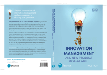 189 × 246 Innovation Management and New Product Development, Development 7th Edition, Edition by Trott provides an evidence-based approach to managing innovation in a wide range of contexts, including manufacturing, services, small to large organisations and the private and public sectors. The book keeps you abreast of the recent developments in the innovation field and how the subject is being discussed in the wider business world through up-to-date examples, illustrations and images in every chapter. PAUL TROTT is Professor of Innovation Management at the Business School, University of Portsmouth, and Visiting Professor of Innovation Management & Entrepreneurship at in many journals including Research Policy, R&D Management, Technovation, International Journal of Innovation Management and Marketing Theory. Pearson, the world’s learning company. Front cover image: Denis Torkhov/istock/Getty Images and People Images/E+/Getty Images Cover designed by Two Associates www.pearson.com/uk CVR_TROTT_7_51523.indd 1 PAUL TROTT Delft University of Technology, Netherlands. His research is widely cited and is published SEVENTH EDITION There are in-depth case studies on key concepts such as social innovation in Parkrun events, water desalination plants in technology-advanced Israel, CSI and genetic fingerprinting, drone technology in pizza delivery, and product innovation by global brands like Apple, Pfizer and 3M. Clear and informed coverage of the management processes of new product development, coupled with a practical orientation of taking you through real-life challenges and dilemmas, makes it an essential textbook for MBA, MSc and advanced undergraduate courses on innovation management, management of technology, new product development and entrepreneurship. INNOVATION MANAGEMENT AND NEW PRODUCT DEVELOPMENT Explore the concept of innovation management and the processes to develop new products SPINE: 17.6 FLAPS: 0 SEVENTH EDITION INNOVATION MANAGEMENT AND NEW PRODUCT DEVELOPMENT PAUL TROTT 12/11/2020 10:46 Innovation Management and New Product Development F01 Innovation Management and New Product Development 51523.indd 1 19/11/2020 17:05 At Pearson, we have a simple mission: to help people make more of their lives through learning. We combine innovative learning technology with trusted content and educational expertise to provide engaging and effective learning experiences that serve people wherever and whenever they are learning. From classroom to boardroom, our curriculum materials, digital learning tools and testing programmes help to educate millions of people worldwide – more than any other private enterprise. Every day our work helps learning flourish, and wherever learning flourishes, so do people. To learn more, please visit us at www.pearson.com/uk F01 Innovation Management and New Product Development 51523.indd 2 19/11/2020 17:05 Innovation Management and New Product Development Seventh Edition Paul Trott Portsmouth Business School Harlow, England • London • New York • Boston • San Francisco • Toronto • Sydney • Dubai • Singapore • Hong Kong Tokyo • Seoul • Taipei • New Delhi • Cape Town • São Paulo • Mexico City • Madrid • Amsterdam • Munich • Paris • Milan F01 Innovation Management and New Product Development 51523.indd 3 19/11/2020 17:05 PEARSON EDUCATION LIMITED KAO Two KAO Park Harlow CM17 9SR United Kingdom Tel: +44 (0)1279 623623 Web: www.pearson.com/uk First published 1998 (print) Second edition published 2002 (print) Third edition published 2005 (print) Fourth edition published 2008 (print) Fifth edition published 2012 (print) Sixth edition published 2017 (print and electronic) Seventh edition published 2021 (print and electronic) © Pearson Professional Limited 1998 (print) © Pearson Education Limited 2002, 2005, 2008, 2012 (print) © Pearson Education Limited 2017, 2021 (print and electronic) The right of Paul Trott to be identified as author of this work has been asserted by him in accordance with the Copyright, Designs and Patents Act 1988. The print publication is protected by copyright. Prior to any prohibited reproduction, storage in a retrieval system, distribution or transmission in any form or by any means, electronic, mechanical, recording or otherwise, permission should be obtained from the publisher or, where applicable, a licence permitting restricted copying in the United Kingdom should be obtained from the Copyright Licensing Agency Ltd, Barnard’s Inn, 86 Fetter Lane, London EC4A 1EN. The ePublication is protected by copyright and must not be copied, reproduced, transferred, distributed, leased, licensed or publicly performed or used in any way except as specifically permitted in writing by the publishers, as allowed under the terms and conditions under which it was purchased, or as strictly permitted by applicable copyright law. Any unauthorised distribution or use of this text may be a direct infringement of the author’s and the publisher’s rights and those responsible may be liable in law accordingly. All trademarks used herein are the property of their respective owners. The use of any trademark in this text does not vest in the author or publisher any trademark ownership rights in such trademarks, nor does the use of such trademarks imply any affiliation with or endorsement of this book by such owners. Pearson Education is not responsible for the content of third-party internet sites. The Financial Times. With a worldwide network of highly respected journalists, The Financial Times provides global business news, insightful opinion and expert analysis of business, finance and politics. With over 500 journalists reporting from 50 countries worldwide, our in-depth coverage of international news is objectively reported and analysed from an independent, global perspective. To find out more, visit www.ft.com/pearsonoffer. ISBN: 978-1-292-25152-3 (print) 978-1-292-25154-7 (PDF) 978-1-292-25156-1 (ePub) British L