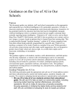 Guidance on the Use of AI in Our Schools Purpose This document guides our students, staff, and school communities on the appropriate and responsible use of artificial intelligence (AI), particularly generative AI tools, in classroom instruction, school management, and systemwide operations. Generative AI has potential benefits for education and risks that must be thoughtfully managed. Artificial intelligence refers to computer systems that are taught to automate tasks normally requiring human intelligence. "Generative AI" refers to tools, such as Bard, Bing Chat, ChatGPT, Mid-Journey, and Dall-E, that can produce new content, such as text, images, or music, based on patterns they've learned from their training data. This is made possible through "machine learning," a subset of AI where computers learn from data without being explicitly programmed for a specific task. Think of it as teaching a computer to be creative based on examples it has seen! While generative AI tools show great promise and often make useful suggestions, they are designed to predict what is right, which isn't always right. As a result, their output can be inaccurate, misleading, or incomplete. Scope This guidance applies to all students, teachers, staff, administrators, and third parties who develop, implement, or interact with AI technologies used in our education system. It covers all AI systems used for education, administration, and operations, including, but not limited to, generative AI models, intelligent tutoring systems, conversational agents, automation software, and analytics tools. This guidance complements existing policies on technology use, data protection, academic integrity, and student support. Guiding Principles for AI Use The following principles guide the appropriate and safe use of AI and address current and future educational goals, teacher and student agency, academic integrity, and security. We commit to adopting internal procedures to operationalize each principle. 1. We use AI to help all of our students achieve their educational goals. We will use AI to help us reach our community’s goals, including improving student learning, teacher effectiveness, and school operations. We aim to make AI resources universally accessible, focusing especially on bridging the digital divide among students and staff. We are committed to evaluating AI tools for biases and ethical concerns, ensuring they effectively serve our diverse educational community. 2. We reaffirm adherence to existing policies and regulations. AI is one of many technologies used in our schools, and its use will align with existing regulations to protect student privacy, ensure accessibility to those with disabilities, and protect against harmful content. We will not share personally identifiable information with consumer-based AI systems. We will thoroughly evaluate existing and future technologies and address any gaps in compliance that might arise. 3. We educate our staff and students about AI. Promoting AI literacy among students and staff is central to addressing the risks of AI use and teaches critical skills for students’ futures. Students and staff will be given support to develop their AI literacy, which includes how to use AI, when to use it, and how it works, including foundational concepts of computer science and other disciplines. We will support teachers in adapting instruction in a context where some or all students have access to generative AI tools. 4. We explore the opportunities of AI and address the risks. In continuing to guide our community, we will work to realize the benefits of AI in education, address risks associated with using AI, and evaluate if and when to use AI tools, paying special attention to misinformation and bias. 5. We use AI to advance academic integrity. Honesty, trust, fairness, respect, and responsibility continue to be expectations for both students and teachers. Students should be truthful in giving credit to sources and tools and honest in presenting work that is genuinely their own for evaluation and feedback. 6. We maintain student and teacher agency when using AI tools. AI tools can provide recommendations or enhance decision-making, but staff and students will serve as “critical consumers” of AI and lead any organizational and academic decisions and changes. People will be responsible and accountable for pedagogical or decision-making processes where AI systems may inform decision-making. 7. We commit to auditing, monitoring, and evaluating our school’s use of AI. Understanding that AI and technologies are evolving rapidly, we commit to frequent and regular reviews and updates of our policies, procedures, and practices. Responsible Use of AI Tools Our school system recognizes that responsible uses of AI will vary depending on the context, such as a classroom activity or assignment. Teachers will clarify if, when, and how AI tools will be used, with input from students and families, while the school system will ensure compliance with applicable laws and regulations regarding data security and privacy. Appropriate AI use should be guided by the specific parameters and objectives defined for an activity. Below are some examples of responsible uses that serve educational goals. ✍️You may want to specifically reference your existing technology use, academic integrity, and student support policies here. ✍️You may want to adjust the paragraph above to denote who will be responsible for setting boundaries of acceptable use in classes and assignments based on your schools’ norms. Student Learning Aiding Creativity: Students can harness generative AI to spark creativity across diverse subjects, including writing, visual arts, and music composition. o Collaboration: Generative AI tools can partner with students in group projects by contributing concepts, supplying research support, and identifying relationships between varied information. o Communication: AI can offer students r