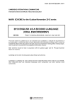 www.dynamicpapers.com CAMBRIDGE INTERNATIONAL EXAMINATIONS International General Certificate of Secondary Education MARK SCHEME for the October/November 2013 series 0510 ENGLISH AS A SECOND LANGUAGE (ORAL ENDORSEMENT) 0510/42 Paper 4 Listening (Extended), maximum raw mark 36 This mark scheme is published as an aid to teachers and candidates, to indicate the requirements of the examination. It shows the basis on which Examiners were instructed to award marks. It does not indicate the details of the discussions that took place at an Examiners’ meeting before marking began, which would have considered the acceptability of alternative answers. Mark schemes should be read in conjunction with the question paper and the Principal Examiner Report for Teachers. Cambridge will not enter into discussions about these mark schemes. Cambridge is publishing the mark schemes for the October/November 2013 series for most IGCSE, GCE Advanced Level and Advanced Subsidiary Level components and some Ordinary Level components. www.dynamicpapers.com Page 2 Mark Scheme IGCSE – October/November 2013 Syllabus 0510 Paper 42 Questions 1–6 You will need to award a zero, 1, 2 or NR (no response). Ignore any extra information given unless it contradicts the correct answer, in which case no mark should be awarded. 1 at once/now/immediately [1] 2 strong wind(s) [1] 3 money [1] college [1] 4 9 [1] 5 no goal(s)/ no score(s)/ 0-0/zero-zero/zero goal(s) [1] 6 stop exercise(s) [1] painkiller(s) [1] [Total: 8] © Cambridge International Examinations 2013 www.dynamicpapers.com Page 3 Mark Scheme IGCSE – October/November 2013 Syllabus 0510 Paper 42 Question 7: A new business You will need to award zero, 1 or NR (no response – only award this where no attempt at all has been made to answer any part of an item). Ignore any extra information given unless it contradicts the correct answer, in which case no mark should be awarded. The response must be grammatically correct. (i) 6 MONTHS [1] (ii) COFFEE and BURGERS [1] (iii) SHOULDER and WOOD(EN) [1] (iv) MANAGES/(IS) MANAGING and PLACE(S) [1] (v) ACTIVITY and EXPLORATION/EXPEDITION [1] (vi) 25% and 30 000 [1] (vii) TRIPS and ON A PART TIME BASIS/PART TIME/HELPING/SELLING [1] [Total: 7] © Cambridge International Examinations 2013 www.dynamicpapers.com Page 4 Mark Scheme IGCSE – October/November 2013 Syllabus 0510 Paper 42 Question 8: Man living on a boat You will need to award zero, 1 or NR (no response – only award this where no attempt at all has been made to answer any part of the question). Ignore any extra information given unless it contradicts the correct answer, in which case no mark should be awarded. The response must be grammatically correct. (i) 5½/FIVE AND (A) HALF and SELLING/HE SOLD [1] (ii) MOTOR CRUISER [1] (iii) ENGINE and 34 [1] (iv) SATELLITE and DIGITAL [1] (v) AIR CONDITIONING/AIR CONDITIONER/AIR CON/A-C [1] (vi) WATER and FUEL. [1] (vii) RESTAURANTS/(OTHER) PLACES TO RELAX and 1681 [1] (viii) SPECIAL/BEAUTIFUL and LAKE/RESERVOIR [1] (ix) CERTIFICATE and TEST [1] [Total: 9] © Cambridge International Examinations 2013 www.dynamicpapers.com Page 5 Mark Scheme IGCSE – October/November 2013 Syllabus 0510 Paper 42 Question 9: Manager of a library You will need to award zero, 1 or NR (no response – only award this where no attempt at all has been made to answer any part of the question) Ignore any extra information given unless it contradicts the correct answer, in which case no mark should be awarded (a) (private) footpaths AND tunnel [1] (b) (books) have to be read here/(books) have to be read in the library/no lending is allowed. [1] (c) (it) has to store a copy of every book [1] (d) (salt) mine AND (conditions) preserve books/(conditions) protect books [1] (e) (by)size [1] (f) just couldn’t destroy any book(s)/couldn’t replace books with digital copies/ [1] do not like the idea [Total: 6] © Cambridge International Examinations 2013 www.dynamicpapers.com Page 6 Mark Scheme IGCSE – October/November 2013 Syllabus 0510 Paper 42 Question 10: Unusual Artists agency You will need to award zero, 1, 2 or NR (no response – only award this where no attempt at all has been made to answer any part of the question) Ignore any extra information given unless it contradicts the correct answer, in which case no mark should be awarded (a) [1] art history AND ANY ONE OF art/drawing/painting (b) (c) his wife suggested it/he was bored [1] (it was) excellent/very accurate (drawing) [1] took a degree in art/ [1] stopped working as an engineer OR quit his job/ became a professional artist OR became a successful artist (d) scribe/made notes in court/ [1] worked in a court of law (e) speed of sketching AND to get work in courts [1] [Total: 6] © Cambridge International Examinations 2013 www.dynamicpapers.com Page 7 Mark Scheme IGCSE – October/November 2013 Syllabus 0510 Paper 42 TAPESCRIPT IGCSE English as a Second Language Listening Extended November 2013 TRACK 1 R1 University of Cambridge International Examinations International General Certificate of Secondary Education November examination session 2013 English as a Second Language Extended tier – Listening Comprehension Welcome to the exam. In a moment, your teacher is going to give out the question papers. When you get your paper, fill in your name, Centre number and candidate number on the front page. Do not talk to anyone during the test. If you would like the recording to be louder or quieter, tell your teacher NOW. The recording will not be stopped while you are doing the test. Teacher: please give out the question papers, and when all the candidates are ready to start the test, please turn the recording back on. [BEEP] © Cambridge International Examinations 2013 www.dynamicpapers.com Page 8 Mark Scheme IGCSE – October/November 2013 Syllabus 0510 Paper 42 TRACK 2 Now you are all ready, here is the test. Look at Questions 1 to 6. For each question you will hear the situation described as it is on