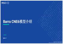 Barra CNE6模型介绍 于栋华 2021.7 Information Classification: GENERAL © 2021 MSCI Inc. All rights reserved.1 Please refer to the disclaimer at the end of this document. 新模型亮点 • • 具有规模和流动性筛选的更具代表性的模型估计范围ESTU 3个模型版本 – 长期模型 (使用较慢的风格因子) : Responsive, Stable – 交易版本 (同时有较慢和较快的风格因子) : Trading • 长期模型和交易模型都有32个行业因子 – 化工行业进行拆分,分为商品化工和非商品化工 – 将工业综合与贸易和分销两个 • 16个慢速风格和4个快速风格 – 9个新增SES因子: ▪ 慢速: Long-term reversal, Profitability, Earnings Quality, Dividend Yield, Investment Quality ▪ 快速: Analyst Sentiment, Industry Momentum, Seasonality, Short-term Reversal – 增加Earnings Variability作为风险因子 • PIT基本面数据 – 防止前视偏差; – 基本面数据的每日更新; 2 Information Classification: GENERAL CNE6的因子结构 Volatility Beta Residual Volatility Yield Quality Momentum Value Size Dividend Yield Leverage Momentum Book-toPrice Size Profitability Short-Term Reversal Earnings Yield Mid-Cap Earnings Variability Industry Momentum Long-Term Reversal Earnings Quality Seasonality Investment Quality 红色标记的因子是长期模型中新增的因子 蓝色标记的因子是交易模型中新增的因子 Information Classification: GENERAL Growth Liquidity Sentiment Growth Liquidity Analysts Sentiment Analyst Sentiment • 逻辑:反映分析师预测变动对股价的影响 • 方向:正的暴露度表明近期分析师预测是偏正面的 • 风格构成: – Ratings Revision Ratio – Change in Analyst Predicted Earnings-To-Price – Change in Analyst Predicted Earnings per Share Ratings Revision Ratio This descriptor is first computed as the ratio of the number of earnings up-revisions minus the number of earnings down-revisions to the total number of earnings forecasts used to compute the earnings consensus. This is then computed as the weighted moving in the last three months. Change in Analyst-Predicted Earnings-to-Price This is descriptor is first computed as the monthly relative changes of forecast Earnings-to-Price ratio. It is then computed as the weighted moving average in the last four months. Change in Analyst-Predicted Earnings per Share This is descriptor is first computed as the monthly relative changes of forecast Earnings per Share. It is then computed as the weighted moving average in the last four months. 4 Information Classification: GENERAL Dividend yield • 逻辑:预测和历史股息收益率导致的个股涨跌差异 • 方向:正的暴露度表明有较高的股息收益率 • 风格构成: Dividend-to-Price Computed by dividing the trailing 12-month dividend per share by the price at the last month end. Analyst-Predicted Dividend-to-Price Computed by dividing the 12-month forward-looking dividend per share (DPS) by the current price. 5 Information Classification: GENERAL Earning quality • 逻辑:个股净利润中应计部分的影响。 • 方向:正的暴露度表明较低的应计部分。 • 风格构成: Accruals - Balance Sheet Version The balance-sheet-based accruals, 𝐴𝐶𝐶𝑅_𝐵𝑆, is first computed from (i) consecutive changes in balance sheet items and (ii) depreciation. The descriptor is then computed as the negative 𝐴𝐶𝐶𝑅_𝐵𝑆 normalized by total assets: 𝐴𝐵𝑆 = −𝐴𝐶𝐶𝑅_𝐵𝑆/𝑇𝐴 Thus, it goes long companies with low accruals. Accruals - Cashflow Statement Version The cash-flow-statement-based operating accruals, 𝐴𝐶𝐶𝑅_𝐶𝐹, is first computed from (i) items from the most recent cash flow statement and (ii) depreciation. The descriptor is then computed as the negative 𝐴𝐶𝐶𝑅_𝐶𝐹 normalized by total assets: 𝐴𝐶𝐹 = −𝐴𝐶𝐶𝑅_𝐶𝐹/𝑇𝐴 Thus, it goes long companies with low accruals. 6 Information Classification: GENERAL Earning variability • 逻辑:利润、收入、现金流和分析师预测EP的波动性 • 方向:正的暴露度表明较高的不确定性 • 风格构成: Variability in Sales Computed by dividing the standard deviation of the annual sales of the last five fiscal years by the average annual sales. Variability in Earnings Computed by dividing the standard deviation of the annual earnings of the last five fiscal years by the average annual earnings. Variability in Cash-flows Computed by dividing the standard deviation of the annual cash flows of the last five fiscal years by the average annual cash flow. Standard deviation of Analyst Forecast Earnings-to-Price Computed by dividing the standard deviation of the 12-month forward-looking earnings per share estimates by the current price. 7 Information Classification: GENERAL Earnings Yield • 逻辑:PE等估值差异导致的收益率差异,价值因子 • 方向:正的暴露度表明估值较低。 • 风格构成: Cash-Earnings-to-Price Computed by dividing the trailing 12-month cash earnings by the current market capitalization. Earnings-to-Price Computed by dividing the trailing 12-month earnings by the current market capitalization. Enterprise Multiple (EBIT to EV) Computed by dividing the earnings before interest and taxes (EBIT) from the last fiscal year by the current enterprise value (EV). Analyst-Predicted Earnings-to-Price Computed by dividing the 12-month forward-looking earnings by the current market capitalization. 8 Information Classification: GENERAL Industry Momentum • 逻辑:行业收益差异导致的个股表现差异 • 方向:正的暴露度表明较高的行业动量 • 风格构成: Industry Momentum The 126-day Relative Strength for each stock is first computed with a 20-day half-life. The nonlagged descriptor for each stock is then computed as the square-root-capitalization-weighted average of the 126-day Relative Strength of all its