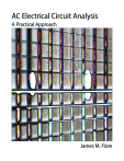 AC Electrical Circuit Analysis A Practical Approach James M. Fiore 2 AC Electrical Circuit Analysis A Practical Approach by James M. Fiore Version 1.1.7, 13 October 2022 3 This AC Electrical Circuit Analysis, by James M. Fiore is copyrighted under the terms of a Creative Commons license: This work is freely redistributable for non-commercial use, share-alike with attribution Device data sheets and other product information are copyright by their respective owners and have been obtained through publicly accessible manufacturer's web sites. Published by James M. Fiore via dissidents ISBN13: 979-8605022282 For more information or feedback, contact: James Fiore, Professor Electrical Engineering Technology Mohawk Valley Community College 1101 Sherman Drive Utica, NY 13501 jfiore@mvcc.edu oer@jimfiore.org For the latest revisions, related titles, and links to low cost print versions, go to: www.mvcc.edu/jfiore or my mirror sites www.dissidents.com and www.jimfiore.org YouTube Channel: Electronics with Professor Fiore Cover art, Chapman's Contribution Redux, by the author 4 Introduction Welcome to the AC Electrical Circuit Analysis, an open educational resource (OER). The goal of this text is to introduce the theory and practical application of analysis of AC electrical circuits. It assumes familiarity with DC circuit analysis. If you have not studied DC circuit analysis, it is strongly recommended that you read the companion OER text, DC Electrical Circuit Analysis before continuing. Both texts are offered free of charge under a Creative Commons non-commercial, share-alike with attribution license. For your convenience, along with the free pdf and odt files, print copies are available at a very modest charge. Check my web sites for links. This text is based on the earlier Workbook for AC Electrical Circuits, which it replaces. The original expository text has been greatly expanded and includes many examples along with computer simulations. For the convenience of those who used the Workbook, many of the problem sets are the same, with some re-ordering depending on the chapter. If you are already familiar with DC Electrical Circuit Analysis, the format of this title is similar. This text picks up where the DC text leaves off; beginning with AC concepts such as sinusoidal waveforms, basic Fourier decomposition of complex waveforms, complex numbers and the like. Also, reactance and impedance are introduced along with phasor diagrams. Chapters on series, parallel and series-parallel RLC circuits commence. Following these, network theorems along with nodal and mesh analysis are discussed for the AC case. The text completes with chapters on AC power, resonance, and introductions to polyphase systems and magnetic circuits. Each chapter begins with a set of learning objectives and concludes with practice exercises that are generally divided into four major types: analysis, design, challenge and simulation. Many SPICE-based circuit simulators are available, both free and commercial, that can be used with this text. The answers to most odd-numbered exercises can be found in the Appendix. A table of standard resistor sizes is also in the Appendix, which is useful for real-world design problems. If you have any questions regarding this workbook, or are interested in contributing to the project, do not hesitate to contact me. This text is part of a series of OER titles in the areas of electricity, electronics, audio and computer programming. It includes three other textbooks covering semiconductor devices, operational amplifiers, and embedded programming using the C language with the Arduino platform. There is a text covering DC electrical circuits similar to this one, and also seven laboratory manuals; one for each of the five texts plus individual titles covering computer programming using the Python language, and the science of sound. The most recent versions of all of my OER texts and manuals may be found at my MVCC web site as well as my mirror site: www.dissidents.com This text was created using several free and open software applications including Open Office, Dia, SciDAVis, and XnView. Special thanks to the following individuals for their efforts in reviewing and proofreading the DC and AC Electrical Circuit Analysis texts: Glenn Ballard, John Markham, João Nuno Carvalho, Mark Steffka and Jim Noon. 5 For the Have-nots and the Has-beens “Well, the people, I would say. There is no patent. Could you patent the sun?” — Jonas Salk, inventor of the polio vaccine, when asked who owns the patent to it. 6 Table of Contents Chapter 1: Fundamentals . . . . . . . 10 1.0 Chapter Objectives . 1.1 Introduction . . 1.2 Sinusoidal Waveforms 1.3 Basic Fourier Analysis . 1.4 Complex Numbers . 1.5 Reactance and Impedance 1.6 Phasor Diagrams . Summary . . Exercises . . . . . . . . . . . . . . . . . . . . . . . . . . . . . . . . . . . . . . . . . . . . . . . . . . . . . . . . 10 10 11 25 29 31 37 38 39 Chapter 2: Series RLC Circuits . . . . . . 44 2.0 Chapter Objectives . . 2.1 Introduction . . . 2.2 The Series Connection . 2.3 Series Impedance . . 2.4 Series Circuit Analysis. . 2.5 Concerning Practical Inductors Summary . . . Exercises . . . . . . . . . . . . . . . . . . . . . . . . . . . . . . . . . . . . . . . . . . . . . . . . . . . 44 44 44 45 48 61 63 64 . . . . . 80 . . . . . . . . . . . . . . . . . . . . . . . . . . . . . . . . . . 80 80 81 81 85 100 101 . . . . 110 . . . . . . . . . . . . . . . . . . . . . . . . . . . . 110 110 110 111 114 132 133 . . . . . . . . . Chapter 3: Parallel RLC Circuits 3.0 Chapter Objectives . 3.1 Introduction . . 3.2 The Parallel Connection 3.3 Parallel Impedance . 3.4 Parallel Circuit Analysis Summary . . Exercises . . . . . . . . . . . . . . . . Chapter 4: Series-Parallel RLC Circuits 4.0 Chapter Objectives . . 4.1 Introduction . . . 4.3 The Series-Parallel Connection 4.4 Series-Parallel Impedance . 4.5 Series-Parallel Circuit Analysis . Summary . . . Exercises . . . 7 . . 