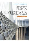 YOUNG • FREEDMAN SEARS • ZEMANSKY Física universitaria CON FÍSICA MODERNA volumen 2 Decimosegunda edición FACTORES DE CONVERSIÓN DE UNIDADES Longitud 1 m 5 100 cm 5 1000 mm 5 106 mm 5 109 nm 1 km 5 1000 m 5 0.6214 mi 1 m 5 3.281 ft 5 39.37 in 1 cm 5 0.3937 in 1 in. 5 2.540 cm 1 ft 5 30.48 cm 1 yd 5 91.44 cm 1 mi 5 5280 ft 5 1.609 km 1 Å 5 10210 m 5 1028 cm 5 1021 nm 1 milla náutica 5 6080 ft 1 año luz 5 9.461 3 1015 m Área 1 cm2 5 0.155 in2 1 m2 5 104 cm2 5 10.76 ft2 1 in2 5 6.452 cm2 1 ft 5 144 in2 5 0.0929 m2 Volumen 1 litro 5 1000 cm3 5 1023 m3 5 0.03531 ft3 5 61.02 in3 1 ft3 5 0.02832 m3 5 28.32 litros 5 7.477 galones 1 galón 5 3.788 litros Tiempo 1 min 5 60 s 1 h 5 3600 s 1 d 5 86,400 s 1 año 5 365.24 d 5 3.156 3 107 s Ángulo 1 rad 5 57.30° 5 180°/p 1° 5 0.01745 rad 5 p/180 rad 1 revolución 5 360° 5 2p rad 1 rev/min (rpm) 5 0.1047 rad/s Rapidez 1 m/s 5 3.281 ft/s 1 ft/s 5 0.3048 m/s 1 mi/min 5 60 mi/h 5 88 ft/s 1 km/h 5 0.2778 m/s 5 0.6214 mi/h 1 mi/h 5 1.466 ft/s 5 0.4470 m/s 5 1.609 km/h 1 furlong/14 días 5 1.662 3 1024 m/s Aceleración 1 m/s2 5 100 cm/s2 5 3.281 ft/s2 1 cm/s2 5 0.01 m/s2 5 0.03281 ft/s2 1 ft/s2 5 0.3048 m/s2 5 30.48 cm/s2 1 mi/h # s 5 1.467 ft/s2 Masa 1 kg 5 103 g 5 0.0685 slug 1 g 5 6.85 3 1025 slug 1 slug 5 14.59 kg 1 u 5 1.661 3 10227 kg 1 kg tiene un peso de 2.205 lb cuando g 5 9.80 m>s2 Fuerza 1 N 5 105 dinas 5 0.2248 lb 1 lb 5 4.448 N 5 4.448 3 105 dinas Presión 1 Pa 5 1 N/m2 5 1.450 3 1024lb/in2 5 0.209 lb/ft2 1 bar 5 105 Pa 1 lb/in2 5 6895 Pa 1 lb/ft2 5 47.88 Pa 1 atm 5 1.013 3 105 Pa 5 1.013 bar 5 14.7 lb/in2 5 2117 lb/ft2 1 mm Hg 5 1 torr 5 133.3 Pa Energía 1 J 5 107ergs 5 0.239 cal 1 cal 5 4.186 J (con base en caloría de 15°) 1 ft # lb 5 1.356 J 1 Btu 5 1055 J 5 252 cal 5 778 ft # lb 1 eV 5 1.602 3 10219 J 1 kWh 5 3.600 3 106 J Equivalencia masa-energía 1 kg 4 8.988 3 1016 J 1 u 4 931.5 MeV 1 eV 4 1.074 3 1029 u Potencia 1 W 5 1 J/s 1 hp 5 746 W 5 550 ft # lb/s 1 Btu/h 5 0.293 W CONSTANTES NUMÉRICAS Constantes físicas fundamentales* Nombre Símbolo Valor Rapidez de la luz Magnitud de carga del electrón Constante gravitacional Constante de Planck Constante de Boltzmann Número de Avogadro Constante de los gases Masa del electrón Masa del protón Masa del neutrón Permeabilidad del espacio libre Permitividad del espacio libre c e G h k NA R me mp mn m0 P0 5 1/m 0c 2 1/4pP0 2.99792458 3 108 m/s 1.60217653(14) 3 10219 C 6.6742(10) 3 10211 N # m2 /kg2 6.6260693(11) 3 10234 J # s 1.3806505(24) 3 10223 J/K 6.0221415(10) 3 1023 moléculas/mol 8.314472(15) J/mol # K 9.1093826(16) 3 10231 kg 1.67262171(29) 3 10227 kg 1.67492728(29) 3 10227 kg 4p 3 1027 Wb/A # m 8.854187817 c 3 10212 C2/N # m2 8.987551787 c 3 109 N # m2 /C2 Otras constante útiles Equivalente mecánico del calor Presión atmosférica estándar Cero absoluto Electrón volt Unidad de masa atómica Energía del electrón en reposo Volumen del gas ideal (0 °C y 1 atm) Aceleración debida a la gravedad (estándar) 1 atm 0K 1 eV 1u mec 2 g 4.186 J/cal (15° caloría ) 1.01325 3 105 Pa 2273.15 °C 1.60217653(14) 3 10219 J 1.66053886(28) 3 10227 kg 0.510998918(44) MeV 22.413996(39) litros/mol 9.80665 m/s2 *Fuente: National Institute of Standards and Technology (http://physics.nist.gov/cuu). Los números entre paréntesis indican incertidumbre en los dígitos finales del número principal; por ejemplo, el número 1.6454(21) significa 1.6454 6 0.0021. Los valores que no indican incertidumbre son exactos. Datos astronómicos† Cuerpo Masa (kg) Radio (m) Radio de la órbita (m) Periodo de la órbita Sol Luna Mercurio Venus Tierra Marte Júpiter Saturno Urano Neptuno Plutón‡ 1.99 3 1030 7.35 3 1022 3.30 3 1023 4.87 3 1024 5.97 3 1024 6.42 3 1023 1.90 3 1027 5.68 3 1026 8.68 3 1025 1.02 3 1026 1.31 3 1022 6.96 3 108 1.74 3 106 2.44 3 106 6.05 3 106 6.38 3 106 3.40 3 106 6.91 3 107 6.03 3 107 2.56 3 107 2.48 3 107 1.15 3 106 — 3.84 3 108 5.79 3 1010 1.08 3 1011 1.50 3 1011 2.28 3 1011 7.78 3 1011 1.43 3 1012 2.87 3 1012 4.50 3 1012 5.91 3 1012 — 27.3 d 88.0 d 224.7 d 365.3 d 687.0 d 11.86 y 29.45 y 84.02 y 164.8 y 247.9 y † Fuente: NASA Jet Propulsion Laboratory Solar System Dynamics Group (http://ssd.jlp.nasa.gov) y P. Kenneth Seidelmann, ed., Explanatory Supplement to the Astronomical Almanac (University Science Books, Mill Valley, CA, 1992), pp. 704-706. Para cada cuerpo, “radio” es el radio en su ecuador y “radio de la órbita” es la distancia media desde el Sol (en el caso de los planetas) o desde la Tierra (en el caso de la Luna). ‡ En agosto de 2006 la Unión Astronómica Internacional reclasificó a Plutón y a otros pequeños objetos que giran en órbita alrededor del Sol como “planetas enanos”. SEARS • ZEMANSKY física unIverSitaria CON FÍSICA MODERNA Volumen 2 ESTRATEGIAS PARA RESOLVER PROBLEMAS ESTRATEGIA PARA RESOLVER PROBLEMAS PÁGINA ESTRATEGIA PARA RESOLVER PROBLEMAS PÁGINA 21.1 Ley de Coulomb 719 31.1 Circuitos de corriente alterna 1073 21.2 Cálculos de campo eléctrico 728 32.1 Ondas electromagnéticas 1103 22.1 Ley de Gauss 762 33.1 Reflexión y refracción 1128 23.1 Cálculo del potencial eléctrico 794 33.2 Polarización lineal 1138 24.1 Capacitancia equivalente 822 34.1 Formación de imágenes con espejos 1168 24.2 Dieléctricos 831 34.2 Formación de imágenes por lentes delgadas 1180 25.1 Potencia y energía en los circuitos 865 35.1 Interferencia en películas delgadas 1221 26.1 Resistores en serie y en paralelo 884 37.1 Dilatación del tiempo 1276 26.2 Reglas de Kirchhoff 888 37.2 Contracción de la longitud 1281 27.1 Fuerzas magnéticas 921 37.3 Transformaciones de Lorentz 1286 27.2 Movimiento en campos magnéticos 927 38.1 Fotones 1312 28.1 Cálculo de campos magnéticos 961 39.1 Partículas y ondas 1351 28.2 Ley de Ampère 973 41.1 Estructura atómica 1405 29.1 Ley de Faraday 999 43.1 Propiedades nucleares 1474 30.1 Inductores en circuitos 1041 ACTIVIDADES ACTIVPHYSICS ONLINETM ONLINE www.masteringphysics.com 10.1 11.1 11.2