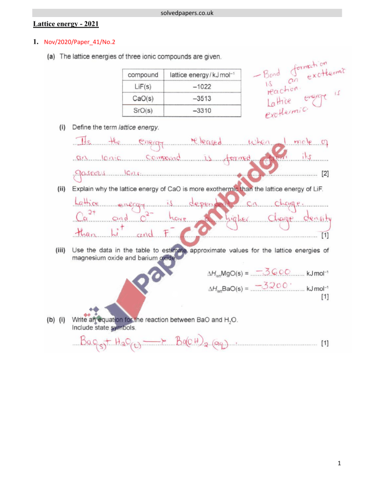 solvedpapers.co.uk Lattice energy - 2021 1. Nov/2020/Paper_41/No.2 1 solvedpapers.co.uk 2 solvedpapers.co.uk 3 solvedpapers.co.uk 2. Nov/2020/Paper_42/No.3 4 solvedpapers.co.uk 5 solvedpapers.co.uk 3. June/2020/Paper_42/No.7b,7c 6 solvedpapers.co.uk 7