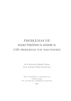 PROBLEMAS DE ELECTRÓNICA BÁSICA (130 problemas con soluciones) Juan Antonio Jiménez Tejada Juan Antonio López Villanueva Dept. Electrónica y Tecnologı́a de Computadores Fac. de Ciencias. Universidad de granada 2008 PROBLEMAS DE ELECTRÓNICA BÁSICA Juan Antonio Jiménez Tejada, Juan Antonio López Villanueva Departamento de Electrónica y Tecnologı́a de Computadores. Facultad de Ciencias Universidad de Granada Granada España ISBN: 978-84-691-4086-4 Dep. Legal: GR-1411-2008 Resumen En este texto se presenta una colección de problemas con soluciones sobre diferentes temas de Electrónica Básica. Gran parte de estos problemas han sido propuestos en exámenes de asignaturas de iniciación a la Electrónica en diferentes titulaciones de la Universidad de Granada. El objetivo de este texto es ayudar a los estudiantes a auto-evaluarse. En este sentido, en algunos problemas solo se da una sugerencia y la solución numérica, sin detallar el cálculo. Si a pesar de tal sugerencia, el estudiante no consigue resolver el problema el consejo de los autores es que repase los conocimientos teóricos de la materia a la que corresponde el problema. De todas formas, el texto se ha compuesto para ser estudiado secuencialmente, de manera que la dificultad que pueda encontrar el estudiante en un problema concreto puede ya haber sido tratada con más detalle en un problema anterior. Se han incluido al principio del texto unos apartados dedicados a Teorı́a de Circuitos. Los problemas de esta parte, también propuestos en exámenes, tienen como objeto preparar al estudiante para abordar los circuitos eléctricos equivalentes que se obtendrán cuando se sustituyan los dispositivos electrónicos por sus modelos de circuito. A veces, como resultado de tales sustituciones, pueden quedar elementos superfluos (elementos pasivos en paralelo con una fuente de tensión, o en serie con una fuente de corriente, por poner ejemplos). Por esta razón, se ha insistido en circuitos con tal peculiaridad, ya que la experiencia docente nos ha demostrado que suelen resultar particularmente confusos para los alumnos. Para adquirir un mayor conocimiento teórico sobre este tipo de problemas se puede consultar algún libro de Teorı́a de Circuitos.1 1 ”Fundamentos de Teorı́a de Circuitos para Electrónica”, Juan A. López Villanueva, Juan A. Jiménez Tejada, 2008. http://hdl.handle.net/10481/14700 III Summary This book contains a collection of problems with solutions related to basic aspects of Electronics. Many of these problems have been proposed in exams of different courses on Fundamentals of Electronics at the Universidad de Granada, Spain. The objective of this book is to help students to evaluate themselves. In that sense, only minor suggestions and the solution are given in some problems, and no detailed mathematical development appears. Nevertheless, if such suggestions are scarce in order to get to the final solution, authors advise students to study once more the theoretical contents related to the problem. The text has been written in order to be studied in a sequential way. This means that a difficulty found by a student in a particular problem may have been solved in a previous one. At the beginning of the book, there are some chapters devoted to Circuit Theory. Their problems, proposed in exams as well, aim to prepare the student for the many equivalent electrical circuits that appear in any electronic circuit. As a result of the transformation of an electronic device into its electrical model, some elements can be considered superfluous (passive elements in parallel with a voltage source, or in series with a current source). The text insists on circuits with such features because experience shows that they are difficult to understand. Another reference related Circuit Theory can be found in a book by the same authors.2 2 ”Fundamentos de Teorı́a de Circuitos para Electrónica”, Juan A. López Villanueva, Juan A. Jiménez Tejada, 2008. http://hdl.handle.net/10481/14700 V Índice general 1. Circuitos eléctricos en condiciones de corriente continua. 1 2. Respuesta transitoria. 7 3. Circuitos eléctricos en condiciones de corriente alterna. 13 4. Dominio de la transformada de Laplace. Función de transferencia. Filtros. 29 5. Semiconductores. 39 6. Circuitos con diodos. 43 7. Polarización de transistores. 61 8. Familias lógicas. 79 9. El transistor como amplificador. 93 10.El amplificador operacional. Aplicaciones. 107 11.Convertidores A/D. 129 Anexo 132 I. Transformada de Laplace. 133 VII 1 Circuitos eléctricos en condiciones de corriente continua. 1 2 1. Circuitos eléctricos en condiciones de corriente continua. Problema 1.1 Obtenga el circuito equivalente de Thèvenin (VT , RT ) de la red de la figura vista desde A y B. Problema 1.1 Solución: Como la fuente de tensión es continua, el condensador se comporta como un circuito abierto. Además, la resistencia colocada en paralelo con la fuente de tensión no afecta para nada al valor de la tensión entre A y B. El circuito se reduce, por tanto, a un divisor de tensión. VAB = V /2, RT = R k R = R/2, es decir, VT = 2.5 V y RT = 500 Ω Problema 1.2 En la figura se encierra entre lı́neas de trazos el circuito equivalente de una fuente de tensión (valor nominal 12 V y resistencia interna de 2 Ω) conectada a una resistencia de 5 kΩ. Si por error conectamos en paralelo a los extremos de la resistencia un amperı́metro que tiene 1.5 Ω de resistencia interna (no dibujada en la figura), calcule la corriente que circuları́a por el amperı́metro. ¿Qué ocurrirı́a si este tiene un fusible de protección de 0.2 A en serie con su resistencia interna? Problema 1.2 Solución: La resistencia interna del amperı́metro queda en paralelo con la de 5 kΩ, dando lugar a una resistencia equivalente de 1.4996 Ω. La tensión que soporta el amperı́metro es, por tanto 12 V 1.4996Ω = 5.142 V. 1.4996Ω + 2Ω 3 En consecuencia, la corriente que circul