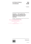 INTERNATIONAL STANDARD ISO 1680 Second edition 2013-12-15 Acoustics — Test code for the measurement of airborne noise emitted by rotating electrical machines Acoustique — Code d’essai pour le mesurage du bruit aérien émis par les machines électriques tournantes iTeh STANDARD PREVIEW (standards.iteh.ai) ISO 1680:2013 https://standards.iteh.ai/catalog/standards/sist/dec0f440-cc71-4278-aba8372c843d5da5/iso-1680-2013 Reference number ISO 1680:2013(E) © ISO 2013 ISO 1680:2013(E) iTeh STANDARD PREVIEW (standards.iteh.ai) ISO 1680:2013 https://standards.iteh.ai/catalog/standards/sist/dec0f440-cc71-4278-aba8372c843d5da5/iso-1680-2013 COPYRIGHT PROTECTED DOCUMENT © ISO 2013 All rights reserved. Unless otherwise specified, no part of this publication may be reproduced or utilized otherwise in any form or by any means, electronic or mechanical, including photocopying, or posting on the internet or an intranet, without prior written permission. Permission can be requested from either ISO at the address below or ISO’s member body in the country of the requester. ISO copyright office Case postale 56 • CH-1211 Geneva 20 Tel. + 41 22 749 01 11 Fax + 41 22 749 09 47 E-mail copyright@iso.org Web www.iso.org Published in Switzerland ii © ISO 2013 – All rights reserved ISO 1680:2013(E) Contents Page Foreword......................................................................................................................................................................................................................................... iv 1 2 3 4 5 6 7 8 9 10 11 12 13 Scope.................................................................................................................................................................................................................................. 1 Normative references....................................................................................................................................................................................... 1 Terms and definitions...................................................................................................................................................................................... 2 Description of machinery family.......................................................................................................................................................... 4 Sound power determination..................................................................................................................................................................... 5 5.1 General............................................................................................................................................................................................................ 5 5.2 Guidelines for the selection of the most appropriate basic standard....................................................... 5 5.3 Additional requirements................................................................................................................................................................. 5 Installation and mounting conditions............................................................................................................................................. 8 6.1 Mounting of the machine................................................................................................................................................................ 8 6.2 Auxiliary equipment and loaded machines..................................................................................................................... 9 Operating conditions........................................................................................................................................................................................ 9 7.1 General............................................................................................................................................................................................................ 9 7.2 Load................................................................................................................................................................................................................ 10 7.3 Variable speed devices................................................................................................................................................................... 10 Measurement uncertainty........................................................................................................................................................................10 Determination of the emission sound pressure level..................................................................................................12 9.1 General......................................................................................................................................................................................................... 12 9.2 Selection of the relevant work station.............................................................................................................................. 12 9.3 Selection of basic standard to be used.............................................................................................................................. 12 9.4 Measurement uncertainty........................................................................................................................................................... 12 ISO 1680:2013 https://standards.iteh.ai/catalog/standards/sist/dec0f440-cc71-4278-aba8Indication of noise emission quantities determined according to this 372c843d5da5/iso-1680-2013 International Standard...............................................................................................................................................................................