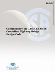 Commentary on CAN/CSA-S6-06, Canadian Highway Bridge Design Code Single user license only. Storage, distribution or use on network prohibited. S6.1-06 Single user license only. Storage, distribution or use on network prohibited. S6.1-06 November 2006 Title: Commentary on CAN/CSA-S6-06, Canadian Highway Bridge Design Code Pagination: 653 pages (xlv preliminary and 608 text), each dated November 2006 Automatic notifications about any updates to this publication are available. • To register for e-mail notifications, and/or to download any existing updates in PDF, enter the Online Store at www.ShopCSA.ca and click on My Account on the navigation bar. The List ID for this document is 2019129. • To receive printed updates, please complete and return the attached card. Name Organization Address City Province/State Country Postal/Zip Code E-mail I consent to CSA collecting and using the above information to send me updates relating to this publication. Visit CSA’s policy on privacy at www.csagroup.org/legal to find out how we protect your personal information. S6.1-06 Single user license only. Storage, distribution or use on network prohibited. CSA Standards Update Service Single user license only. Storage, distribution or use on network prohibited. Affranchir suffisamment Place Stamp Here ASSOCIATION CANADIENNE DE NORMALISATION BUREAU CENTRAL DE L’INFORMATION 5060, SPECTRUM WAY, BUREAU 100 MISSISSAUGA ON L4W 5N6 CANADA CANADIAN STANDARDS ASSOCIATION CONSOLIDATED MAILING LIST 5060 SPECTRUM WAY, SUITE 100 MISSISSAUGA ON L4W 5N6 CANADA S6.1-06 Commentary on CAN/CSA-S6-06, Canadian Highway Bridge Design Code Published in November 2006 by Canadian Standards Association A not-for-profit private sector organization 5060 Spectrum Way, Suite 100, Mississauga, Ontario, Canada L4W 5N6 1-800-463-6727 • 416-747-4044 Visit our Online Store at www.ShopCSA.ca Single user license only. Storage, distribution or use on network prohibited. CSA Special Publication This document is provided by the Canadian Standards Association (CSA) as a convenience only. Disclaimer and exclusion of liability This document is provided without any representations, warranties, or conditions of any kind, express or implied, including, without limitation, implied warranties or conditions concerning this document’s fitness for a particular purpose or use, its merchantability, or its non-infringement of any third party’s intellectual property rights. CSA does not warrant the accuracy, completeness, or currency of any of the information published in this document. CSA makes no representations or warranties regarding this document’s compliance with any applicable statute, rule, or regulation. IN NO EVENT SHALL CSA, ITS VOLUNTEERS, MEMBERS, SUBSIDIARIES, OR AFFILIATED COMPANIES, OR THEIR EMPLOYEES, DIRECTORS, OR OFFICERS, BE LIABLE FOR ANY DIRECT, INDIRECT, OR INCIDENTAL DAMAGES, INJURY, LOSS, COSTS, OR EXPENSES, HOWSOEVER CAUSED, INCLUDING BUT NOT LIMITED TO SPECIAL OR CONSEQUENTIAL DAMAGES, LOST REVENUE, BUSINESS INTERRUPTION, LOST OR DAMAGED DATA, OR ANY OTHER COMMERCIAL OR ECONOMIC LOSS, WHETHER BASED IN CONTRACT, TORT (INCLUDING NEGLIGENCE), OR ANY OTHER THEORY OF LIABILITY, ARISING OUT OF OR RESULTING FROM ACCESS TO OR POSSESSION OR USE OF THIS DOCUMENT, EVEN IF CSA HAS BEEN ADVISED OF THE POSSIBILITY OF SUCH DAMAGES, INJURY, LOSS, COSTS, OR EXPENSES. In publishing and making this document available, CSA is not undertaking to render professional or other services for or on behalf of any person or entity or to perform any duty owed by any person or entity to another person or entity. The information in this document is directed to those who have the appropriate degree of experience to use and apply its contents, and CSA accepts no responsibility whatsoever arising in any way from any and all use of or reliance on the information contained in this document. Intellectual property rights and ownership As between CSA and the users of this document (whether it be in printed or electronic form), CSA is the owner, or the authorized licensee, of all works contained herein that are protected by copyright, all trade-marks (except as otherwise noted to the contrary), and all inventions and trade secrets that may be contained in this document, whether or not such inventions and trade secrets are protected by patents and applications for patents. Without limitation, the unauthorized use, modification, copying, or disclosure of this document may violate laws that protect CSA’s and/or others’ intellectual property and may give rise to a right in CSA and/or others to seek legal redress for such use, modification, copying, or disclosure. To the extent permitted by licence or by law, CSA reserves all intellectual property rights in this document. Patent rights Attention is drawn to the possibility that some of the elements of this document may be the subject of patent rights. CSA shall not be held responsible for identifying any or all such patent rights. Users of this document are expressly advised that determination of the validity of any such patent rights is entirely their own responsibility. Use of this document This document is being provided by CSA for informational and non-commercial use only. If you do not agree with any of the terms and conditions contained in this Legal Notice, you may not use this document. Use of this document constitutes your acceptance of the terms and conditions of this Legal Notice. 100% This publication is printed on Rolland Enviro100, which contains 100% recycled post-consumer fibre, is EcoLogo and Processed Chlorine Free certified, and was manufactured using biogas energy. To purchase CSA Standards and related publications, visit CSA’s Online Store at www.ShopCSA.ca or call toll-free 1-800-463-6727 or 416-747-4044. ISBN 1-55324-482-6 Technical Editor: Mark Braiter © Canadian Standards Association — 2006 All rights reserved. No part of this publication may be reproduced in any form whatsoever 