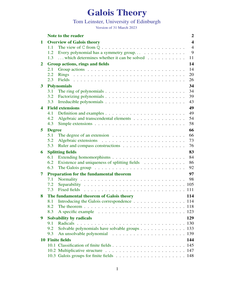 10.3 Galois groups for finite fields . . . . . . . . . . . . . . . . . . . . 148