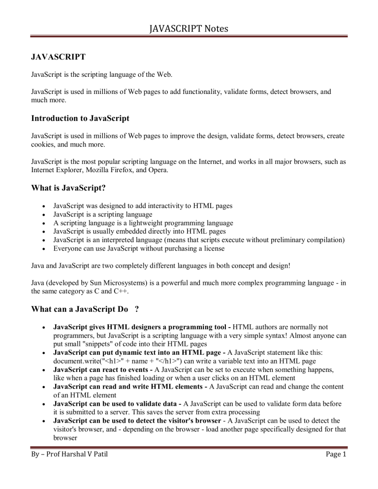 JavaScript is used in millions of Web pages to add functionality, validate forms, detect browsers, and