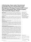 A Multicenter, Open-Label, Randomized Controlled Trial of a Conservative Fluid Management Strategy Compared With Usual Care in Participants After Cardiac Surgery: The Fluids After Bypass Study* OBJECTIVES: There is little evidence to guide fluid administration to patients admitted to the ICU following cardiac surgery. This study aimed to determine if a protocolized strategy known to reduce fluid administration when compared with usual care reduced ICU length of stay following cardiac surgery. Rachael L. Parke, PhD1–4 Eileen Gilder, MA1,2 Michael J. Gillham, MBBS1 Laurence J. C. Walker, MB ChB1 Michael J. Bailey, PhD4 DESIGN: Prospective, multicenter, parallel-group, randomized clinical trial. Shay P. McGuinness, MB ChB1,3,4 SETTING: Five cardiac surgical centers in New Zealand conducted from November 2016 to December 2018 with final follow-up completed in July 2019. on behalf of the Fluids After Bypass Study Investigators PATIENTS: Seven-hundred fifteen patients undergoing cardiac surgery; 358 intervention and 357 usual care. INTERVENTIONS: Randomization to protocol-guided strategy utilizing stroke volume variation to guide administration of bolus fluid or usual care fluid administration until desedation or up to 24 hours. Primary outcome was length of stay in ICU. Organ dysfunction, mortality, process of care measures, patient-reported quality of life, and disability-free survival were collected up to day 180. MEASUREMENTS AND MAIN RESULTS: Overall 666 of 715 (93.1%) received at least one fluid bolus. Patients in the intervention group received less bolus fluid (median [interquartile range], 1,000 mL [250–2,000 mL] vs 1,500 mL [500–2,500 mL]; p < 0.0001) and had a lower overall fluid balance (median [interquartile range], 319 mL [–284 to 1,274 mL] vs 673 mL [38–1,641 mL]; p < 0.0001) in the intervention period. There was no difference in ICU length of stay between the two groups (27.9 hr [21.8–53.5 hr] vs 25.6 hr [21.9–64.6 hr]; p = 0.95). There were no differences seen in development of organ dysfunction, quality of life, or disability-free survival at any time points. Hospital mortality was higher in the intervention group (4% vs 1.4%; p = 0.04). CONCLUSIONS: A protocol-guided strategy utilizing stroke volume variation to guide administration of bolus fluid when compared with usual care until desedation or up to 24 hours reduced the amount of fluid administered but did not reduce the length of stay in ICU. KEY WORDS: cardiac surgery; critical care; hemodynamic monitoring; intravenous fluid; randomized controlled trial; stroke volume variation *See also p. 529. Copyright © 2021 by the Society of Critical Care Medicine and Wolters Kluwer Health, Inc. All Rights Reserved. DOI: 10.1097/CCM.0000000000004883 Critical Care Medicine www.ccmjournal.org 449 Copyright © 2021 by the Society of Critical Care Medicine and Wolters Kluwer Health, Inc. All Rights Reserved. Parke et al C ardiac surgery is one of the most frequently performed major surgical procedures worldwide. Demand for cardiac surgery has increased, and combined with increased case mix complexity and advancing age, demand for limited surgical services often exceeds availability of resources (1, 2). “Bed block,” whereby patient flow through the surgical system is restricted due to patients using a hospital bed for longer than expected, is a common occurrence. In some healthcare systems, in particular, restricted availability of ICU and postoperative surgical ward beds leads to frequent cancelations in operating lists, delay in transfer from the ICU to the ward, and increases in costs associated with delays (3, 4). IV fluid therapy is one of the most common treatments administered to patients in the ICU with wide variation in practice and prescribing reported (5–7). Fluid administration has been shown to be commonplace in patients following cardiac surgery with 93% of patients receiving at least one fluid bolus in the postoperative period (8). Impaired microcirculation and multiple organ dysfunction may result due to inadequate cardiac output and reduced organ perfusion has been shown in patients after cardiac surgery (9). Although IV fluids are administered with the intention of correcting hypovolemia and improving cardiac output, this may result in a positive fluid balance that has been associated with adverse outcomes in other surgical populations (10–13). Studies in other patient populations have shown improvements in patient outcomes such as improved wound healing and reduction in length of stay (LOS) when a restrictive fluid regime is used (10, 13), while the Restrictive versus liberal fluid therapy for major abdominal surgery study found surgical site infection, acute kidney injury at 30 days and renal replacement therapy at 90 days was more common in the restrictive fluid group (14). However, no such evidence existed within the cardiac surgical population. We previously reported a single-center feasibility study, which showed a protocolized strategy, avoiding unnecessary fluid administration, was easy to implement, significantly reduced fluid loading, and led to reductions in ICU LOS (15). We hypothesized that in participants with a European system for cardiac operative risk evaluation (EuroSCORE II) greater than or equal to 0.9 undergoing cardiac surgery utilizing cardiopulmonary bypass, the use of a protocolized strategy to guide fluid 450 www.ccmjournal.org administration would reduce ICU LOS and improve participant outcomes. MATERIALS AND METHODS The Fluids After Bypass (FAB) trial was prospectively registered on the Australian and New Zealand Clinical Trials Registry (ACTRN12616001301459 first registered September 16, 2016) and the protocol and statistical analysis plan has been previously published (16). Design and Setting The FAB trial was an investigator-initiated, prospective, multicenter, parallel-group, open-label, randomized controlled superiority trial. The trial was undertaken in five publ