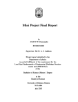 Mini Project Final Report by D.M.W.W Dasanayake SC/2021/12220 Supervisor: Mr K. A. S. Lakshan Project report submitted to the Department of physics in partial fulfillment of the requirement for the Level I(sp) Fundamentals of Engineering Workshop Practices course unit (PHY4192 ω) of the Bachelor of Science (Honor ) Degree in the Faculty of Science University of Ruhuna Matara Sri Lanka july 2025 ACKNOWLEDGMENTS I would like to extend my sincere and heartfelt thanks towards all those who have helped me in making this project. Without their active guidance, help, cooperation and encouragement, I would not have been able to present the project on time. I extend my sincere gratitude to my supervicer Mr. K. A. S. Lakshan for her moral support and guidance during the tenure of my project. I also acknowledge with a deep sense of reverence, my gratitude towards my department members and other faculty members of the university for their valuable suggestions and cooperation given to me in completing the project. i ABSTRACT This report presents the design, fabrication, and testing of a G-Clamp as part of the Fundamental Engineering and Workshop course module. The primary objective of the project was to apply fundamental workshop techniques—including measuring, marking, cutting, filing, drilling, tapping, and assembly—to produce a functional mechanical tool. The G-Clamp, a versatile clamping device commonly used in metalworking and woodworking, was manufactured using mild steel and aluminum components. Standard hand tools and machine tools were employed under strict safety guidelines. Throughout the project, emphasis was placed on precision, surface finishing, and adherence to design specifications. The successful completion of the G-Clamp demonstrates a practical understanding of basic engineering processes and highlights the importance of accuracy, and hands-on experience in mechanical fabrication. Keywords: g clamp, mechines , safety ii TABLE OF CONTENTS TABLE OF CONTENTS . . . . . . . . . . . . . . . . . . . . . . . . . . . . . iii LIST OF FIGURES . . . . . . . . . . . . . . . . . . . . . . . . . . . . . . . . v 1 Introduction . . . . . . . . . . . . . . . . . . . . . . . . . . . . . . . . . . 1 1.1 Background of the Focused Problem . . . . . . . . . . . . . . . . . 1 1.2 Objectives . . . . . . . . . . . . . . . . . . . . . . . . . . . . . . . 1 1.3 Significance of the Project and Expected Outcomes . . . . . . . . 2 1.4 Features of the Proposed System . . . . . . . . . . . . . . . . . . . 2 Design and Manufacturing Process . . . . . . . . . . . . . . . . . . . . . 4 2.1 Designing Steps . . . . . . . . . . . . . . . . . . . . . . . . . . . . 4 2.2 Machines and Tools Used . . . . . . . . . . . . . . . . . . . . . . . 4 2.3 Machine Workshop Safety . . . . . . . . . . . . . . . . . . . . . . 5 2.4 Machining of Each Part . . . . . . . . . . . . . . . . . . . . . . . . 6 2.5 Assembly of the Parts . . . . . . . . . . . . . . . . . . . . . . . . . 7 Results and Discussions . . . . . . . . . . . . . . . . . . . . . . . . . . . 8 3.1 Physical Appearance of the Product . . . . . . . . . . . . . . . . . 8 3.2 Results . . . . . . . . . . . . . . . . . . . . . . . . . . . . . . . . . 10 2 3 iii 3.3 4 5 Cost Estimation . . . . . . . . . . . . . . . . . . . . . . . . . . . . 10 Conclusion . . . . . . . . . . . . . . . . . . . . . . . . . . . . . . . . . . . 11 4.1 Achievements . . . . . . . . . . . . . . . . . . . . . . . . . . . . . 11 4.2 Accuracy and Uncertainty . . . . . . . . . . . . . . . . . . . . . . 11 4.3 Advantages . . . . . . . . . . . . . . . . . . . . . . . . . . . . . . 12 4.4 Applications . . . . . . . . . . . . . . . . . . . . . . . . . . . . . . 12 Further Developments . . . . . . . . . . . . . . . . . . . . . . . . . . . . 13 5.1 Suggestions for Enhancing Product Quality . . . . . . . . . . . . . 13 5.2 Design Improvements 13 . . . . . . . . . . . . . . . . . . . . . . . . iv LIST OF FIGURES 5.1 Auto cad design of c part . . . . . . . . . . . . . . . . . . . . . . . . 15 5.2 Auto cad design of screw part . . . . . . . . . . . . . . . . . . . . . . 16 5.3 Auto cad design of handle part 17 . . . . . . . . . . . . . . . . . . . . . v CHAPTER 1 Introduction 1.1 Background of the Focused Problem In both mechanical and woodworking industries, holding components securely in place during fabrication or assembly is a fundamental requirement. Clamping devices are essential tools for achieving precision, safety, and e!ciency during such operations. Among them, the G-Clamp is widely used for temporarily securing workpieces to a fixed position on a workbench or surface. Despite its simple structure, the G-Clamp must be both strong and precise to apply adequate force without damaging the material. This project was undertaken in the context of the Fundamental Engineering and Workshop module, aiming to introduce students to practical mechanical fabrication methods. The need to understand the working principles and manufacturing processes of basic workshop tools led to the selection of the G-Clamp as a suitable project. By fabricating a G-Clamp from raw materials using fundamental workshop skills, students gain hands-on experience that bridges theoretical knowledge and real-world application. 1.2 Objectives The primary objectives of this project are as follows: • To design and fabricate a functional G-Clamp using basic workshop techniques and tools. • To apply skills in measuring, marking, cutting, filing, drilling, tapping, and assembling mechanical components. 1 • To enhance understanding of tolerances, fits, and mechanical functionality. • To promote teamwork, problem-solving, and adherence to safety practices in a workshop environment. 1.3 Significance of the Project and Expected Outcomes This project plays a significant role in introducing engineering students to practical manufacturing processes and real-world applications of mechanical principles. Through the fabrication of the G-Clamp, the