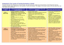 Kirkpatrick's Four Levels of Training Evaluation in Detail This grid illustrates the Kirkpatrick's structure detail, and particularly the modern-day interpretation of the Kirkpatrick learning evaluation model, usage, implications, and examples of tools and methods. This diagram is the same format as the one above but with more detail and explanation: EVALUATION TYPE LEVEL 1 REACTION LEVEL 2 LEARNING EVALUATION DESCRIPTION AND CHARACTERISTICS EXAMPLES OF EVALUATION TOOLS AND METHODS § reaction evaluation is how the delegates felt, and their personal reactions to the training or learning experience, for example: § did the trainees like and enjoy the training? § did they consider the training relevant? § was it a good use of their time? § did they like the venue, the style, timing, domestics, etc? § level of participation § ease and comfort of experience § level of effort required to make the most of the learning § perceived practicability and potential for applying the learning § learning evaluation is the measurement of the increase in knowledge or intellectual capability from before to after the learning experience: § did the trainees learn what intended to be taught? § did the trainee experience what was intended for them to experience? § what is the extent of advancement or change in the trainees after the training, in the direction or area that was intended? § typically 'happy sheets' § feedback forms based on subjective personal reaction to the training experience § verbal reaction which can be noted and analyzed § post-training surveys or questionnaires § online evaluation or grading by delegates § subsequent verbal or written reports given by delegates to managers back at their jobs § can be done immediately the training ends § very easy to obtain reaction feedback § feedback is not expensive to gather or to analyze for groups § important to know that people were not upset or disappointed § important that people give a positive impression when relating their experience to others who might be deciding whether to experience same § typically assessments or tests before and after the training § interview or observation can be used before and after although this is time-consuming and can be inconsistent § methods of assessment need to be closely related to the aims of the learning § measurement and analysis is possible and easy on a group scale § reliable, clear scoring and measurements need to be established, so as to limit the risk of inconsistent assessment § hard-copy, electronic, online or interview style assessments are all possible § § relatively simple to set up, but more investment and thought required than reaction evaluation § highly relevant and clear-cut for certain training such as quantifiable or technical skills § less easy for more complex learning such as attitudinal development, which is famously difficult to assess § cost escalates if systems are poorly designed, which increases work required to measure and analyze RELEVANCE AND PRACTICABILITY EVALUATION TYPE LEVEL 3 BEHAVIOR EVALUATION DESCRIPTION AND CHARACTERISTICS EXAMPLES OF EVALUATION TOOLS AND METHODS § behavior evaluation is the extent to which the trainees applied the learning and changed their behavior, and this can be immediately and several months after the training, depending on the situation: § did the trainees put their learning into effect when back on the job? § were the relevant skills and knowledge used § was there noticeable and measurable change in the activity and performance of the trainees when back in their roles? § was the change in behavior and new level of knowledge sustained? § would the trainee be able to transfer their learning to another person? § observation and interview over time are required to assess change, relevance of change, and sustainability of change § arbitrary snapshot assessments are not reliable because people change in different ways at different times § assessments need to be subtle and ongoing, and then transferred to a suitable analysis tool § assessments need to be designed to reduce subjective judgment of the observer or interviewer, which is a variable factor that can affect reliability and consistency of measurements § the opinion of the trainee, which is a relevant indicator, is also subjective and unreliable, and so needs to be measured in a consistent defined way § 360-degree feedback is useful method and need not be used before training, because respondents can make a judgment as to change after training, and this can be analyzed for groups of respondents and trainees § assessments can be designed around relevant performance scenarios, and specific key performance indicators or criteria § online and electronic assessments are more difficult to incorporate - assessments tend to be more successful when integrated within existing management and coaching protocols § self-assessment can be useful, using carefully designed criteria and measurements is the trainee aware of their change in behavior, knowledge, skill level? RELEVANCE AND PRACTICABILITY measurement of behavior change is less easy to quantify and interpret than reaction and learning evaluation § simple quick response systems unlikely to be adequate § cooperation and skill of observers, typically linemanagers, are important factors, and difficult to control § management and analysis of ongoing subtle assessments are difficult, and virtually impossible without a welldesigned system from the beginning § evaluation of implementation and application is an extremely important assessment - there is little point in a good reaction and good increase in capability if nothing changes back in the job, therefore evaluation in this area is vital, albeit challenging § behavior change evaluation is possible given good support and involvement from line managers or trainees, so it is helpful to involve them from the start, and to identify benefits for them, which li