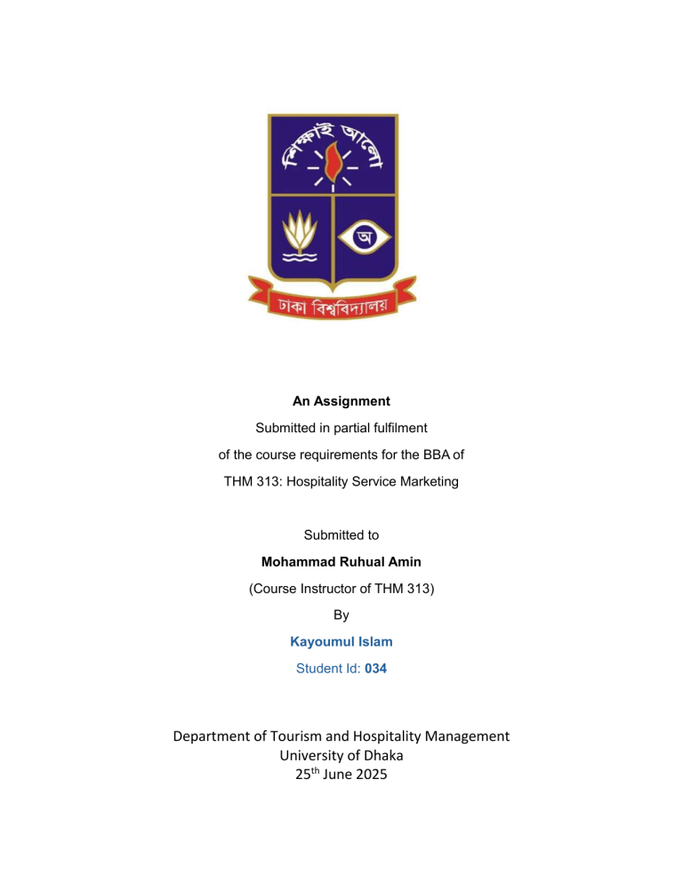 An Assignment Submitted in partial fulfilment of the course requirements for the BBA of THM 313: Hospitality Service Marketing Submitted to Mohammad Ruhual Amin (Course Instructor of THM 313) By Kayoumul Islam Student Id: 034 Department of Tourism and Hospitality Management University of Dhaka 25th June 2025 Kayoumul Islam ID:034 An Evaluation of KSI LTD’s Internet Service Using SERVQUAL Model and Service Gaps Introduction As a university student, I need the internet for my studies, online classes, and daily tasks. I have been using KSI LTD’s internet service for several months. They promise fast and reliable internet, but my real experience has been different. In this assignment, I will explain how KSI LTD’s service performs using the SERVQUAL model and the Service Gap Model. I will share my personal experiences to show where they are doing well and where they need to improve. Part 1: Evaluation of KSI LTD Using SERVQUAL Model The SERVQUAL model looks at five key areas: Reliability, Responsiveness, Assurance, Empathy, and Tangibles. Below is my experience in each area with KSI LTD. 1. Reliability – Doing What Was Promised Reliability means delivering the service as advertised. KSI LTD promised that I would have a stable internet connection and fast speeds. In reality, I often face interruptions and slow speeds, especially in the evening when I need to attend online lectures. Although I pay for a 60 Mbps plan, my speed sometimes drops to 10–20 Mbps. Because of these drops, I cannot always finish my work on time. From my experience, KSI LTD does not reliably give me the service they promise. 2. Responsiveness – Willingness to Help Customers Responsiveness means how quickly the company helps when there is a problem. When my internet goes down, I call KSI LTD’s customer support. Sometimes I wait for several hours or even a whole day before a technician comes. Once, I had no connection for two days, and they only sent someone after I called three times. Waiting so long causes me a lot of stress, especially when I have deadlines. This shows that KSI LTD needs to be faster and more helpful when problems occur. 3. Assurance – Knowledge and Courtesy of Staff Assurance is about staff being polite, professional, and knowing how to fix issues. When I speak with KSI LTD’s customer service or technicians, they are usually polite. They explain things in a way I can understand. For example, once I did not know why my WiFi router was not working properly. The technician checked it and clearly told me what was wrong and how to fix it. This made me feel confident that they know what they are doing. In my opinion, KSI LTD does well in the assurance area. 4. Empathy – Caring and Individualized Attention Empathy means understanding each customer’s special needs. I asked KSI LTD if they had a cheaper plan for students or a plan with flexible data. They said no, they only offer a few standard packages. As a student, I sometimes do not need unlimited data but need a faster connection during exams. Since they do not provide special plans for students or small users, I feel they do not truly understand individual needs. From my experience, KSI LTD’s empathy is low. 5. Tangibles – Physical Appearance of Facilities and Materials Tangibles are the visible parts of the service, like equipment and offices. When the technician came to install my internet, they wore a clean uniform and used new, branded equipment. My router looks modern and their service van had the company logo. Their website is easy to use, and the office is clean. Because of these things, KSI LTD gives a professional image. In my view, tangibles are their strongest point. Part 2: Service Gap Analysis of KSI LTD The Service Gap Model shows four gaps that can happen inside a company. If these gaps are large, the service quality goes down. Here, I explain each gap with my experiences at KSI LTD. Gap 1: The Listening Gap This gap happens when the company does not know what customers really want. KSI LTD never asks me or other users for feedback. They do not send surveys or make phone calls to check if we are happy. I want faster support during exams, but they do not know this because they never ask. Because they do not listen, they have the first gap. Gap 2: The Service Design and Standards Gap This gap is between what customers expect and how the company designs its service. KSI LTD tells everyone they have “24/7 customer support,” but in reality, help often comes only during working hours. They also do not give any special offers for students. Their plans are the same for everyone. If they knew what I needed, they would offer a plan that fits my budget and schedule. Instead, they stick to basic plans. This mismatch shows the second gap. Gap 3: The Service Performance Gap This gap happens when the service is planned correctly but not delivered well. KSI LTD says they will send a technician within two hours of a complaint. But I have waited for a technician for more than 24 hours. Once, the technician fixed the problem, but later the same issue came back because they did not set up the router properly. This shows that even though they claim to have good service procedures, they fail to perform well. That is the third gap. Gap 4: The Communication Gap This gap is when marketing promises do not match what the customer gets. KSI LTD advertises “No Buffer, No Lag.” Yet, when I watch videos or play online games, streaming often buffers and lags. Their ads give me high hopes, but the real performance does not match. This makes me feel disappointed because my expectations are not met. This is the fourth gap. Conclusion From my experience as a user, KSI LTD has good-looking equipment and polite staff (tangibles and assurance). However, they often fail to give reliable internet, respond quickly to problems, and treat each customer as an individual (reliability, responsiveness, and empathy). Their internal gaps—especially not li
