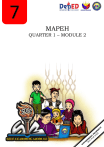 7 MAPEH QUARTER 1 – MODULE 2 i MAPEH- MUSIC Self-Learning Module (SLM) Quarter 1 – Grade 7 First Edition 2025 Republic Act 8293, section 176 states that: No copyright shall subsist in any work of the Government of the Philippines. However, prior approval of the government agency or office wherein the work is created shall be necessary for exploitation of such work for profit. Such agency or office may, among other things, impose as a condition the payment of royalties. Borrowed materials (i.e., songs, stories, poems, pictures, photos, brand names, trademarks, etc.) included in this module are owned by their respective copyright holders. Every effort has been exerted to locate and seek permission to use these materials from their respective copyright owners. The publisher and authors do not represent nor claim ownership over them. Development Team Writers: Kristine F. Balongo- Music Rhofa Kaye S. Lucas- Music Vencint Karl E. Tacardon- Arts Bejie N. Nepumoceno- Physical Education Herod S. Bernal- Health Henjie G. Ehimplar- Health Editors: Alex F. Floro, Charito P. Duhino Reviewer: Lorelie C. Salinas, Cecille N. Solidarios, Jay Sheen A. Molina Illustrator: Layout Artist: Cover Art Designer: Jay Sheen A. Molina Management Team: Leonardo M. Balala, CESO V-Schools Division Superintendent Levi B. Butihen - Assistant Schools Division Superintendent Marichu Jean R. Dela Cruz PhD - CID Chief Nelida A. Castillo - Division EPS In Charge of LRMS Alex F. Floro – EPS in MAPEH Charito P. DuhinoMusic and– Arts Coordinator Printed in the Philippines by Department of Education Schools Division of South Cotabato Office Address: Telefax: E-mail Address: Alunan Avenue, City of Koronadal (083) 228-3801 southcotabato@deped.gov.ph ii 7 MAPEH QUARTER 1 – MODULE 2 iii Introductory Message For the facilitator: Welcome to the MAPEH 7 Self-Learning Module (SLM) on MUSIC-Popular Music- Instrumental Music, ARTS-Animation, PHYSICAL EDUCATION-Game Concept: Positioning, and HEALTH- Common Adolescents’ Concerns that can Affect Mental Health. This self-learning module was collaboratively designed, developed and reviewed by educators from public institutions to assist you, the teacher or facilitator in helping the learners meet the standards set by the Revised K to 12 Curriculum while overcoming their personal, social, and economic constraints in schooling. This self-learning module hopes to engage the learners into guided and independent learning activities at their own pace and time. Furthermore, this also aims to help learners acquire the needed 21st century skills while taking into consideration their needs and circumstances. In addition to the material in the main text, you will also see this box in the body of the module: As a facilitator you are expected to orient the learners on how to use this module. You also need to keep track of the learners' progress while allowing them to manage their own learning. Furthermore, you are expected to encourage and assist the learners as they do the tasks included in the module. For the learner: Welcome to the MAPEH 7 Self-Learning Module (SLM) on MUSIC-Popular Music- Instrumental Music, ARTS-Animation, PHYSICAL EDUCATION-Game Concept: Positioning, and HEALTH- Common Adolescents’ Concerns that can Affect Mental Health. The hand is one of the most symbolized parts of the human body. It is often used to depict skill, action and purpose. Through our hands we may learn, create and accomplish. Hence, the hand in this learning resource signifies that you as a learner are capable and empowered to successfully achieve the relevant competencies and skills at your own pace and time. Your academic success lies in your own hands! This self-learning module was designed to provide you with fun and meaningful opportunities for guided and independent learning at your own pace and time. You will be enabled to process the contents of the self-learning module while being an active learner. iv This self-learning module has the following parts and corresponding icons: Design – This will give you an idea of the skills or competencies you are expected to learn from the Self-Learning Module (SLM). Review –This contains activity that will check your prior knowledge. Also, this is a brief drill or activity to help you link the current lesson with the previous one. Engage – In this portion, the new lessons will be introduced to you in various ways such as a story, a song, a poem, a problem opener, an activity or a situation. Apply– This comprises activities for independent and group performance practices to solidify your understanding and skills of the topic. Measure – This section provides an activity which will help you transfer your new knowledge or skill into real life situations. This also evaluates the level of mastery in achieving learning competency. v LESSON 1 COUNTING NUMBERS UP TO 50 Design Hello there, young mathematicians! How are you? I know that you are all excited and having fun to learn more in the mathematics world. It is now time for you to learn another topic that will help you to be a good in numbers. This lesson you will be learning about numbers. Learning Competency: Count up to 100 (includes counting up or down from given number and identifying a number that is 1 more or 1 less than a given number). Objectives: At the end of the lesson, the learners should be able to: 1. Identify and count numbers up to 50; and 2. Identify and count numbers that is 1 more or 1 less than a given number. References: “Grade 1 Math Quarter 1 Module 1 - Search Videos.” n.d. https://www.bing.com/videos/riverview/relatedvideo?q=grade+1+math+quarter+1 +module+1&mid=89742B32B413B35FEEFA89742B32B413B35FEEFA&FORM=VI RE. 1 Review Now that we've explored the objectives of this activity, let's take some time to reflect on what you've learned. By diving into the different vocal music traditions of Southeast Asia, you've been able to see the distinct cultural expressions of each nation. As