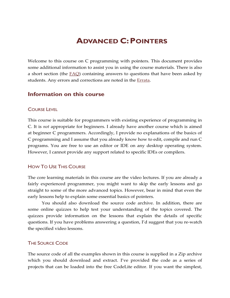 at beginner C programmers. Accordingly, I provide no explanations of the basics of