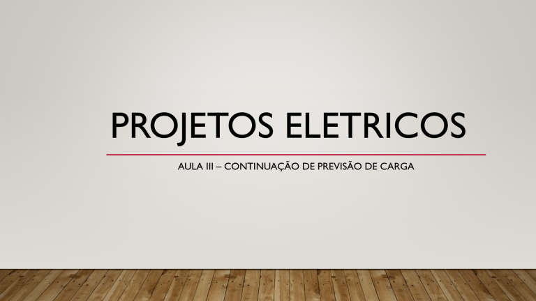 PROJETOS ELETRICOS AULA III – CONTINUAÇÃO DE PREVISÃO DE CARGA CIRCUITOS • No sistema monofásico, a rede é construída com dois fios: uma fase e um neutro. Redes monofásicas são instaladas somente quando a soma das potências de todos os equipamentos de uma residência atinge um valor máximo de 8 kw (8000 watts). CIRCUITOS Na ENEL/CE, a potencia maxima para sistema monofasico é • 10kW (10.000W) se em rede aerea; • 15kW (15.000 W) se em rede subterranea. CIRCUITOS • O sistema bifásico é caracterizado pela existência de três fios entre a rede elétrica e o estabelecimento que receberá energia. • Esse tipo de ligação é utilizado apenas em zonas rurais, onde a quantidade de equipamentos elétricos não é tão grande como a das zonas urbanas. Sistemas bifásicos são utilizados para potências de 12000 W até 25000 W. CIRCUITOS Na ENEL/CE, a potencia maxima para sistema bifasico é • 20kW (20.000W) se em rede aerea; • 30kW (30.000 W) se em rede subterranea. CIRCUITOS • No sistema trifásico, a rede elétrica é composta por quatro fios: três fases e um neutro. • A instalação trifásica é a mais indicada para residências que possuem equipamentos elétricos cuja soma das potências ultrapassa 8000 W, bem como para indústrias e o comércio. • Geralmente atende uma faixa de potencia entre 25000W e 75000W CIRCUITOS Na ENEL/CE, a potencia maxima para sistema trifasico é • 75kW se em rede aerea; • 100kW se em rede subterranea. CIRCUITOS • ABAIXO DE 75kW É CONSIDERADA REDE DE BAIXA TENSÃO POTENCIA DE ILUMINAÇÃO POR CALCULO LUMINOTECNICO POTENCIA DE ILUMINAÇÃO POR CALCULO LUMINOTECNICO O FLUXO LUMINOSO (Φ) É A QUANTIDADE DE CLARIDADE (LUZ) EMITIDA POR UMA FONTE LUMINOSA, CONSIDERADA IGUAL EM TODAS AS DIREÇÕES. ELE É UM DADO CARACTERÍSTICO DA LÂMPADA QUE NOS FORNECE A PERCEPÇÃO DE QUE ELA É FORTE OU FRACA. UNIDADE: Lm (Lúmen) POTENCIA DE ILUMINAÇÃO POR CALCULO LUMINOTECNICO LAMPADAS INCANDESCENTES: • Funciona atraves do aquecimento do filamento metalico • Baixa luminosidade; • Alta perda de calor POTENCIA DE ILUMINAÇÃO POR CALCULO LUMINOTECNICO LAMPADAS FLUORESCENTES: • Funciona atraves da oscilação do gas interno gerando luminosidade; • Média luminosidade; • Média perda de calor Tubulares Compactas POTENCIA DE ILUMINAÇÃO POR CALCULO LUMINOTECNICO LAMPADAS LED’s • Funciona atraves do movimento direto de eletrons • Baixo calor dissipado; • Alta luminosidade; POTENCIA X FLUXO Tipo deLuminária Potência Lúmens Eficiência Luminosa Desperdício de luz Incandescente translúcida 60W 864lm 14lm/W Alto Incandescente 100W 1.600lm 16lm/W Alto Fluorescente compacta 15W 900lm 60lm/W Alto Fluorescente tubular T8 32W 2.470lm 77lm/W Alto Fluorescente tubular T5 54W 4.420lm 81lm/W Alto LED High Bay LED Hermética LED Arqline Linear 150W 70W 60W 21.000lm 11.200lm 9.000lm 140lm/W 160lm/W 150lm/W Baixo Baixo Baixo POTENCIA DE ILUMINAÇÃO POR CALCULO LUMINOTECNICO ILUMINAMENTO (E): É UM TERMO QUE DESCREVE A MEDIÇÃO DA QUANTIDADE DE LUZ QUE CAI (ILUMINANDO E ESPALHANDO) SOBRE UMA DETERMINADA ÁREA DE SUPERFÍCIE UNIDADE: lx (LUX) 𝟏 𝒍𝒎 𝟏 𝒍𝒖𝒙 = 𝟏 𝒎² POTENCIA DE ILUMINAÇÃO POR CALCULO LUMINOTECNICO PODE-SE DIZER QUE: Φ 𝑬= 𝑨 E = Iluminamento; Φ = Fluxo luminoso; A = area do compartimento. POTENCIA DE ILUMINAÇÃO POR CALCULO LUMINOTECNICO EXEMPLO CATOLOGO – LAMPADAS PHILIPS LED COMPACTA Descrição Potência (W) Fluxo luminoso da lâmpada (lm) Intensidade Luminosa (lm/W) LEDBulb 4.5W E27 3000K W 1PF/40 BR LEDBulb 7W E27 3000K W 1PF/40 BR LEDBulb 9W E27 3000K W 1PF/40 BR LEDBulb 11W E27 3000K W 1PF/40 BR LEDBulb 13W E27 3000K W 1PF/40 BR LEDBulb 16W E27 3000K W 1PF/40 BR LEDBulb 18W E27 6500K W A70 1PF/6 BR LEDBulb 22W E27 6500K W A80 1PF/6 BR 4,5 7 9 11 13 16 18 22 480 560 806 1018 1311 1521 1800 2300 106,7 80,0 89,6 92,5 100,8 95,1 100,0 104,5 COMODO AREA (m2) sala 9,91 copa 9,46 cozinha 11,44 dormitorio 1 11,05 dormitorio 2 10,71 banho 4,14 area de serviço 5,95 hall 1,80 area externa ILUMINAMENTO (LUX) FLUXO LUMINOSO (LUMENS) ILUMINAMENTO MÉDIO AREA (m2) ILUMINAMENTO (LUX) FLUXO LUMINOSO (LUMENS) sala 9,91 500 4956 copa 9,46 300 2837 cozinha 11,44 300 3431 dormitorio 1 11,05 300 3315 dormitorio 2 10,71 300 3213 banho 4,14 300 1242 area de serviço 5,95 300 1785 hall 1,80 300 540 COMODO area externa ILUMINAMENTO MÁXIMO AREA (m2) ILUMINAMENTO (LUX) FLUXO LUMINOSO (LUMENS) sala 9,91 700 6939 copa 9,46 500 4728 cozinha 11,44 500 5719 dormitorio 1 11,05 500 5525 dormitorio 2 10,71 500 5355 banho 4,14 500 2070 area de serviço 5,95 500 2975 hall 1,80 500 900 COMODO area externa EXEMPLO – ILUMINAMENTO MÉDIO COMODO sala copa cozinha dormitorio 1 dormitorio 2 banho area de serviço hall area externa FLUXO LUMINOSO (LUMENS) 4956 2837 3431 3315 3213 1242 1785 540 TIPO DE LUMINARIA 16W 16W 16W 16W 16W 16W 16W 9W 4 2 3 3 3 1 2 1 POTENCIA (W) 64 32 48 48 48 16 32 9 TOTAL 297 QTDE ILUMINAMENTO MAXIMO COMODO sala copa cozinha dormitorio 1 dormitorio 2 banho area de serviço hall area externa FLUXO LUMINOSO (LUMENS) 6939 4728 5719 5525 5355 2070 2975 900 TIPO DE LUMINARIA 16W 16W 16W 16W 16W 16W 16W 9W 5 4 4 4 4 2 2 2 POTENCIA (W) 80 64 64 64 64 32 32 18 TOTAL 418 QTDE SIMBOLOGIA • NÃO HÁ NORMATIZAÇÃO VIGENTE.... MAS HAVIA A NBR 5444 QUE FOI CANCELADA. • AINDA É UTILIZADA COMO BASE PARA DETALHAMENTOS DE PROJETOS ELETRICOS SIMBOLOGIA - ELETRODUTOS SIMBOLOGIA - ELETRODUTOS Os eletrodutos são tubulações, que orientam e protegem a distribuição da fiação eletrica por todos os circuitos de uma edificação. SIMBOLOGIA - ELETRODUTOS RIGIDOS : • SUPORTAM GRANDES CARGAS • UTILIZADOS EM LOCAIS COM CARGA DE COMPRESSÃO SOBRE O TUBO, COMO EXEMPLO AS ESTRUTURAS DE CONCRETO E TAMBEM EM INSTALAÇÕES SUBTERRANEAS. • NÃO SÃO FLEXIVEIS SIMBOLOGIA - ELETRODUTOS SIMBOLOGIA - ELETRODUTOS FLEXIVEIS : • SÃO TAMBEM CHAMADOS DE CONDUITES; • FLEXIVEIS; • SÃO USADOS GERALMENTE EM FORRO