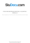 lOMoARcPSD|8878033 FOOD AND BEVERAGE SERVICES 10 QUARTER 1 MODULE 4 Basic Competencies in Food Preservation (Carlos Hilado Memorial State College) StuDocu is not sponsored or endorsed by any college or university Downloaded by Honey Nakila (curatohoney1125@gmail.com) lOMoARcPSD|8878033 10 JUNIOR HIGH SCHOOL Republic of the Philippines Department of Education Region VIII Division of Samar District of Marabut OSMEÑA NATIONAL HIGH SCHOOL Osmeña, Marabut, Samar TECHNOLOGY & LIVELIHOOD EDUCATION (FOOD AND BEVERAGE SERVICES) QUARTER 1 LEARNING ACTIVITY SHEET 4 Setting up Table Appointments in the Dining Area TECHNOLOGY AND LIVELIHOOD EDUCATION (TLE 10) 1 Downloaded by Honey Nakila (curatohoney1125@gmail.com) lOMoARcPSD|8878033 HOME ECONOMICS (FOOD AND BEVERAGE SERVICES) Learning Area Setting up Table Appointments in the Dining Area Title I.Introduction This lesson contains different ways in stocking supplies necessary for service up to the food hygiene and occupational health and safety . It also helps the learners to understand what are the preparation before the actual restaurant service and teaches them to value the need to learn different skills in preparing service stations and equipment It consist of the following lessons. II. MELC (with code) Lesson 2. Prepare Service Station and Equipment (TLE_HEFBS9-12AS-Ia-b-1) 2.1 Preparation of service Equipment/utensils and supplies 2.2 Basic Types of Tablewares 2.3 Station Misen Place 2.4 Cleanliness and Condition of Equipment/utensils, furniture and supplies 2.5 Legislation on OH & Safety and food hygiene. III. Strategy: 2 Downloaded by Honey Nakila (curatohoney1125@gmail.com) lOMoARcPSD|8878033 A. Explore: Activity 1. Identifications Directions: In a counterclockwise direction, analyze the given illustration below whether each table appointment was placed according to the rules of laying table appointments. Write “C” if it was laid correctly, and “W” if otherwise. Write your answers from 1 to 20 in your activity sheet. 3 Downloaded by Honey Nakila (curatohoney1125@gmail.com) lOMoARcPSD|8878033 Definition of Technical Terms Table Setting table appointments Refers to the way in which the and food are arranged on the table for dining. How the table should be set depends on: the style of service to be used; the menu to be served, the size of the table, and; the available table appointment. 4 Downloaded by Honey Nakila (curatohoney1125@gmail.com) lOMoARcPSD|8878033 Table Appointments These are table implements/utensils that are used for dining and serving, which includes the flatware, dinnerware, glassware, hollowware and linens. Cover A cover is the space required on a table for table appointment for one person to partake of a meal. This is considered as the smallest unit in the table setting (approx. 24 by 15 inches). An imaginary line may be drawn to define the cover about 1 to ½ inches from the table edge. Place Setting The arrangement and the way to set a table with tableware and for serving and eating for a single diner. Factors such as the menu or type of food to be served, the size of the table, and the style of service largely determine this. Table Accessories These are items essential to complete the table set- up which include salt and pepper set/shakers, cruets, ashtray, flower vases and tent menu. B. Learn: Lesson 4: Setting up Table Appointments in the Dining Area Setting up all the table implements/appointments to be used in the restaurant is very important. Proper location and principles in setting up must be considered to emphasize its usefulness and ease of dining in the restaurant. 5 Downloaded by Honey Nakila (curatohoney1125@gmail.com) lOMoARcPSD|8878033 Rules in Laying Covers/ Table Set-Up General Rules for Table Setting Before setting the table, ensure that the chairs and tables are in their best condition and correct positions, the tabletop should be clean and that the table is level and not wobbly. 1. Always consider the convenience and comfort of the guest in placing the table appointment. 2. Be creative and artistic in setting the table but make sure it will not contradict the principles in table setting and be careful not to overcrowd the table. 3. For formal setting, the table on which a tablecloth is to be spread should be first covered with silence or base cloth (Damask), for the following reasons: to protect the diner's wrists and elbows from the table’s sharp edges; to keep the tablecloth firmly in place; to protect the surface of the table and prevent the rattling of crockery and cutlery, and; to absorb moisture in case liquid spills on the table. 4. Carry equipment to the table on clean trays or service plate, handling dinnerware by the edge without touching the surface, glassware by the stems or base and flatware by the handles. 5. Sanitize, check and set aside damaged and soiled table appointments. Crockery and cutlery should be spotlessly clean, and the glassware should be wellpolished. Chipped or cracked equipment should not be used. 6 Downloaded by Honey Nakila (curatohoney1125@gmail.com) lOMoARcPSD|8878033 6. The establishment monogram/logo should be visible to the guest. 7. Each cover should be well-balanced, and it should observe ideal space for a cover, the opposite side should be exactly similar, so as to give a well-balanced look. Example of Table Set Up 25 26 20 24 21 27 23 22 19 18 9 8 15 7 1 6 2 34 16 14 17 5 10 11 12 13 Image 1.0: Russian Style of Table Set-up (numbered from lower left corner at counterclockwise motion) 1. Table Napkin 10. Diner Knife 19. Red Wine Glass 2. Salad Fork 11. Fish Knife 20. Champagne Flute 3. Fish Fork 12. Salad Knife 21. Water Goblet 4. Dinner Fork 13. Soup Spoon 22. Dessert Fork 7 Downloaded by Honey Nakila (curatohoney1125@gmail.com) lOMoARcPSD|8878033 5. ShowPlate/Charger/base Plate 14. Escargot 23. Dessert Spoon 6. Dinner Plate 15. Saucer 24. Cruet Set/Crockeries 7. Salad Plate 16. Coffee Cup 25. Flower Vase 8. Soup Under-liner 17. Teaspoon 9. Soup Bowl 