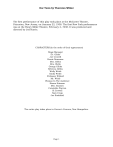 Our Town by Thornton Wilder The first performance of this play took place at the McCarter Theatre, Princeton, New Jersey, on January 22, 1938. The first New York performance was at the Henry Miller Theatre, February 4, 1938. It was produced and directed by Jed Harris. CHARACTERS (in the order of their appearance) Stage Manager Dr. Gibbs Joe Crowell Howie Newsome Mrs. Gibbs Mrs. Webb George Gibbs Rebecca Gibbs Wally Webb Emily Webb Professor Willard Mr. Webb Woman In The Audience Simon Stimson Mrs. Soames Constable Warren Si Crowell Sam Craig Joe Stoddard The entire play takes place in Grover's Corners, New Hampshire. Page 1 Our Town by Thornton Wilder ACT I No curtain. No scenery. The audience, arriving, sees an empty stage in half-light. Presently the Stage Manager. When the Stage Manager reaches his place, the lights come to black. After one count, the lights come to full. Stage Manager This play is called "Our Town." The day is May 7, 1901. The time is just before dawn. A rooster crows. The sky is beginning to show some streaks of light over in the East there, behind our mount'in. Well, I'd better show you how our town lies. Up here is Main Street. Way back there is the railway station. Polish Town's across the tracks. Over there is the Congregational Church; across the street's the Presbyterian. Methodist and Unitarian are over there. Baptist is down in the holla' by the river. Catholic Church is over beyond the tracks. Here's the Town Hall and Post Office combined; jail's in the basement. Here's the grocery store and here's Mr. Morgan's drugstore. Most everybody in town manages to look into those two stores once a day. Public School's over yonder. High School's still farther over. Quarter of nine mornings, noontimes, and three o'clock afternoons, the hull town can hear the yelling and screaming from those schoolyards. This is our doctor's house, Doc Gibbs'. This is the back door. This is Mrs. Gibbs' garden. Corn…peas...beans...hollyhocks…heliotrope… and a lot of burdock. And this is Mrs. Webb's garden. Just like Mrs. Gibbs'. Only it's got a lot of sunflowers, too. Nice town, y'know what I mean? Page 2 Our Town by Thornton Wilder Stage Manager (Continued) Nobody very remarkable ever come out of it, s'far as we know. The earliest tombstones in the cemetery up there on the mountain say 1670-1680. There are Grovers and Cartwrights` and Gibbses and Herseys; same names as are around here now. Well, as I said; it's about dawn. A train whistle is heard. The Stage Manager takes out his watch and nods. So…another day's begun. There's Doc Gibbs comin' down Main Street now. And here's his wife comin' downstairs to get breakfast. Mrs. Gibbs enters. And there comes Joe Crowell, Jr., delivering Mr. Webb's Sentinel. Dr. Gibbs enters. Joe Crowell, jr., enters down center aisle. Joe Crowell, Jr. Morning, Doc Gibbs. Dr. Gibbs Morning, Joe. Joe Crowell, Jr. Somebody been sick, Doc? Dr. Gibbs No. Just some twins born over in Polish Town. Joe Crowell, Jr. Do you want your paper now? Dr. Gibbs Yes, I'll take it. Anything serious goin' on in the world since Wednesday? Page 3 Our Town by Thornton Wilder Joe Crowell, Jr. Yes sir. My schoolteacher, Miss Foster's, getting married to a fella over in Concord. Dr. Gibbs I declare. How do you boys feel about that? Joe Crowell, Jr. Well, of course, it's none of my business but I think if a person starts out to be a teacher she ought to stay one. Joe exits. Dr. Gibbs stands reading his paper. Stage Manager Want to tell you something about that boy Joe Crowell there. Joe was awful bright…graduated from high school here, head of his class. So he got a scholarship to Massachusetts Tech. Graduated head of his class there, too. It was all wrote up in the Boston paper at the time. Goin' to be a great engineer, Joe was. But the war broke out and he died in France. All that education for nothing. Howie Newsome (Off stage) Giddap, Bessie! What's the matter with you today? Stage Manager Here comes Howie Newsome, deliverin' the milk. Howie Newsome enters center aisle. Howie Newsome Morning, Doc. Dr. Gibbs Morning, Howie. Page 4 Our Town by Thornton Wilder Howie Newsome Somebody sick? Dr. Gibbs Pair of twins over to Mrs. Goruslawski's. Howie Newsome Twins, eh? This town's gettin' bigger every year. Mrs. Gibbs Good morning, Howie. Howie Newsome Morning, Mrs. Gibbs. Mrs. Gibbs Seems like you're late today. Howie Newsome Yes. Somep'n went wrong with the separator. Don't know what 'twas. (Turns to Dr. Gibbs.) Doc Dr. Gibbs Howie! Mrs. Gibbs (Calling upstairs). Children! Children! Time to get up. Howie Newsome Come on, Bessie! Howie Newsome exits. Mrs. Gibbs George! Rebecca! Page 5 Our Town by Thornton Wilder Dr. Gibbs turns to Mrs. Gibbs. Mrs. Gibbs Everything all right, Frank? Dr. Gibbs Yes, I declare…easy as kittens. Mrs. Gibbs Set down and drink your coffee. You can catch a couple hours' sleep this morning, can't you? Dr. Gibbs Hm! Mrs. Wentworth's coming at eleven. Guess I know what it's about, too. Her strannick ain't what it ought to be. Mrs. Gibbs All told, you won't get more'n three hours' sleep. Frank Gibbs, I don't know what's goin' to become of you. I do wish I could get you to go away someplace and take a rest. I think it would do you good. Mrs. Webb (speaking as she enters.) Emileeee! Time to get up! Wally! Seven o'clock! Mrs. Gibbs I declare, you got to speak to George. Seems like something's come over him lately. He's no help to me at all. I can't even get him to cut me some wood. Dr. Gibbs Is he sassy to you? Mrs. Gibbs No. He just whines! All he thinks about is that baseball. Mrs. Gibbs shouts upstairs. George! Rebecca! You'll be late for school. Page 6 Our Town by Thornton Wilder Dr. Gibbs M-m-m... Mrs. Gibbs George! Dr. Gibbs George, look sharp! George' (Off stage) Yes, Pa! Dr. Gibbs Don't you hear your mother calling you? I guess I'll go upstairs and get forty winks. Dr Gibbs exits. Mrs. Webb Walleee! Emileee! You'll be late for school! Walleee! You 