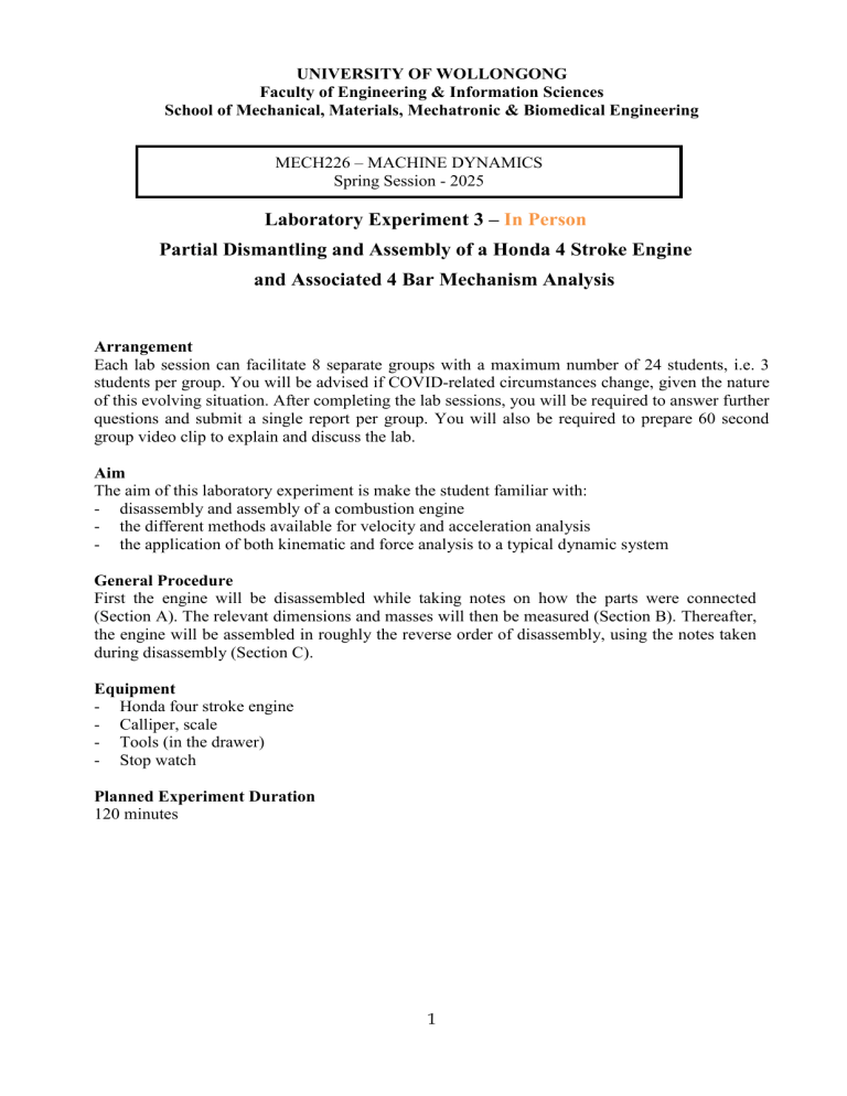 Partial Dismantling and Assembly of a Honda 4 Stroke Engine