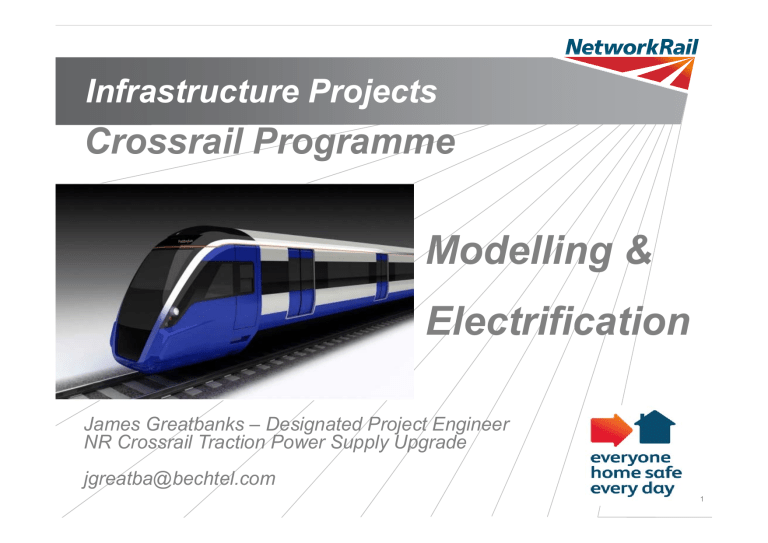 Infrastructure Projects Crossrail Programme Modelling & Electrification James Greatbanks – Designated Project Engineer NR Crossrail Traction Power Supply Upgrade jgreatba@bechtel.com 1 Crossrail • New journey opportunities and 10% increase in rail capacity • Up to 24 tph, each train 200m carrying up to 1500 passengers • £14.9bn contributing £42bn in benefits • Network Rail delivering £2.3bn enhancements: – 28 station upgrades – Electrification and power supply upgrade – Signalling and telecom renewals – Grade separation and junction improvements 2 Electrification and PSU • 85 stkm Series 1 OLE • 2 x 400kV supply points • Autotransformer feeding: Stratford to Shenfield (30km) & Paddington to Maidenhead (40km) • £200m KENSAL GREEN 400kV Supply Point PUDDING MILL LANE 400kV Supply Point Gidea Park SATS Slough ATS Hayes SATS Maidenhead MPATS Shenfield MPATS Ilford SATS West Ealing ATS Westbourne Park ATS Stepney Green SATS Plumstead ATS 3 Electrification Modelling • Supply point loads • Earth leakage • Equipment loading • Electrolytic corrosion • Voltage profile • Thermal loads • Rail voltage • Resonance • Induced voltage • Screening • Stray current • Conducted interference • Staging / phasing • Radiated emissions • Import and export • Train performance • Failure modes • Earth potential rise 4 Project Lifecycle GRIP – Governance for Railway Investment Projects Timetable / Outputs System Design Ratings Staging Commissioning Hazard Management 5 System Design 400kV Grid Standards + Policy System Design Route System Design Options: - E&B Design - HV Equipment -OLE Sectioning -Telecoms -Signalling Rolling Stock Timetable Outline Design AIP Detailed Design 6 System Design - Timetable 7 Time of Day 23 :0 0: 00 22 :0 0: 00 21 :0 0: 00 20 :0 0: 00 Half Hour AverageLoad(M VA) 65MVA 19 :0 0: 00 18 :0 0: 00 17 :0 0: 00 16 :0 0: 00 15 :0 0: 00 14 :0 0: 00 13 :0 0: 00 12 :0 0: 00 11 :0 0: 00 10 :0 0: 00 09 :0 0: 00 08 :0 0: 00 07 :0 0: 00 06 :0 0: 00 05 :0 0: 00 04 :0 0: 00 03 :0 0: 00 02 :0 0: 00 01 :0 0: 00 00 :0 0: 00 System Design - Demand 67MVA 30 MVA Kensal Green Supply Point 100.0 90.0 80.0 70.0 60.0 50.0 40.0 30.0 20.0 10.0 0.0 8 System Design – Outputs 9 System Design – Rail Voltage 10 System Design – S&T Circuits 11 AC/DC: South East Section • 2km • Parallel AC and DC lines • New station • Engineering Connection • Corrosion Rates > 3000 years • Negligible 50Hz • No requirement for screening conductor • No VLDs or OLE mast insulation • Isolation tx at Abbey Wood station • One new rectifier 12 Hazard Specific Modelling • Inductive and conductive coupling to third parties – London Underground – DLR – Heathrow baggage and air side services tunnels • ATF cables • Mark 3B OLE • Reed track circuits • Depot bonding • Harmonic Resonance 13 Third Parties •Joint Crossrail Ltd / Network Rail study •Multi-frequency coupling •Tailored to ‘victim’ equipment 14 Third Parties 15 Third Parties 16 ATF Cable • Crossrail ATF is 12% cable • Δ system design / outline design • Earthing ATF cable at both ends • ATF cable and S&T separation ATF / S&T Separation (m) 6 5 4 3 2 1 0 0 5 10 15 20 25 Distance from Paddington (km) 30 35 40 17 Summary • System Design as early as possible • Change is inevitable, so build in allowances • Change to scheme outputs = big impact • Modelling required throughout the project lifecycle • Engage sensitive third parties • Use system boundaries rather than contract boundaries • Limited number of suppliers • Shortage of resource • Modelling £ < Testing £££ 18