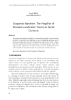 Nordic Wittgenstein Review Special Issue 2022 |pp. 34–49|DOI 10.15845/nwr.v11.3639 Layla Raïd layla.raid@u-picardie.fr Linguistic Injustice. The Fragility of Women’s and Girls’ Voices in Sexist Contexts Abstract My paper deals with the fragility of women’s and girls’ voices in sexist contexts. I describe this situation as one of linguistic injustice, and I propose an approach based on Wittgenstein and Cavell's works. I argue that the characteristic female experience of being silenced when they express their experiences in sexist contexts can be understood as an enforced lack of attunement with the community of male locutors. Keywords: attunement, Cavell, Feminism, Wittgenstein 1. Introduction A common experience of women and girls in sexist contexts is to be refused to be taken seriously when trying to say something. My article focuses on one specific type of speech acts: (attempted) denunciations of sexist violence (from verbal violence and intimidation, to harassment, assault and rape). And it focuses on one specific context in which women and girls try to speak up against sexist violence: sexist contexts in which their words are rejected. The sexist behaviour I focus on here is not simply disbelieving, i.e. refusing to believe what women and girls say, if one means by that: refusing to consider their statement as true, and taking it to be false. Disbelieving implies acknowledging that there is some content to be believed or not. In such a case, the alleged victim is taken as correctly stating the alleged facts, and it is possible to begin the process of verification, the statements under scrutiny being taken to be either true or false. 34 Nordic Wittgenstein Review Special Issue 2022 |pp. 34–49|DOI 10.15845/nwr.v11.3639 The sexist dismissal I want to deal with occurs at a more fundamental level than disbelief: it consists in questioning and doubting women’s and girls’ very ability to utter statements capable of being true or false («bipolar»), when denouncing male violence. In this form of rejection, women and girls are subjected to a scrutiny that questions their very competence as locutors, capable of issuing proper statements. The list of ways to undermine one’s person confidence as a competent locutor is long and varied. One typical way to deny that a proper statement has been made is by questioning their very choice of words to state their facts and report their experiences: they can be told, for example, that what they experienced was not an «assault», that it was not what we call «rape», etc. Their tone of voice can be questioned as not the right one: a crazy tone, not the tone of a person in her right mind…. Or their hesitations between words can be taken to show that they do not know what these words mean exactly. Or the victim’s attempts at denunciation can be branded as confabulations, ravings. In such circumstances, the alleged victim’s words do not even reach the status of proper statement: the victim has been linguistically disarmed by the sexist audience. They are left confused, with the feeling that something was wrong with their words. In sexist contexts, women’s and girls’ attempts at denouncing sexual violence are thus threatened with a scrutiny of their language use aimed at disabling them. From a sexist point of view, the advantage of this scrutiny is that the attempt at denunciation is nipped in the bud: to be in a position to dismiss someone is far stronger than having to check what they say. Since dismissal does not allow the statements to be proper candidates for verification, an epistemological point of view cannot be sufficient to understand this special aspect of gender violence, based on the denial of someone’s linguistic competence. The concept of epistemic injustice devised by Miranda Fricker (2009), which is powerful and illuminating in contexts where a proper statement is made and recognized as such, is not sufficient for the cases which interest us here. Epistemic injustice properly speaking (i.e. as concerning knowledge) can be deployed at a level where persons are already considered as competent locutors, which is in 35 Nordic Wittgenstein Review Special Issue 2022 |pp. 34–49|DOI 10.15845/nwr.v11.3639 fact a lot to grant: one way to maintain power over someone is by denying their mastery of their own language. I propose to describe this particular kind of injustice as linguistic injustice, and to turn to ordinary language philosophy to analyze it. This work is thus situated in current feminist research inspired by Ludwig Wittgenstein and Stanley Cavell1. In the first part of my paper, borrowing from Rae Langton’s feminist speech act theory, I describe the sexist dismissal of women’s and girls’ speech acts as cases of linguistic disablement. In the second part, I describe the experience of being linguistically disabled as an experience of confusion, drawing on analyses by Wittgenstein. To further understand what happens in this situation of confusion, I draw on Cavell’s notion of attunement, by describing the confused, bewildered speaker as being forcefully made to feel that she is out of tune with the people she is trying to speak with. This can result either in the victim renouncing to speak, or, on the contrary, in the victim fighting back against the attempt at disabling her: the first case is more likely to occur in situations of pervasive sexism. I will more generally use this act of being made to feel out-of-tune to describe women’s and girls’ linguistic predicament when they try to denounce patriarchal power in sexist settings. It is very difficult, generally, for a human being to go on speaking when they feel their voice is out of tune: a sympathetic audience usually tries to bring back the unhappy speaker within the conversation; but a sexist audience confronted with female speech is bound to maintain discordances in order to make the speaker give up her speech2. In the last part of my pape